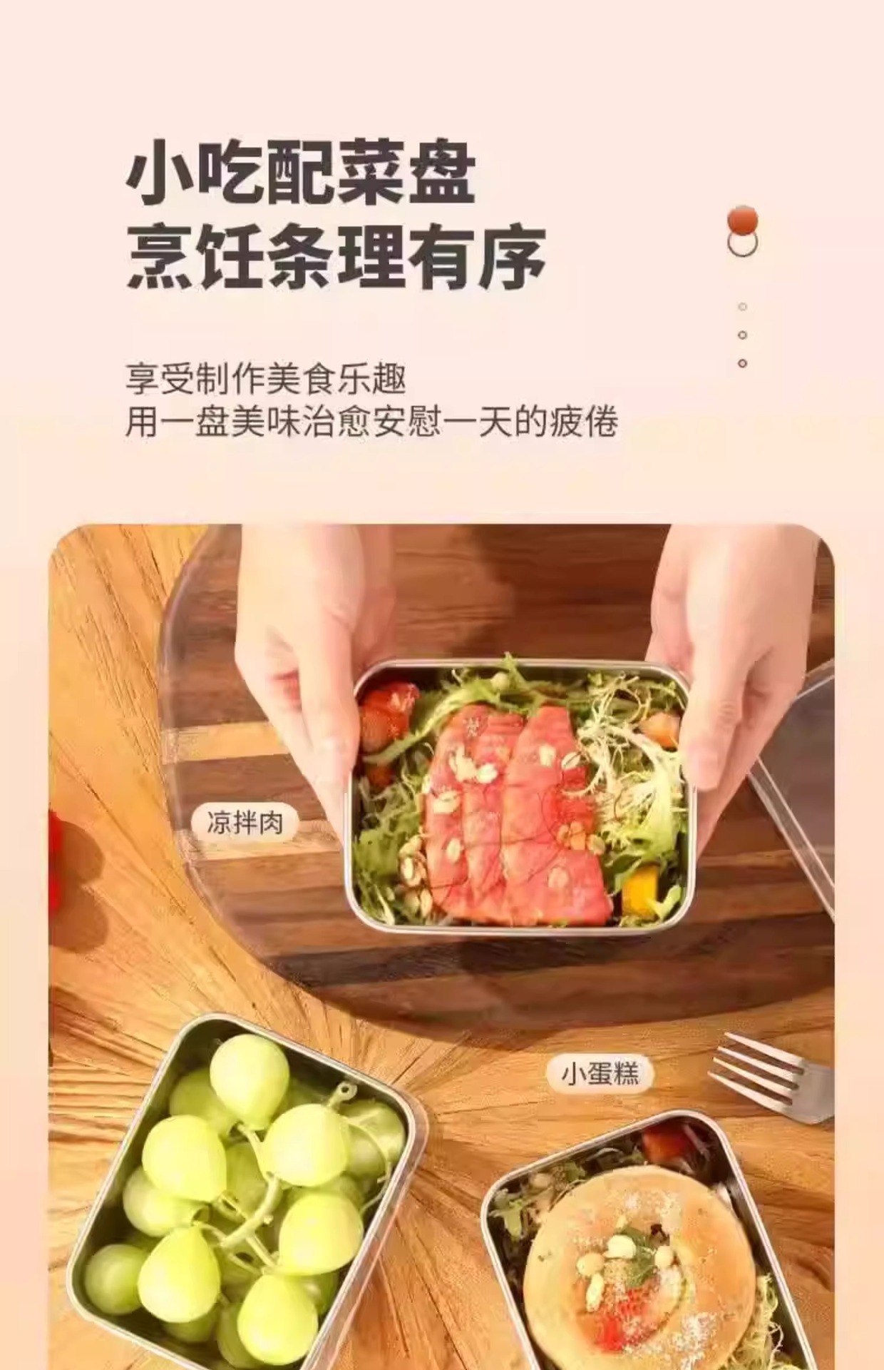• 스테인레스 스틸 신선한 보관 상자-뚜껑이없는 사각형-2 팩