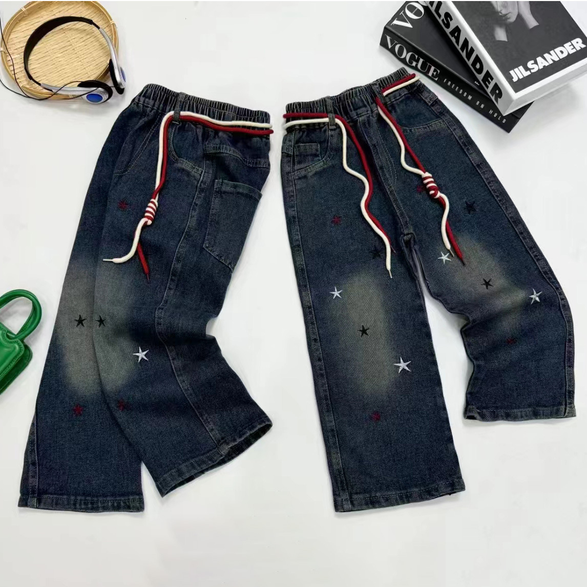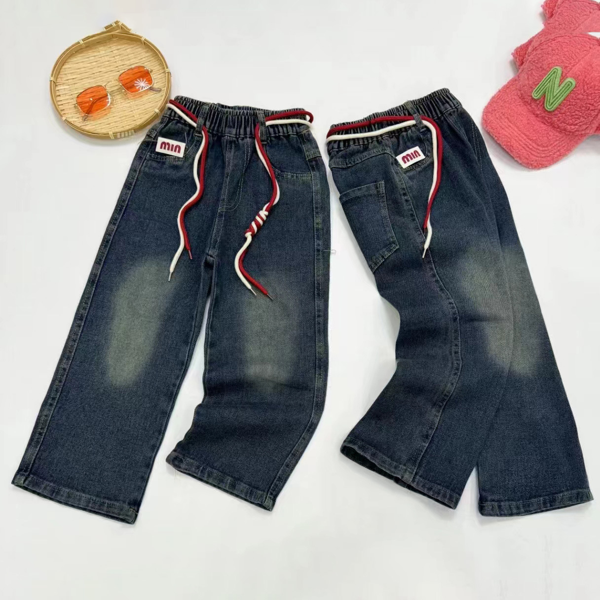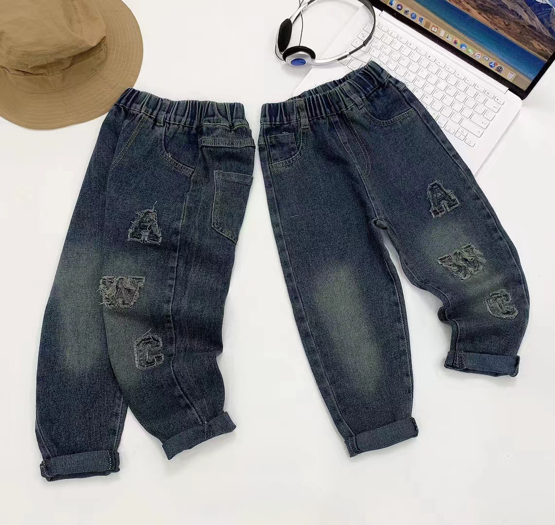 대외 무역 봄과 가을 소녀 청바지 새로운 도착 서양식 와이드 다리 바지 아기 어린이 소년의 유행 한국 스타일 바지스토어 가기