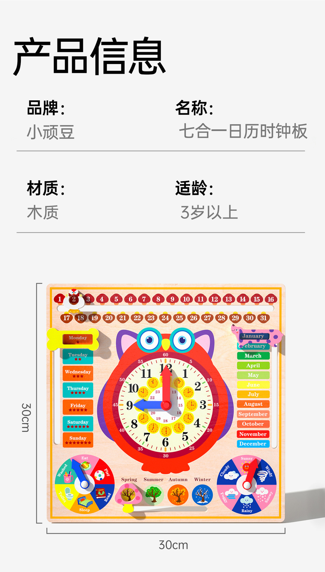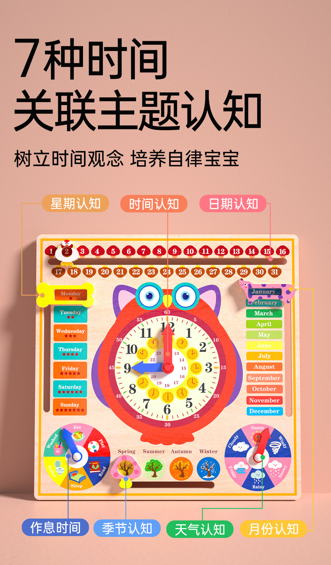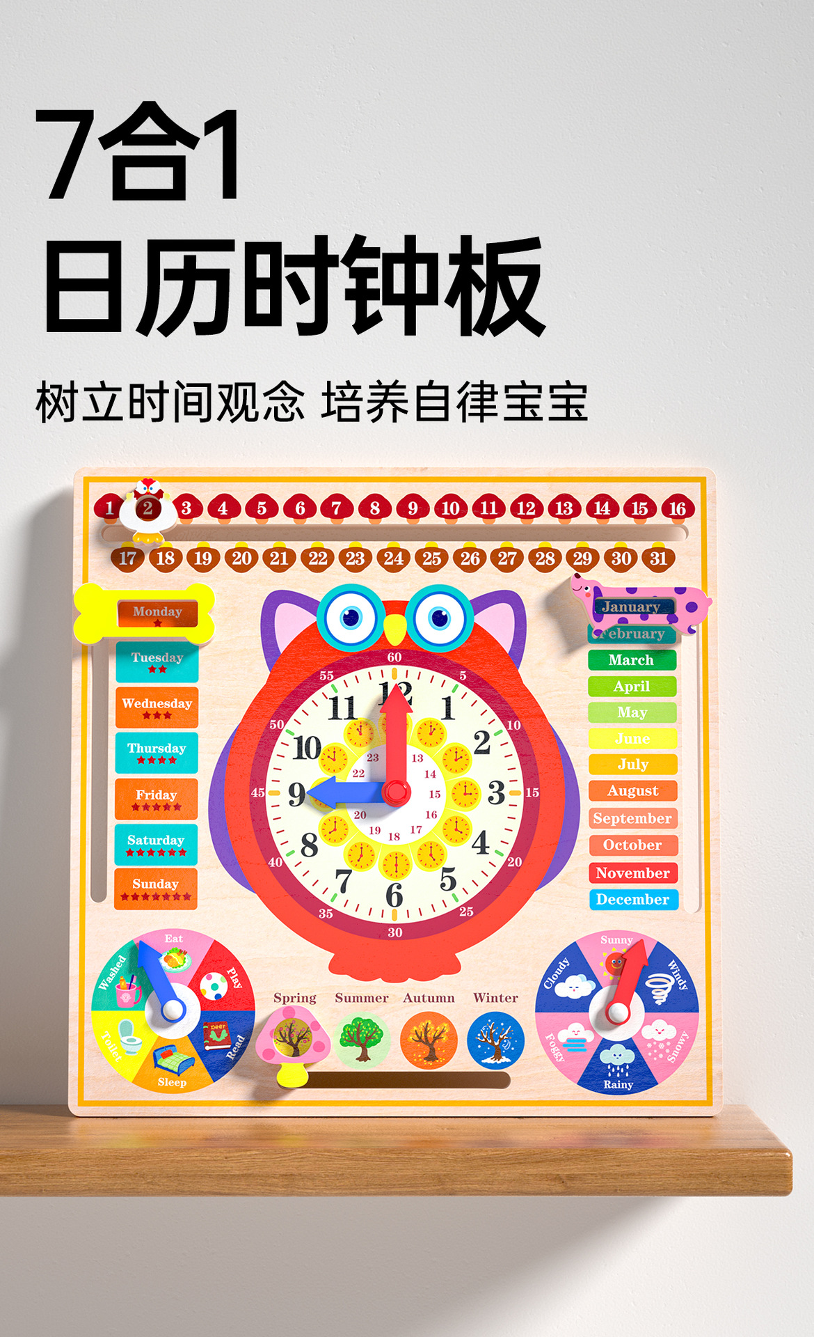 몬테소리 가르침 어린이 달력 날씨 인식위원회 날짜 인식 시계 및 시간 퍼즐 장난감 3 ~ 6 세