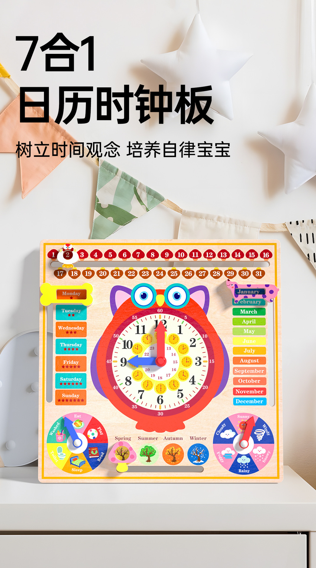 몬테소리 가르침 어린이 달력 날씨 인식위원회 날짜 인식 시계 및 시간 퍼즐 장난감 3 ~ 6 세스토어 가기