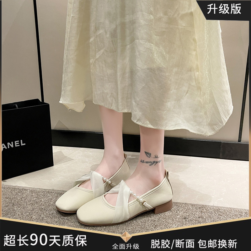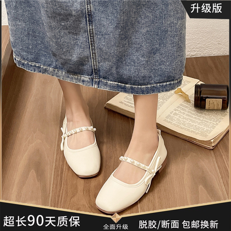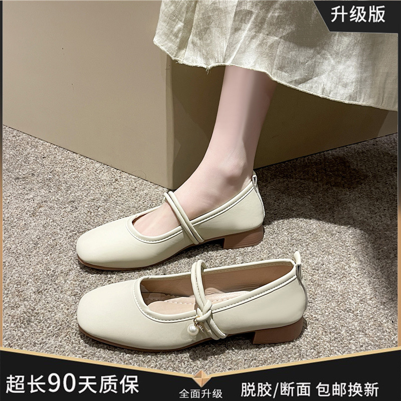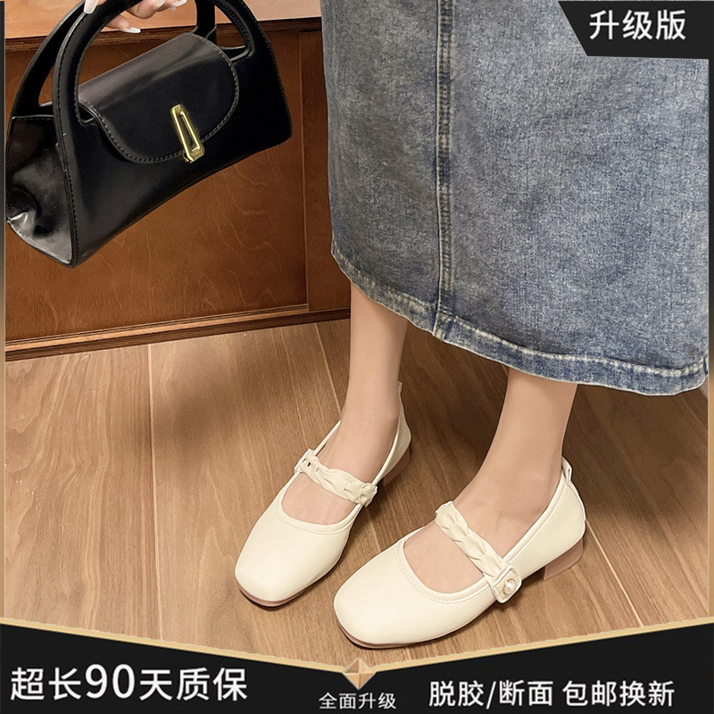 부드러운 가죽 메리 제인 여성 신발 2024 봄 새로운 스타일 기질 부드러운 스타일 프랑스 스타일 향기로운 스타일 플랫 편안한 싱글 신발스토어 가기