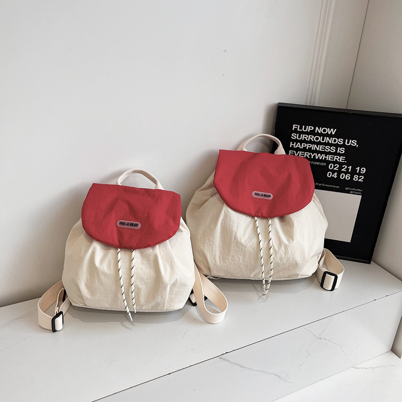 새로운 스타일의 소녀, 소녀, 학생, 세련된 컬러 매칭 플립 탑 드로스트링 백팩, 트렌디한 가방, 나들이 캐주얼 소형 백팩