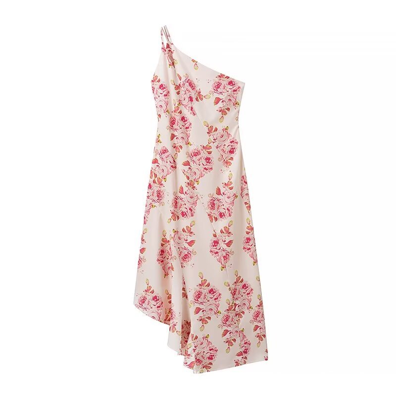 UC & ZA 국경 간 AliExpress 여성의 여름 새로운 디자인 비대칭 경사 어깨 인쇄 휴일 스타일 원피스
