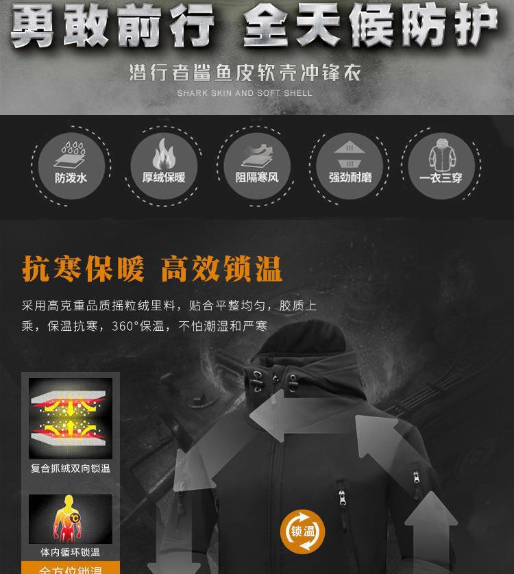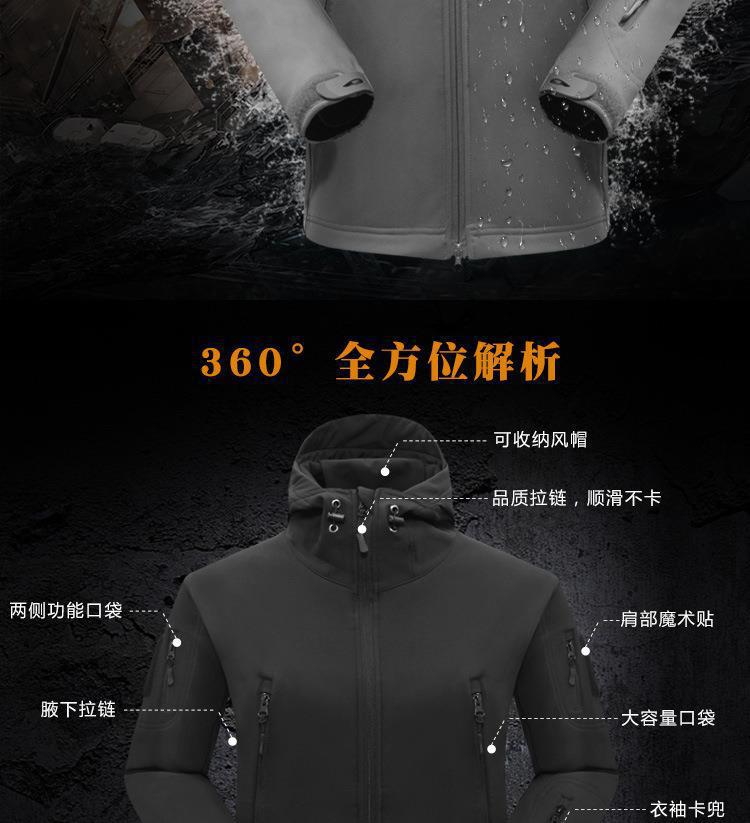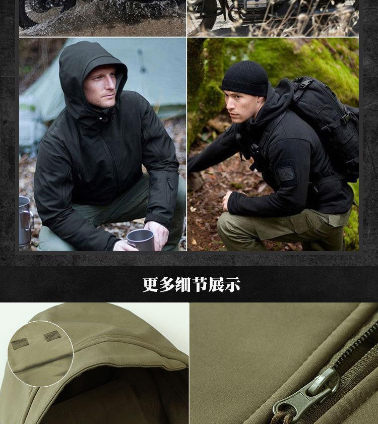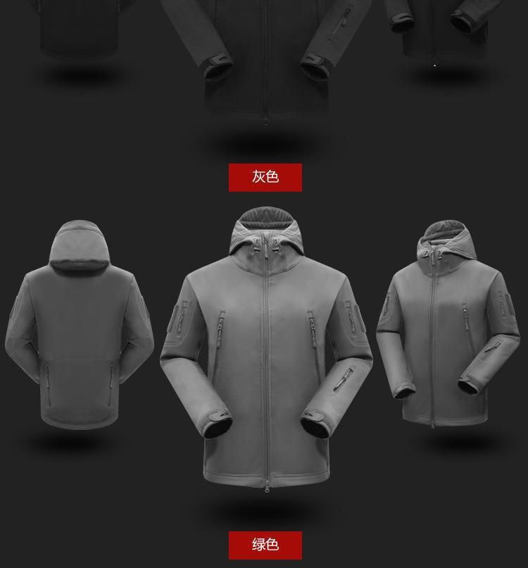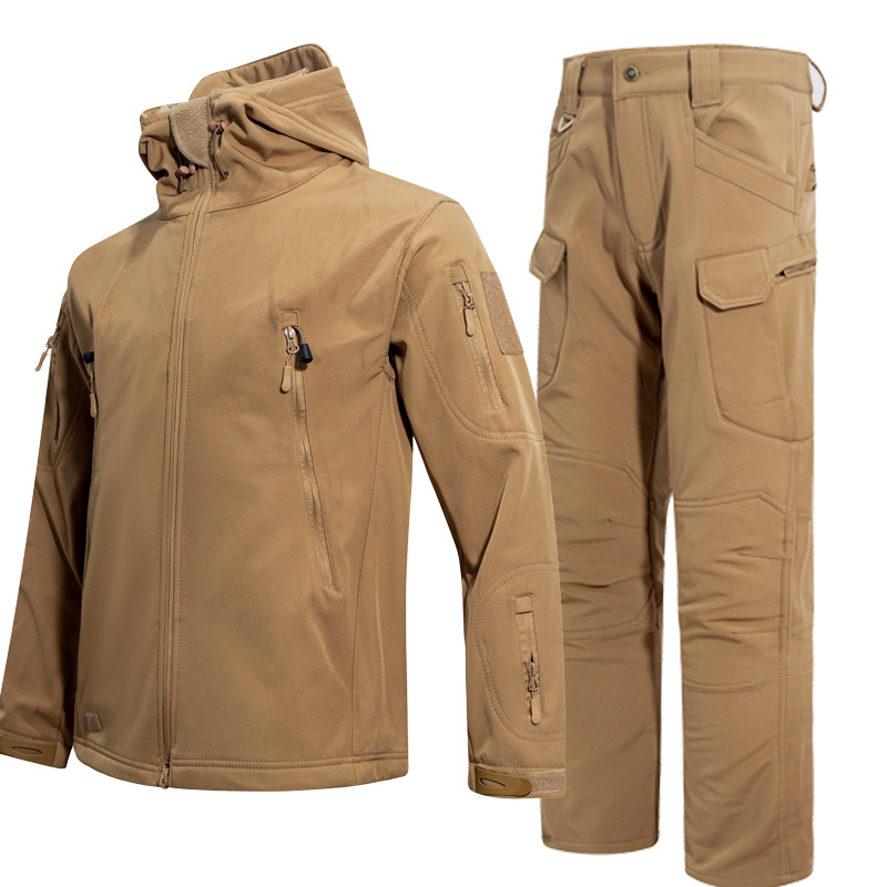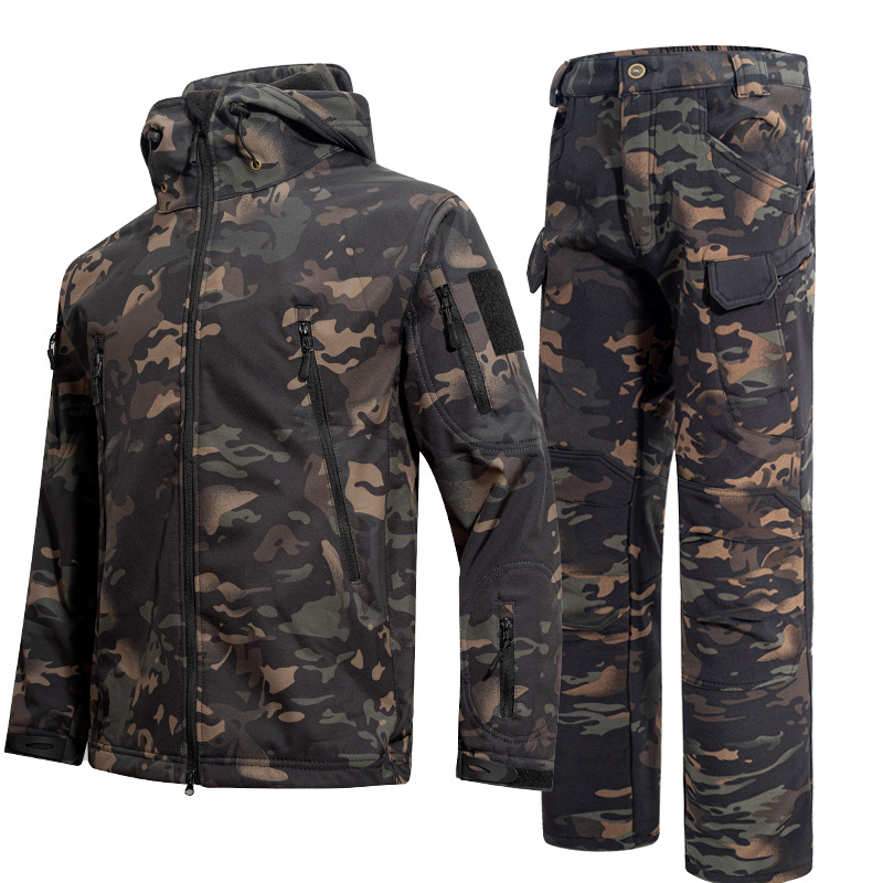 야외 전술 상어 스킨 재킷 세트 남성 기모 위장 재킷 작업복 후드 겨울 사이클링 작업복