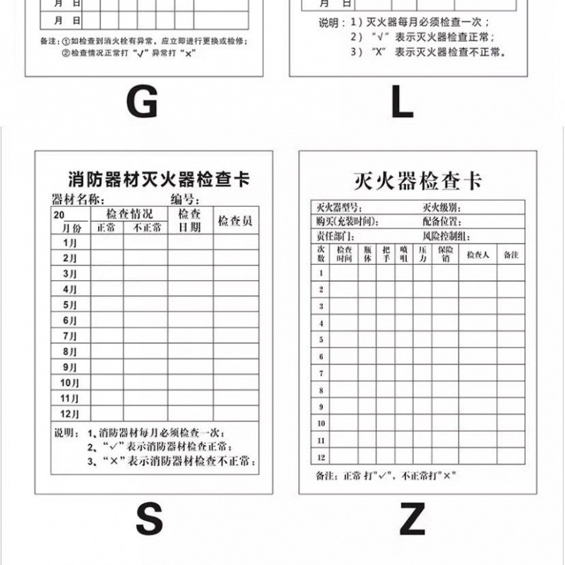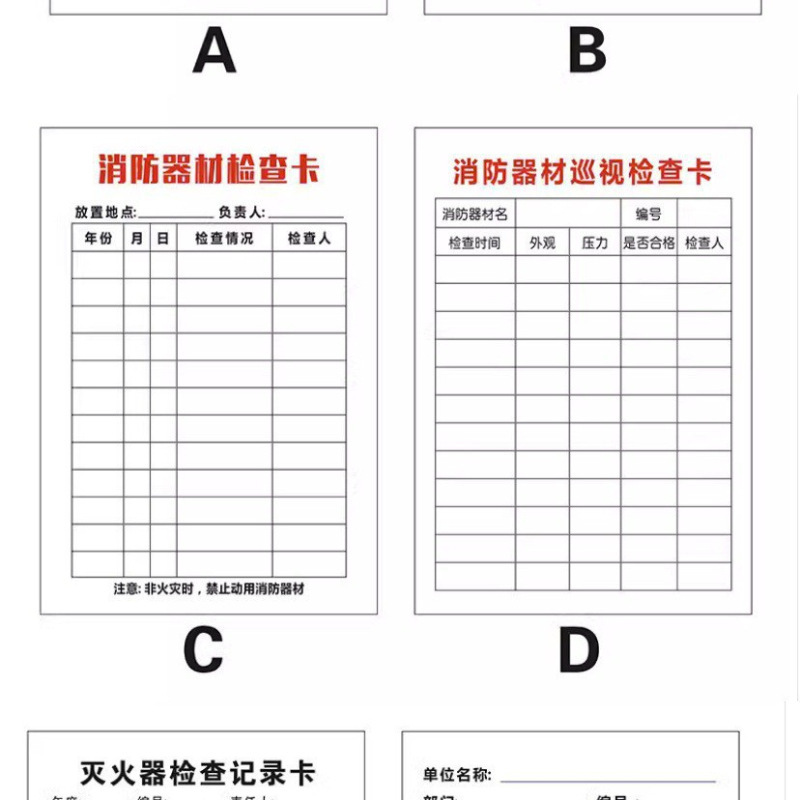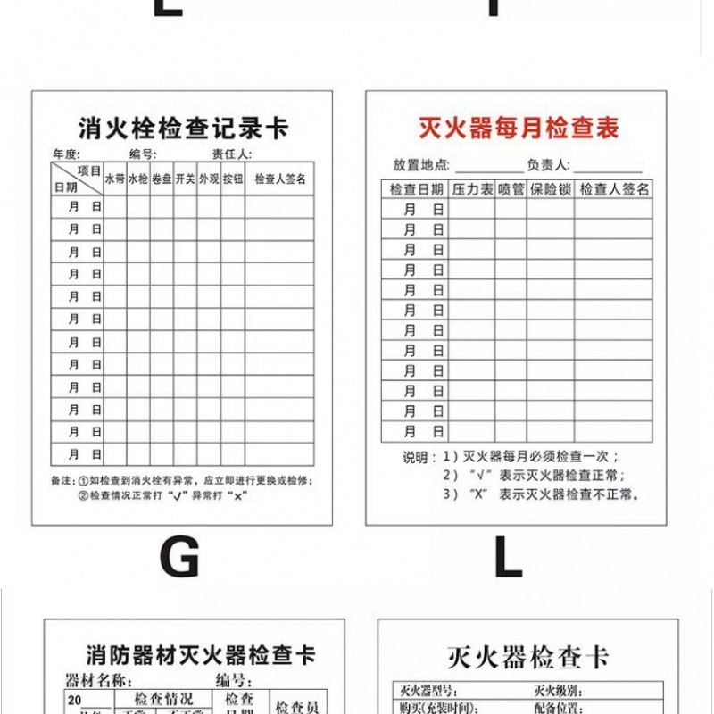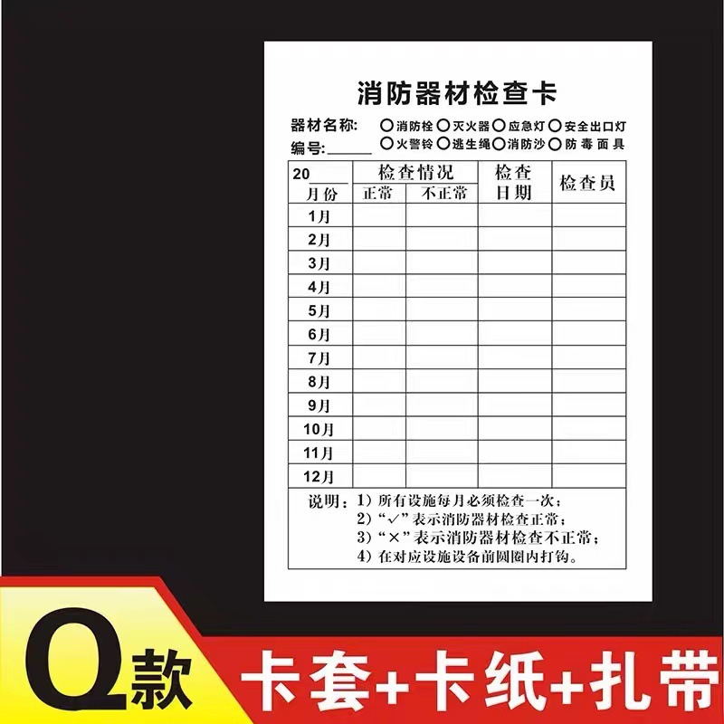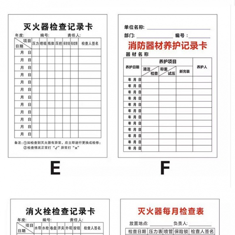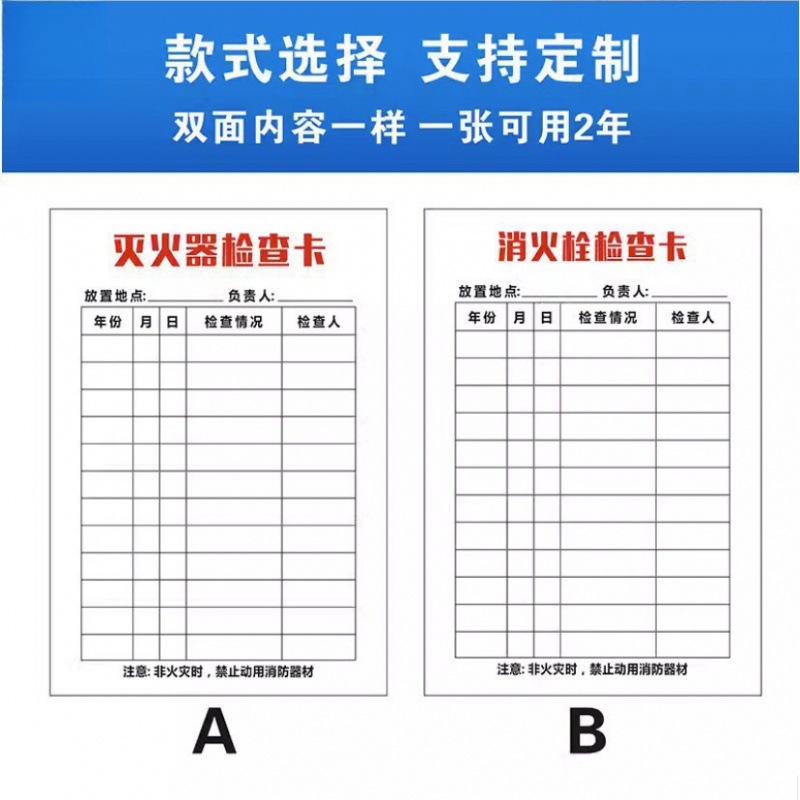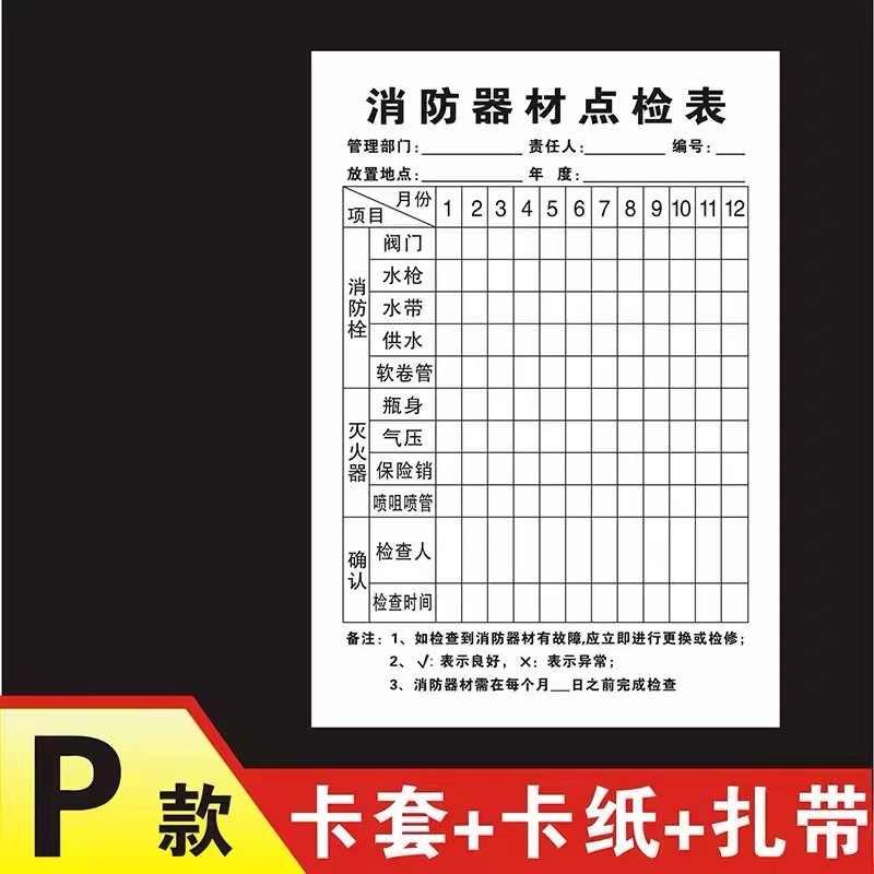 소방 장비 소화기 검사 카드 기록 카드 등록 방수 재킷 소화전 소화전 검사 카드
