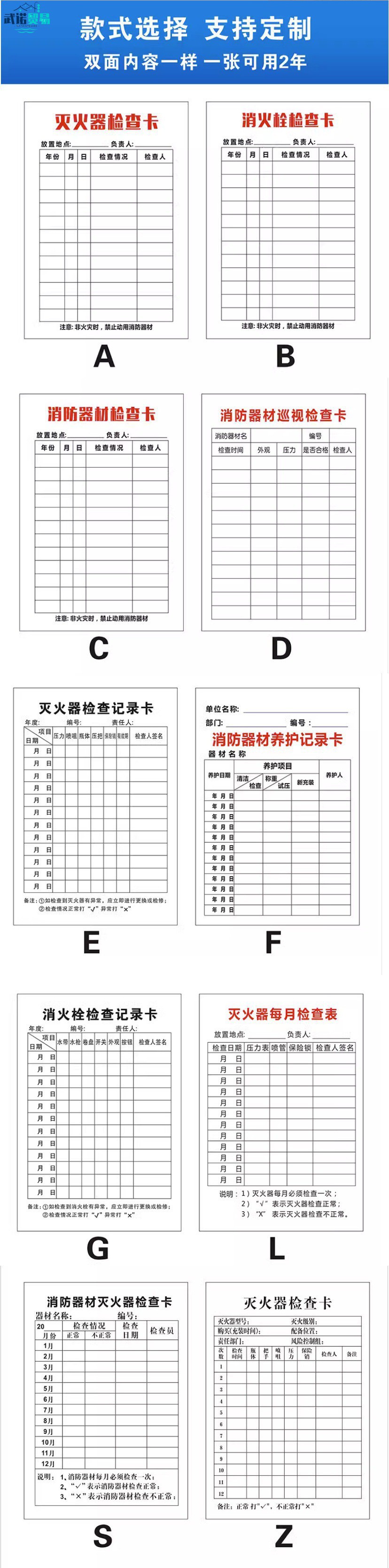 소방 장비 소화기 검사 카드 기록 카드 등록 방수 재킷 소화전 소화전 검사 카드스토어 가기