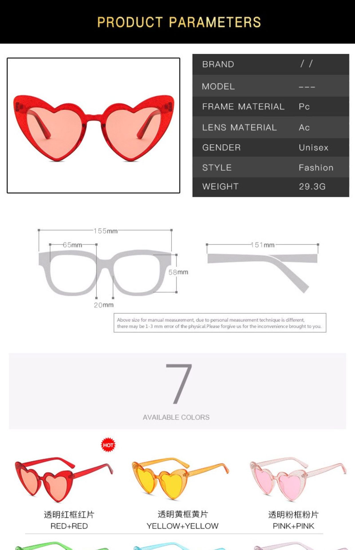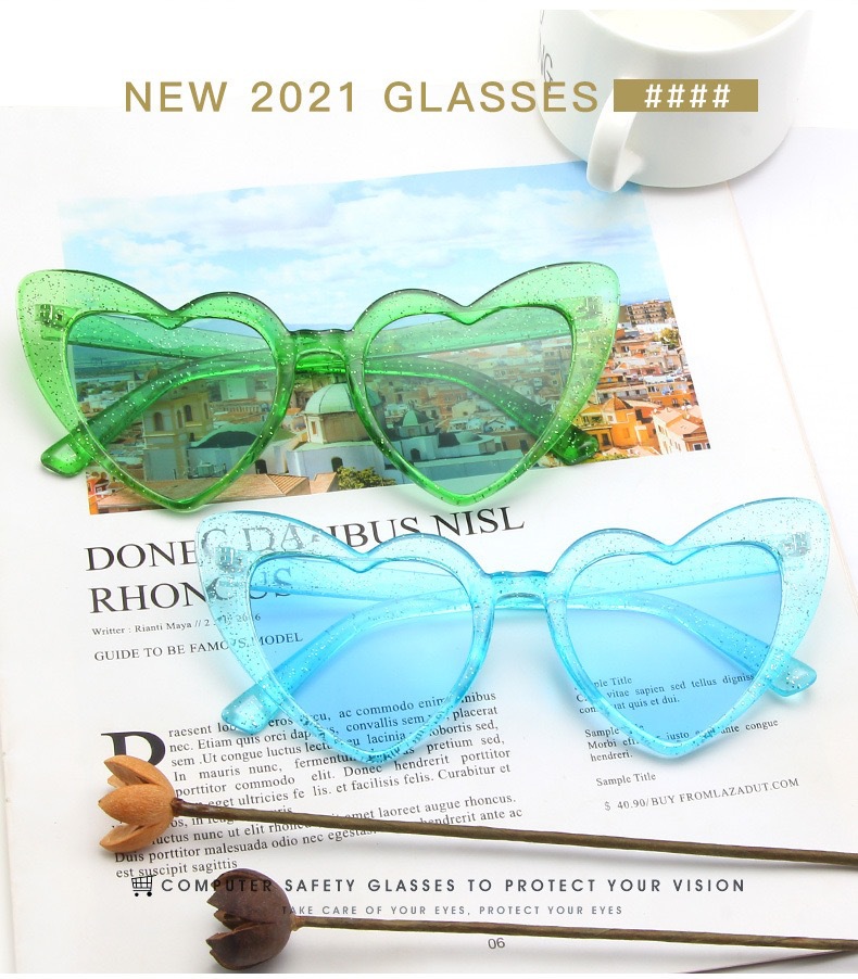 반짝이 나이트 클럽 새로운 사랑 모양 복숭아 심장 핑크 선글라스 쇼 얼굴 작은 하라주쿠 스타일 부드러운 소녀 셀카 선글라스스토어 가기