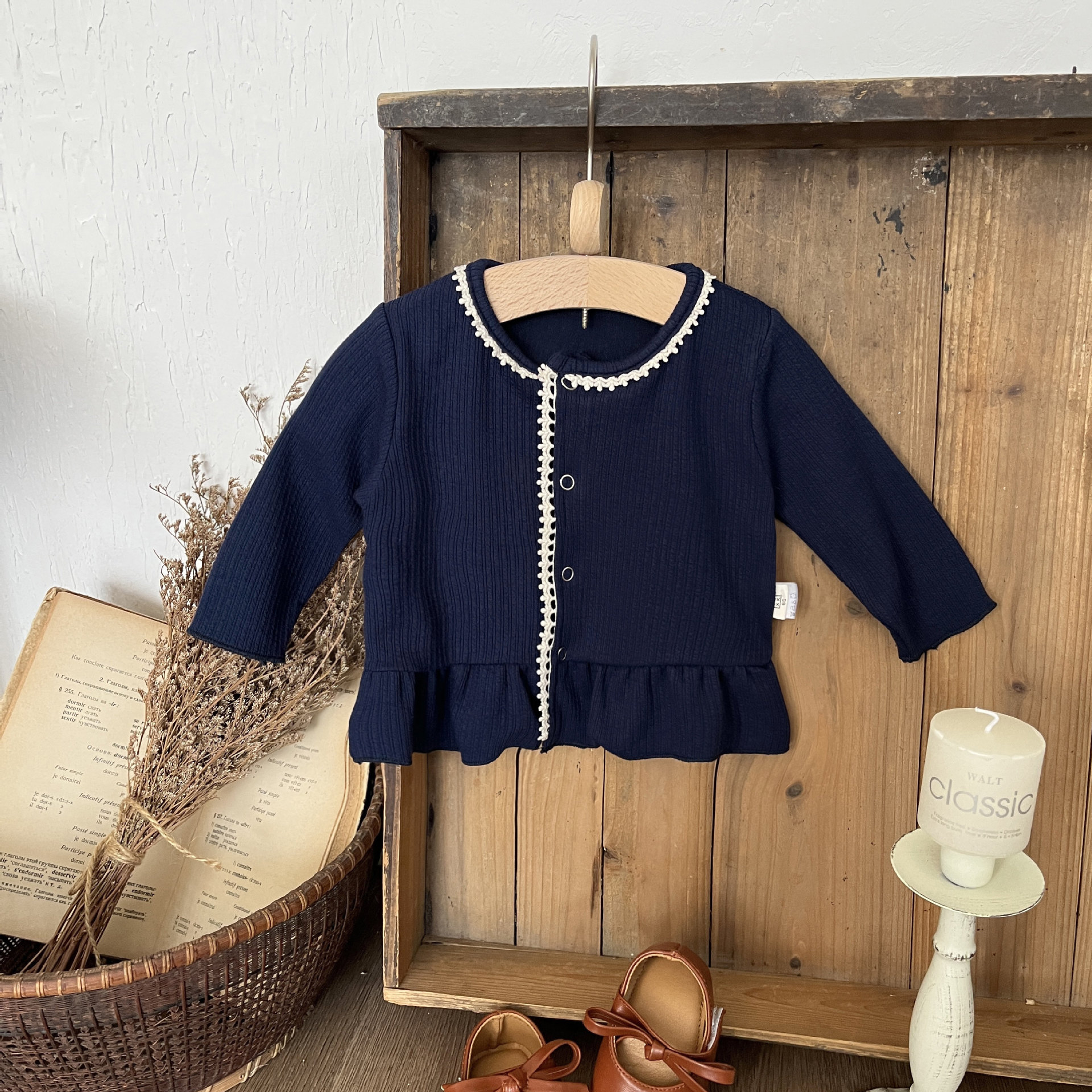 Ins Autumn Wear Korean Style Baby's Lace Crewneck 긴팔 니트 카디건 아기 소녀를위한 간단한 올 매치 웨스턴 스타일 코트스토어 가기