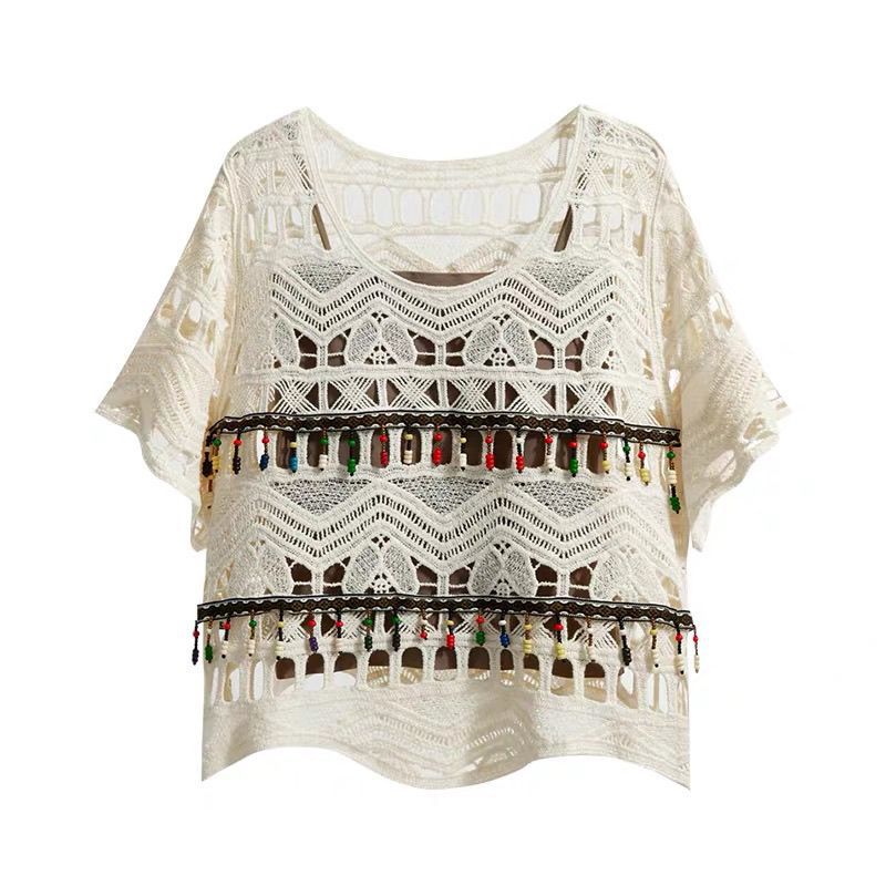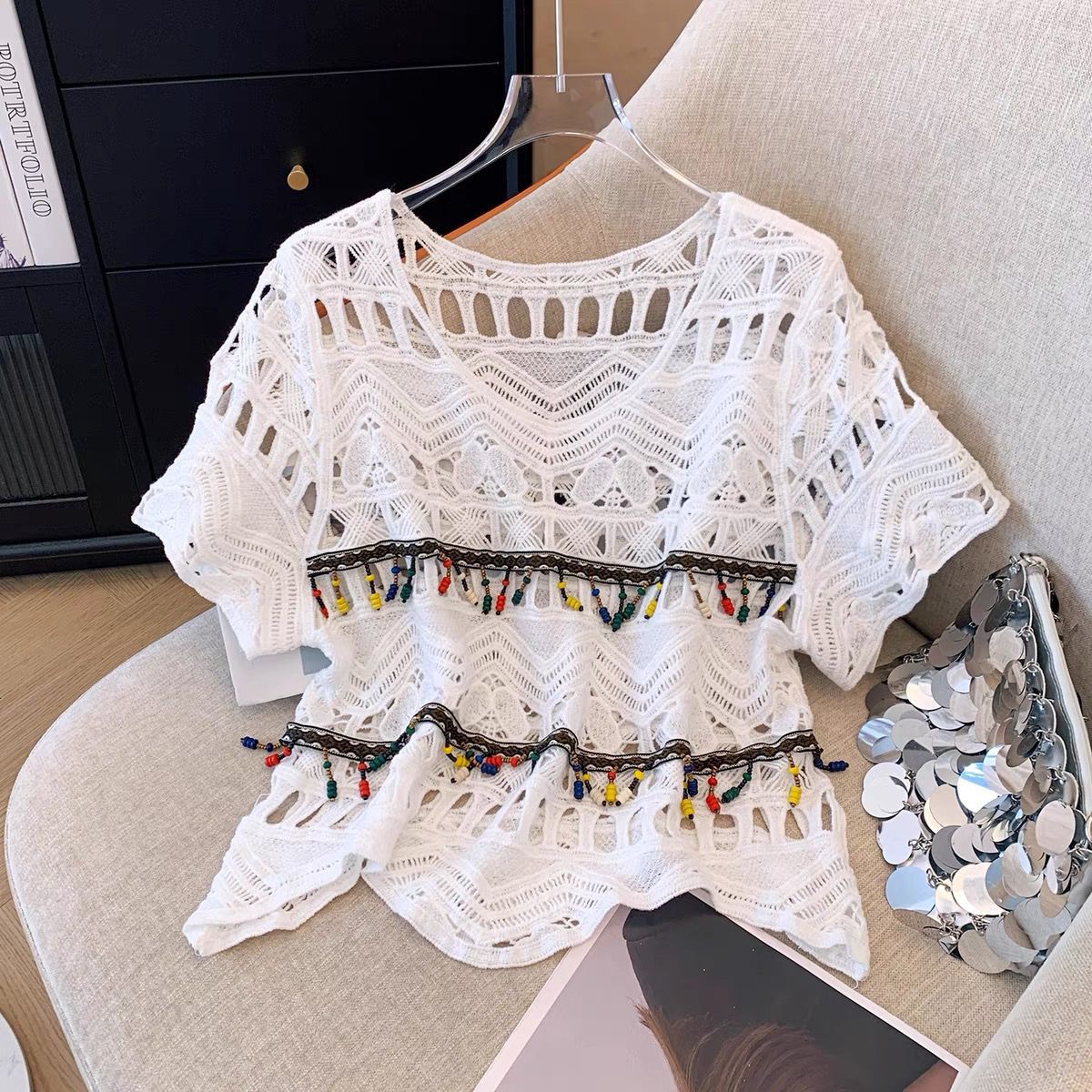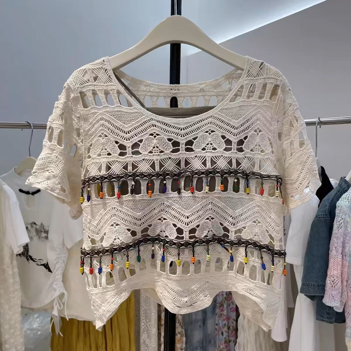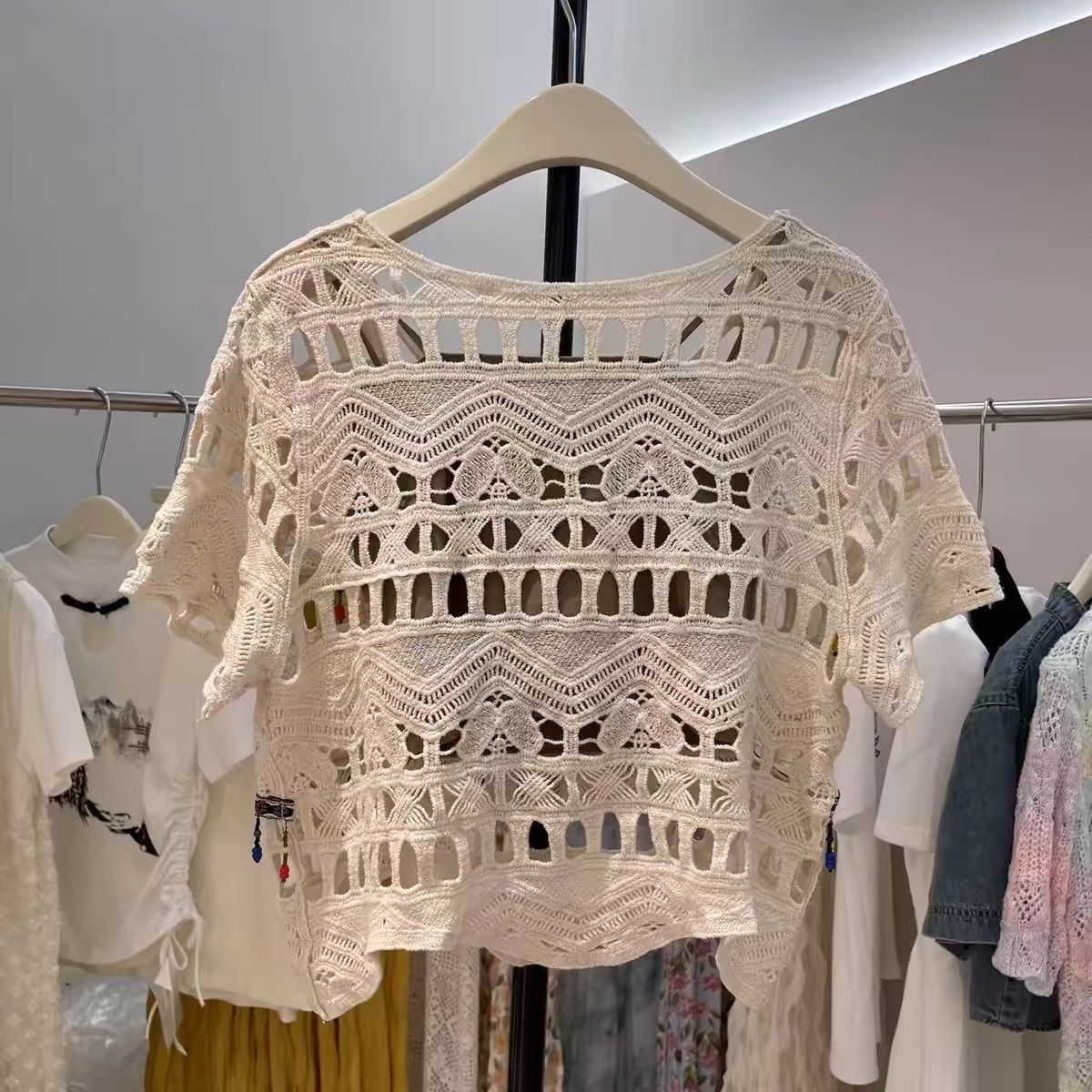 중공 레트로 술 니트 블라우스 탑 홀리데이 2024 여름 새로운 조끼 한국 스타일 디자인 하이 스타일