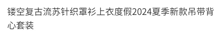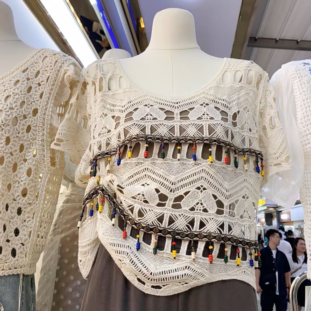 중공 레트로 술 니트 블라우스 탑 홀리데이 2024 여름 새로운 조끼 한국 스타일 디자인 하이 스타일스토어 가기