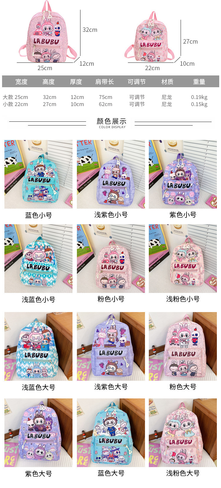 Labu 어린이 배낭 새로운 귀여운 경량 배낭 대용량 고가치 Labubu 유치원 학교 가방