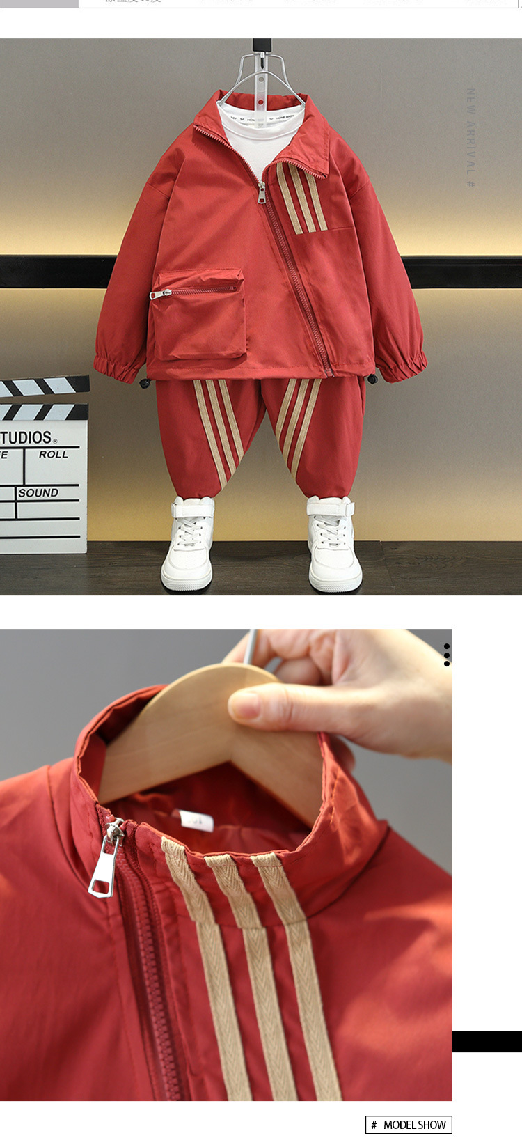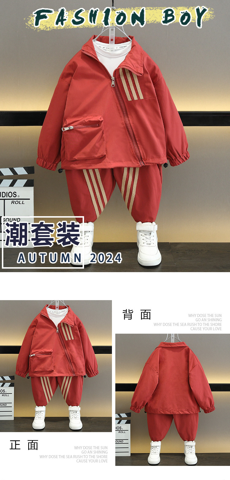 어린이 봄 가을 슬랜트 지퍼 웨빙 세트 2025 가을 신상 소형 어린이 남아용 수출 아동복 투피스 세트스토어 가기