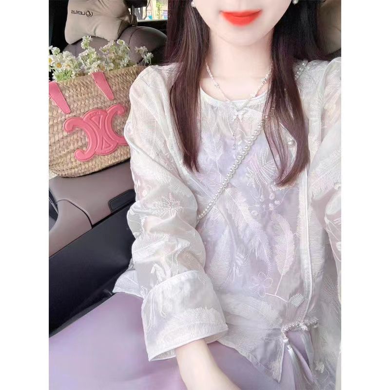 2024新款新中式国风夏装搭配一整套白色刺绣衬衫紫色温柔风吊带裙스토어 가기