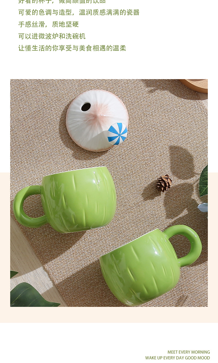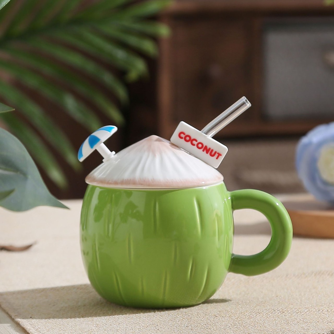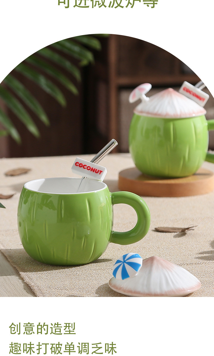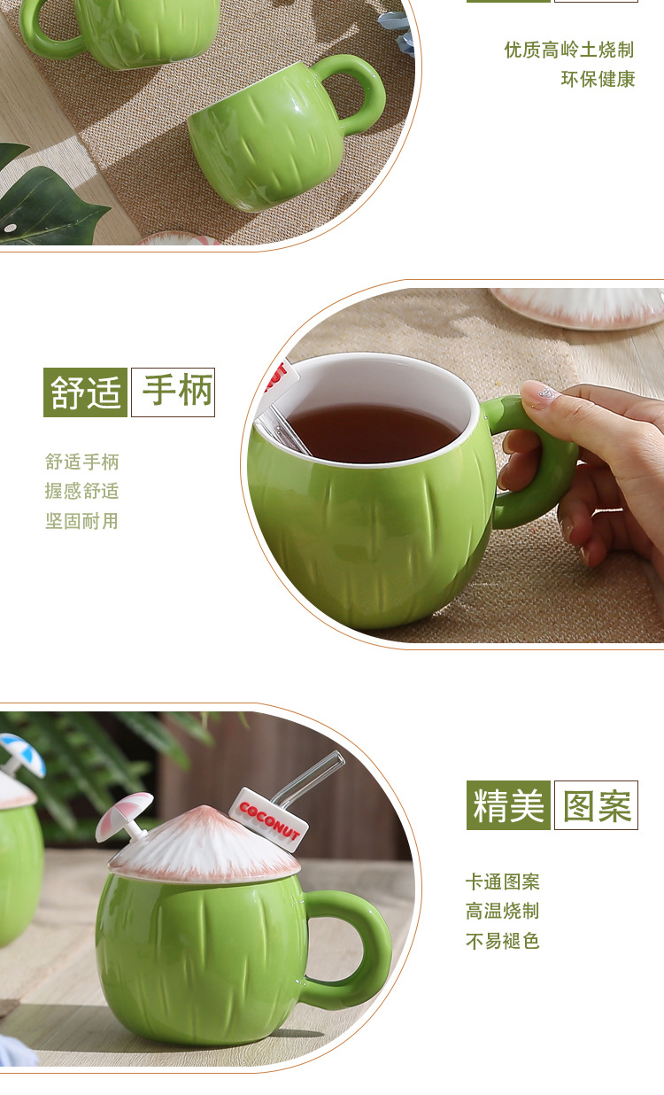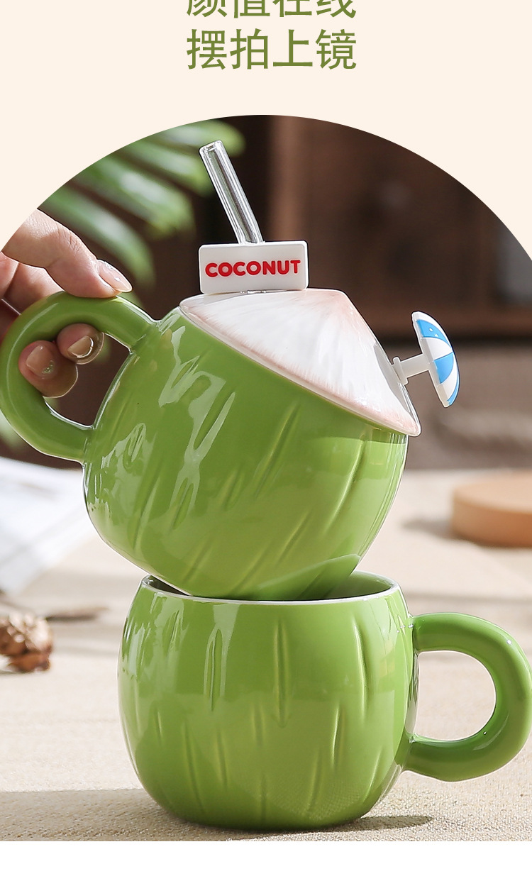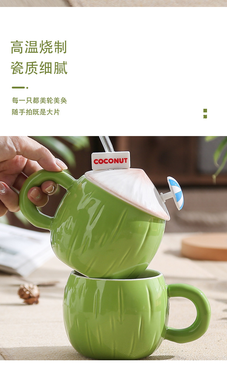 창조적 인 Ins 스타일 여름 코코넛 머그잔 소녀의 높은 얼굴 가치 귀여운 세라믹 컵 뚜껑이있는 대용량 물 컵스토어 가기