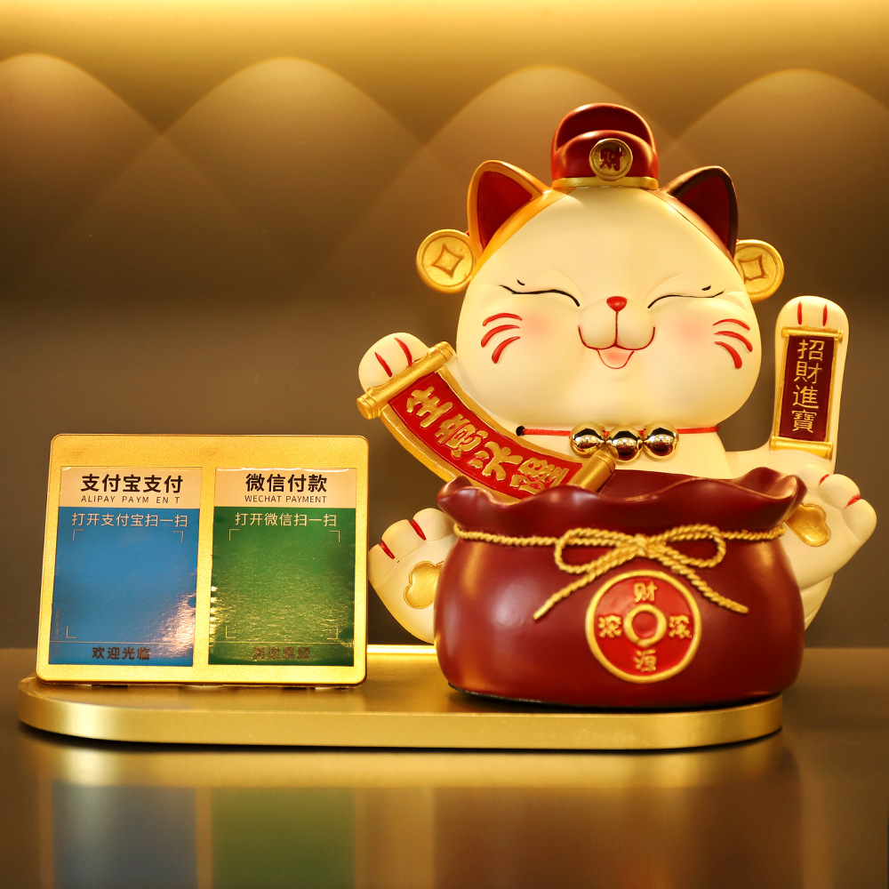 운 좋게도 비즈니스 선물 사업을 위해 열리는 고양이 장식품 번영 한 프론트 데스크 자동으로 손짓합니다 운 좋게도 고양이는 새로운 레지던스 선물로 이동합니다.스토어 가기