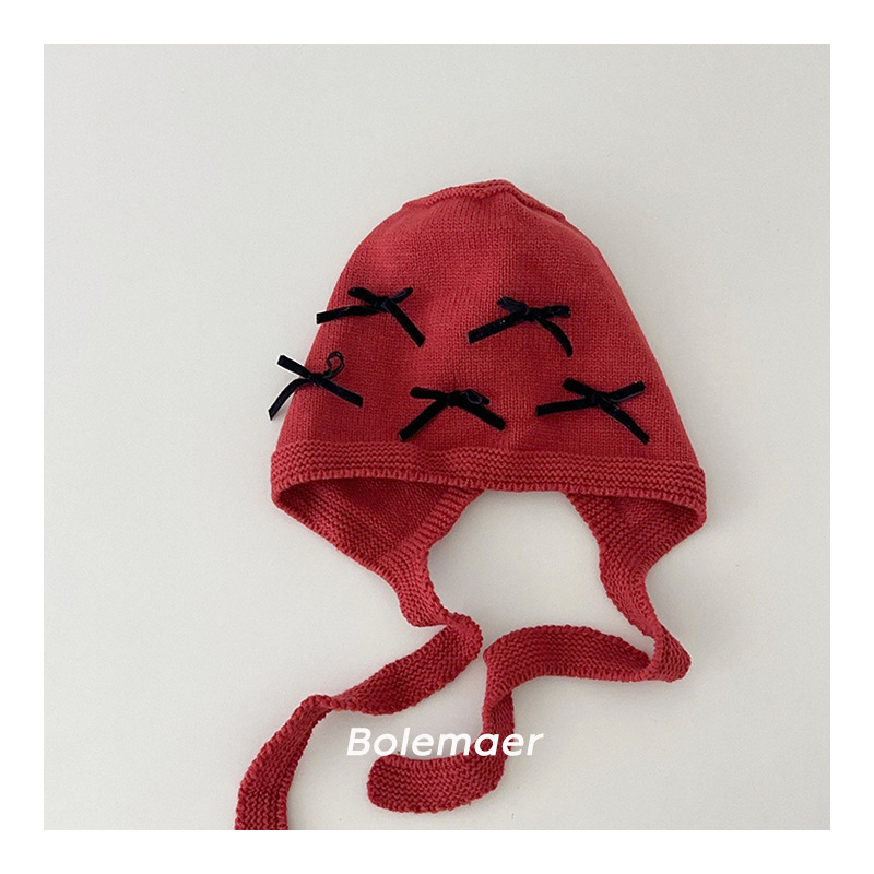 Ins 한국 어린이 니트 모자 가을과 겨울 새 스타일 올매치 보우 모자 아기 귀 보호 소년 소녀
