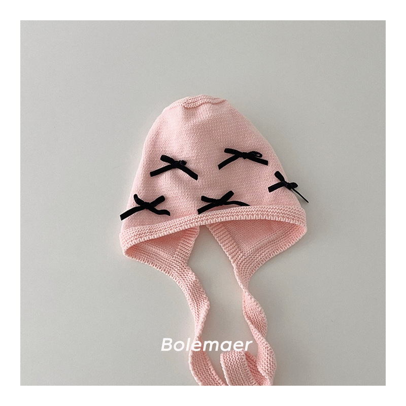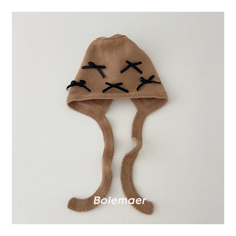 Ins 한국 어린이 니트 모자 가을과 겨울 새 스타일 올매치 보우 모자 아기 귀 보호 소년 소녀스토어 가기