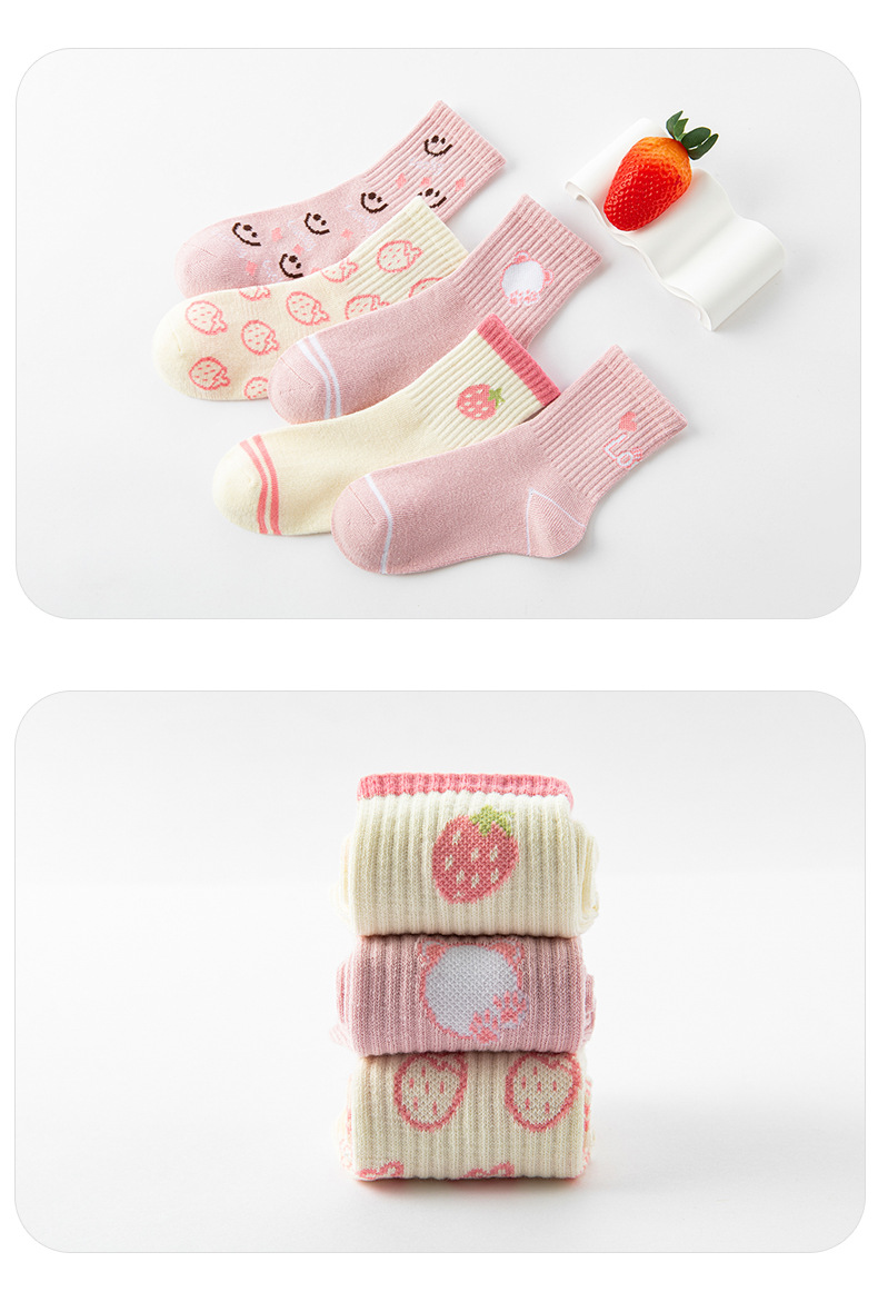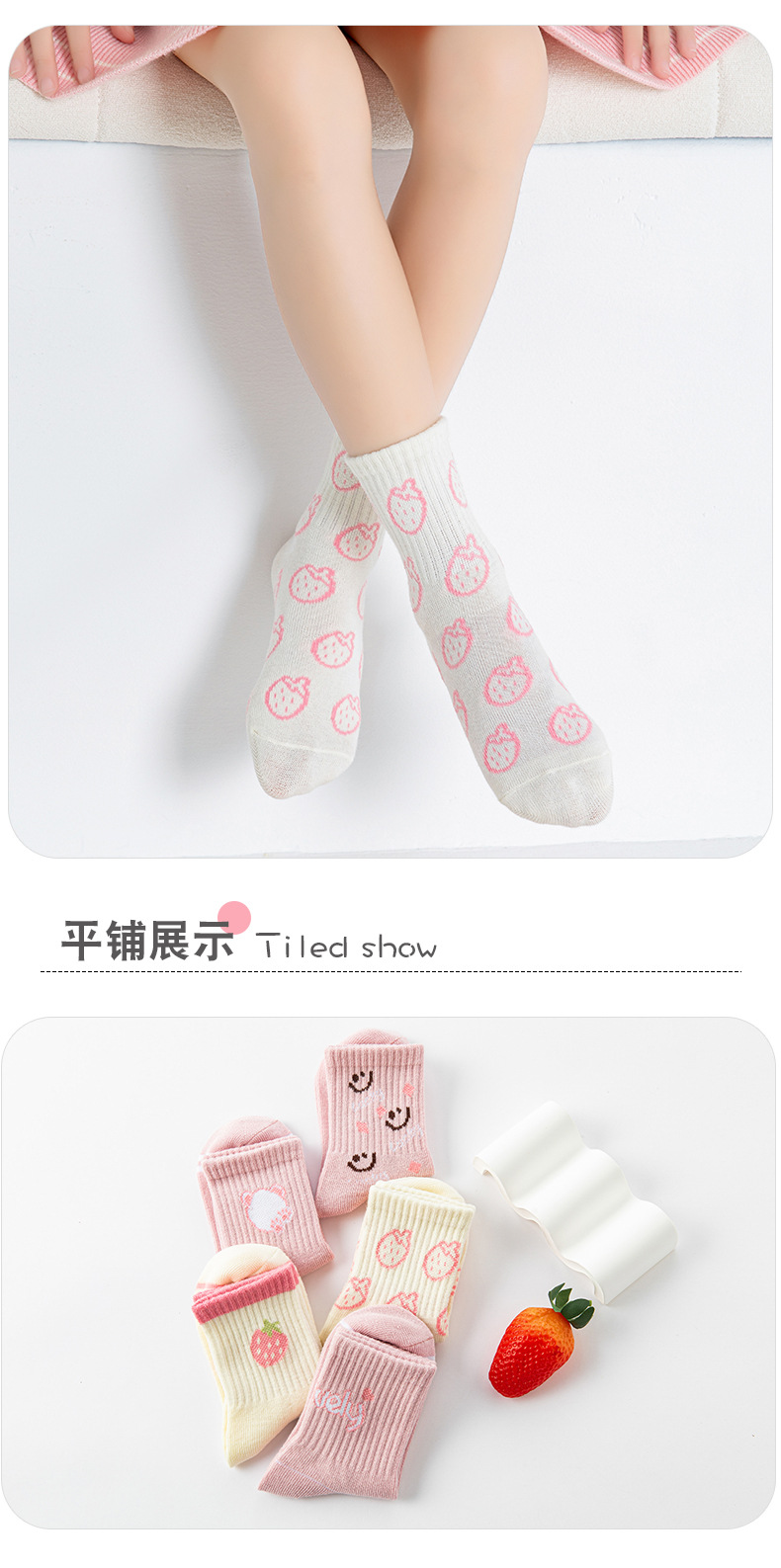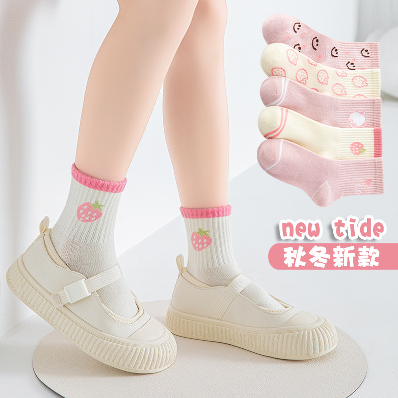 棉秋冬新款儿童袜子女童草莓春秋中筒袜中大童吸汗防臭宝宝袜潮款