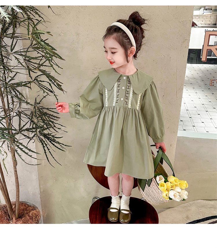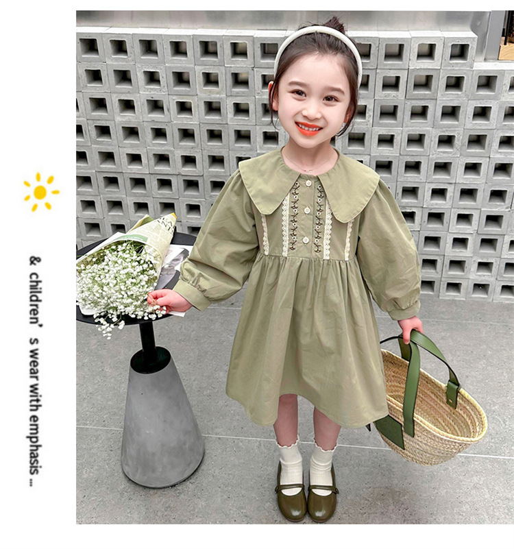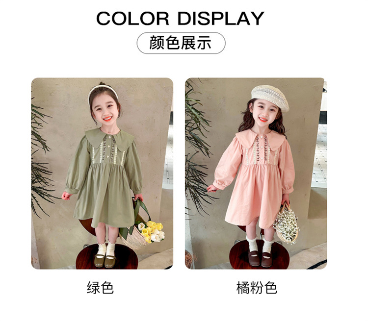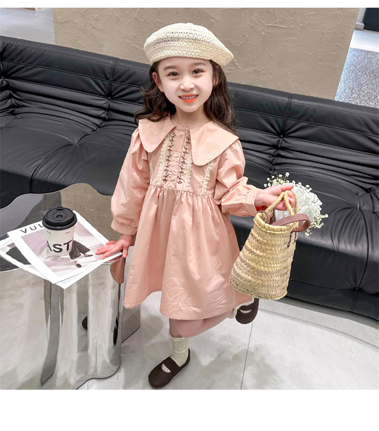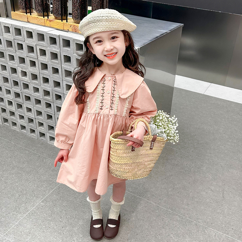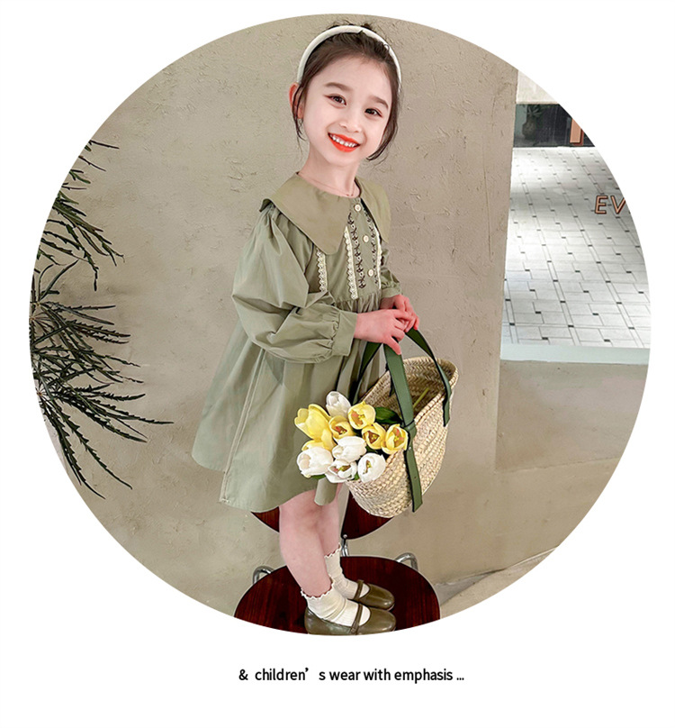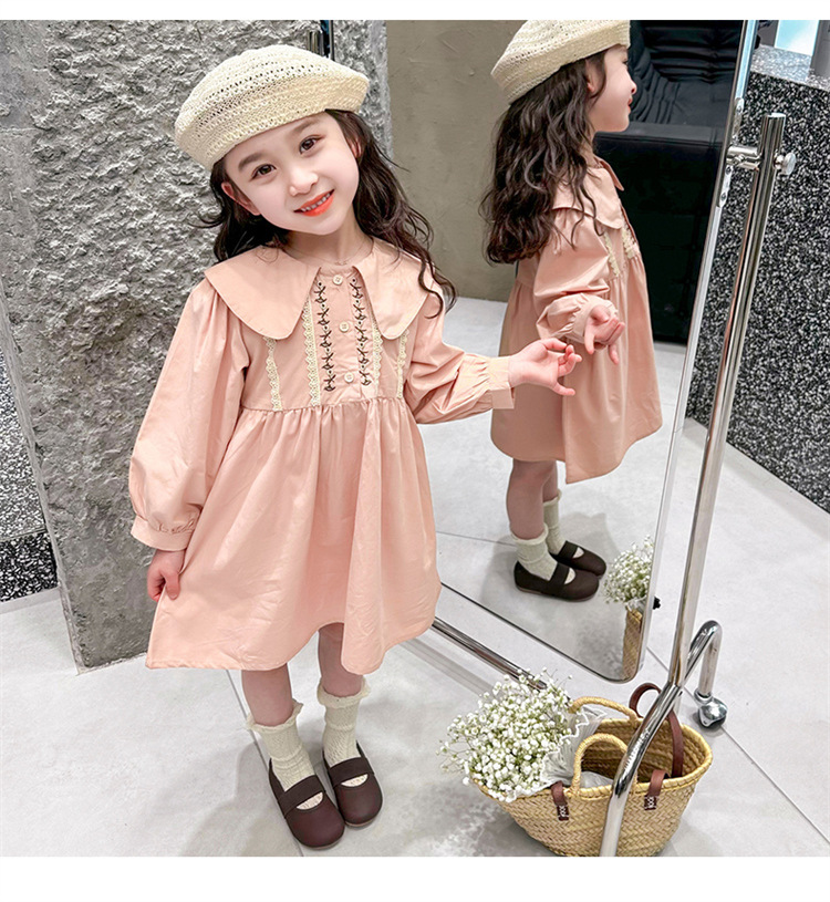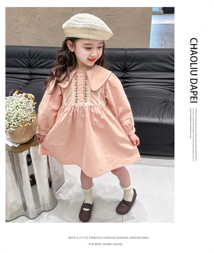 소녀의 캐주얼 원피스 봄과 가을 2024 새로운 패션 소녀의 새로운 Guofeng 꽃 자수 면화 원피스 트렌디스토어 가기