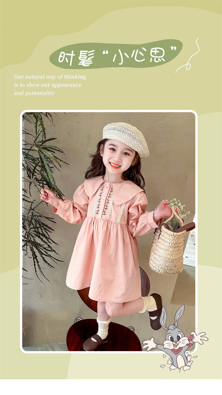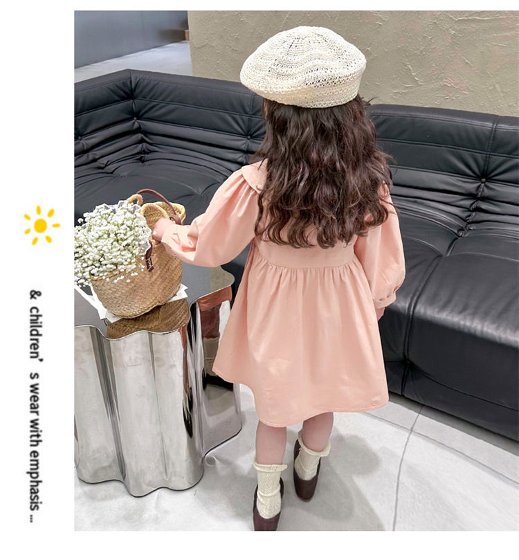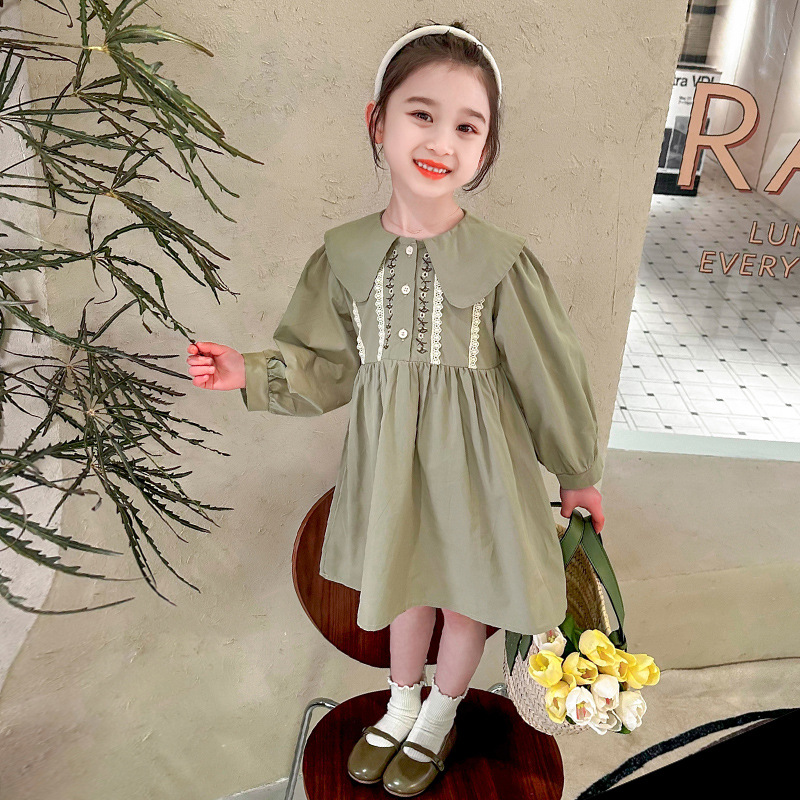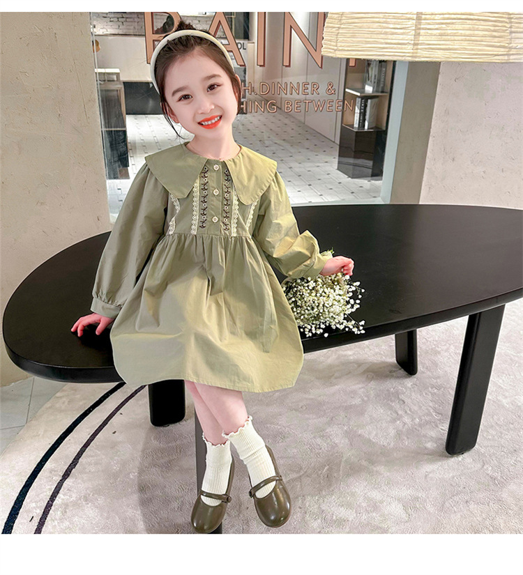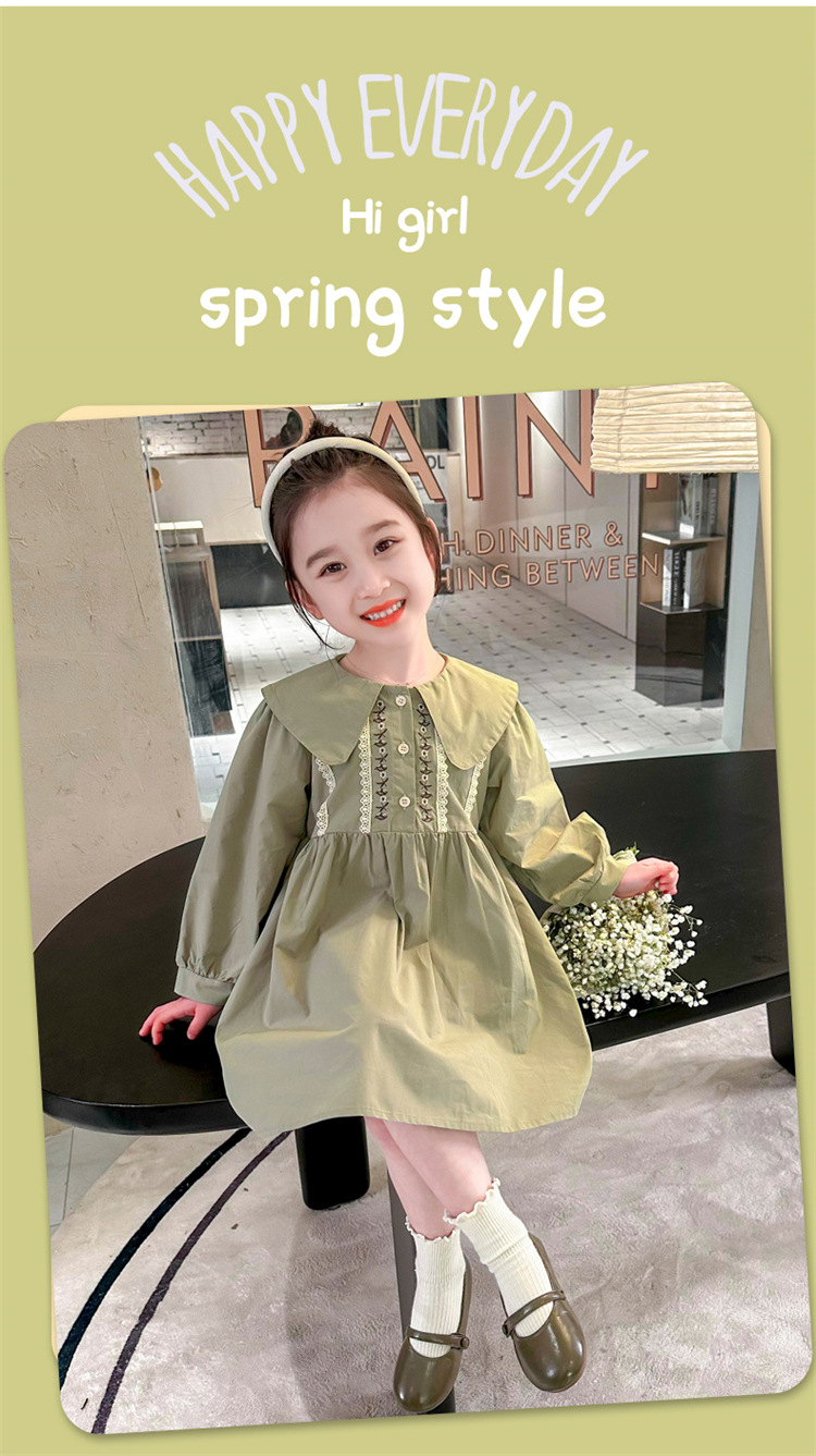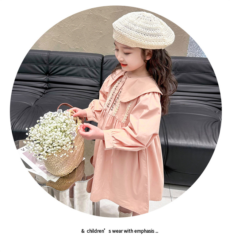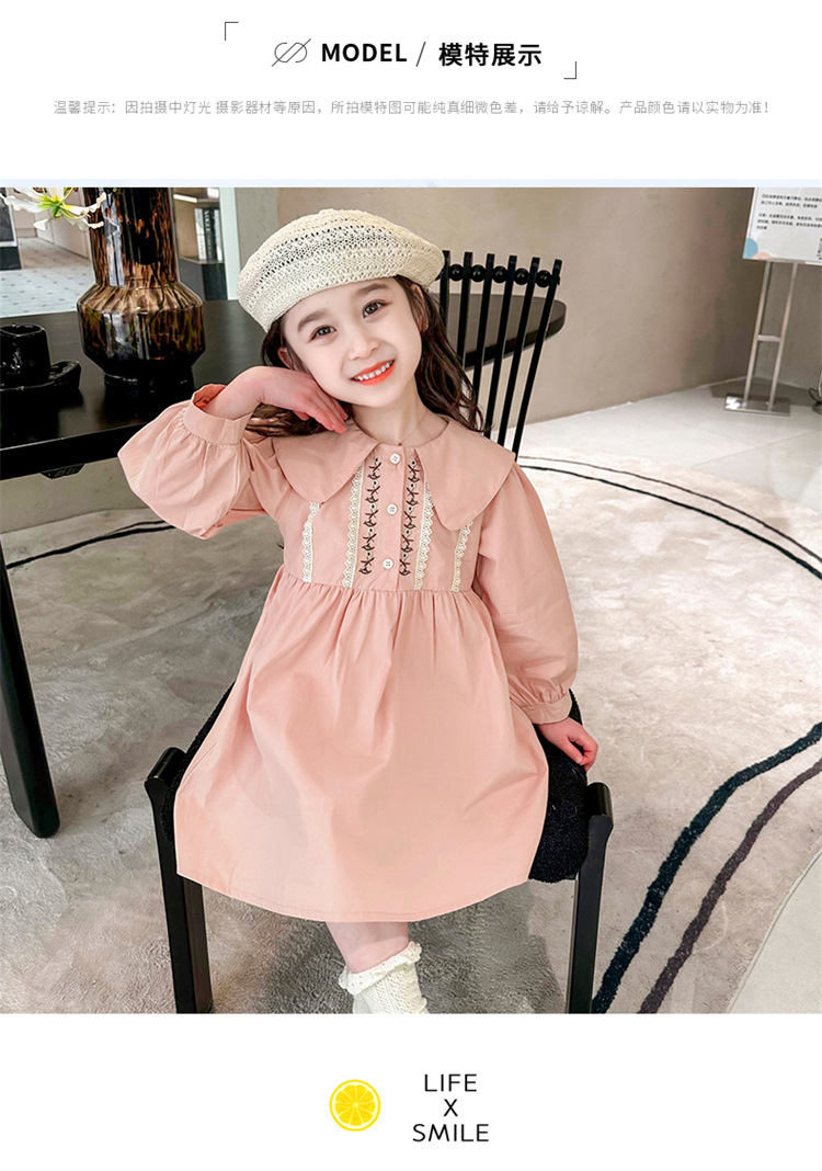 소녀의 캐주얼 원피스 봄과 가을 2024 새로운 패션 소녀의 새로운 Guofeng 꽃 자수 면화 원피스 트렌디스토어 가기
