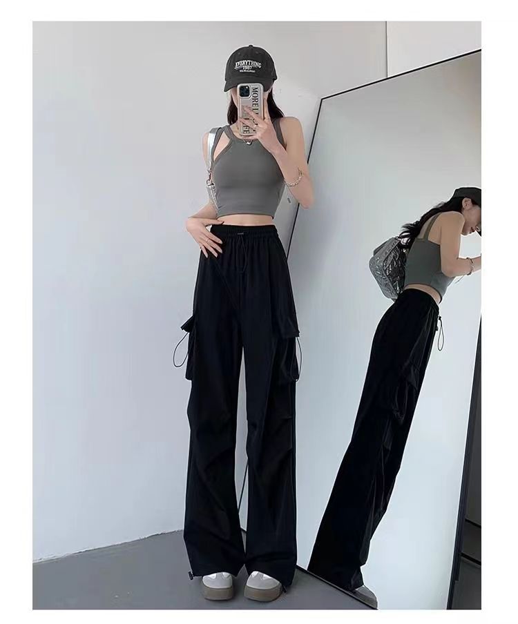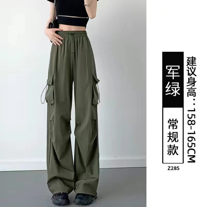2024 여름 빠른 건조 작업복 여성의 새로운 충전 작은 얼음 실크 넓은 다리 바지 얇은 등산 바지스토어 가기