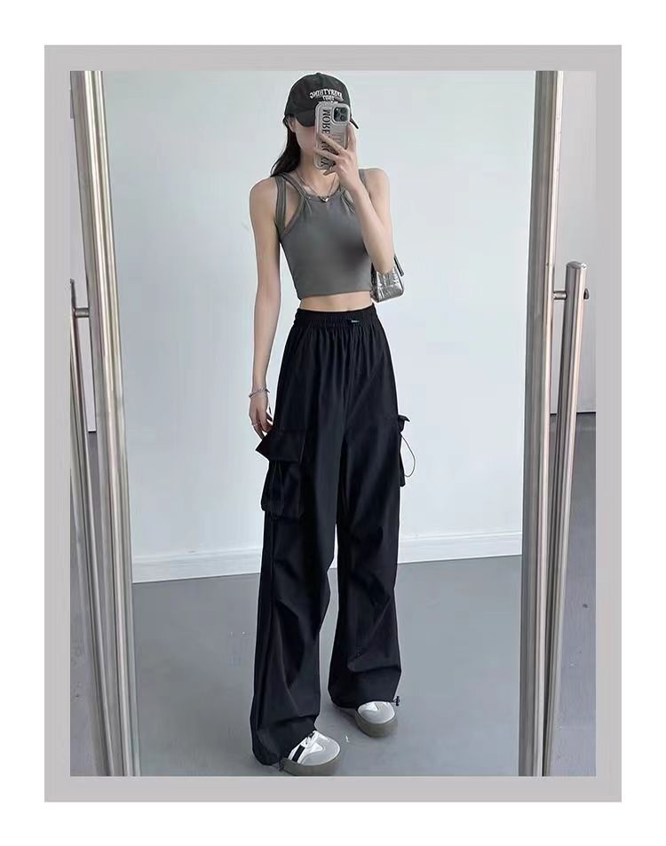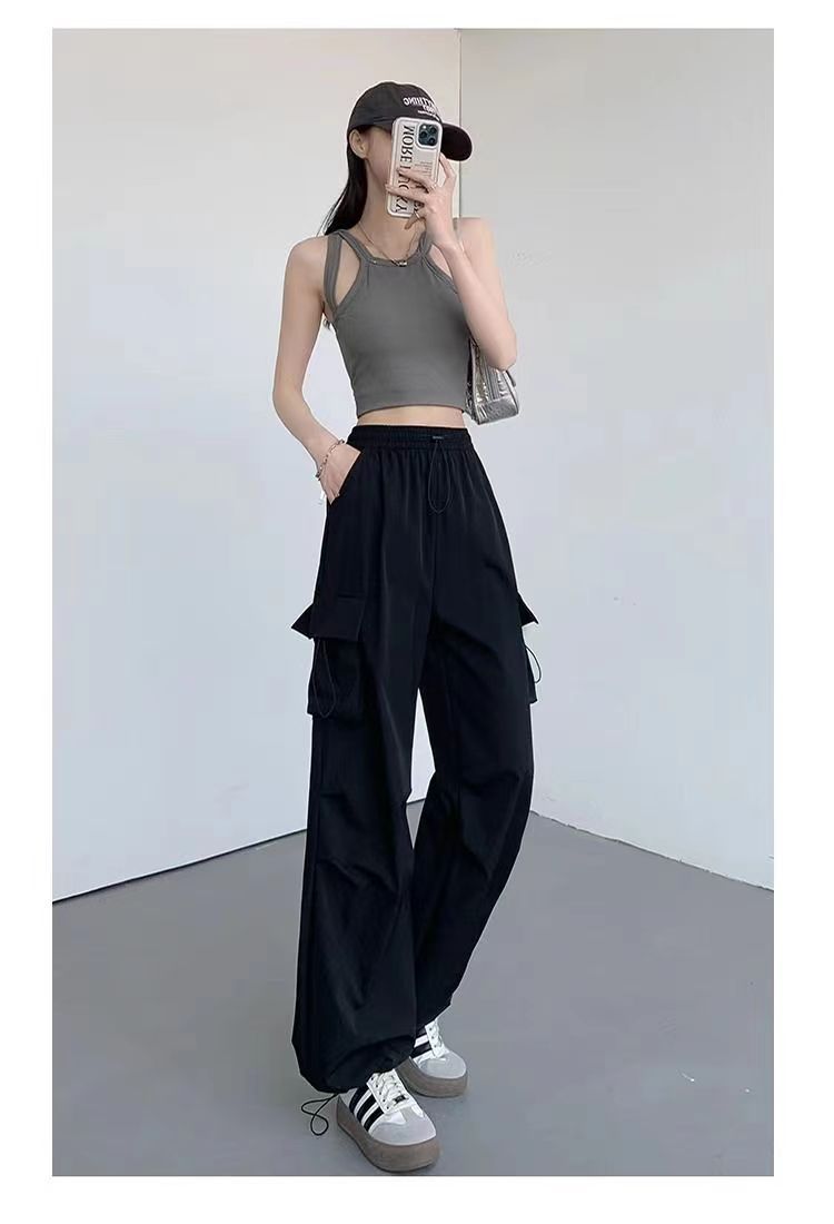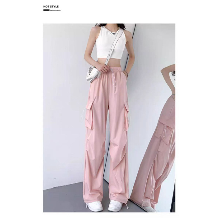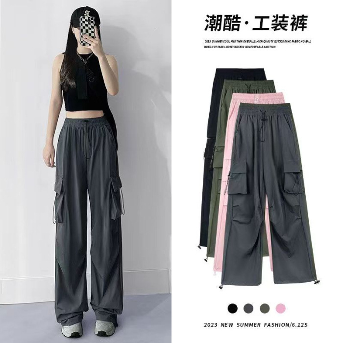 2024 여름 빠른 건조 작업복 여성의 새로운 충전 작은 얼음 실크 넓은 다리 바지 얇은 등산 바지