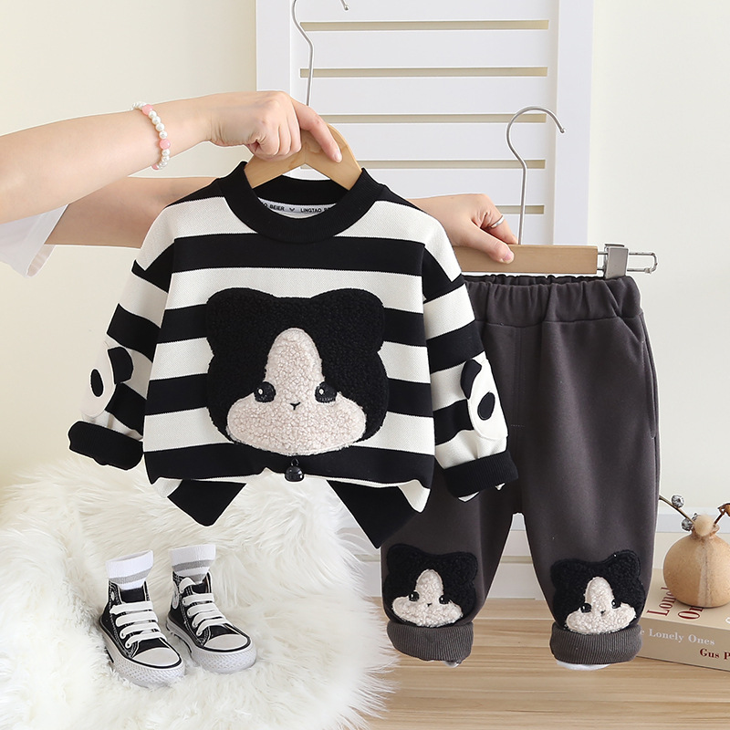 가을 2024 새로운 소년 만화 줄무늬 긴 소매 세트 소년 캐주얼 바지 투피스 세트 머리카락 세대스토어 가기