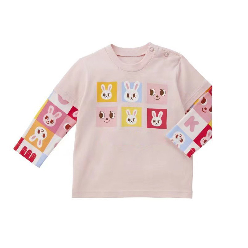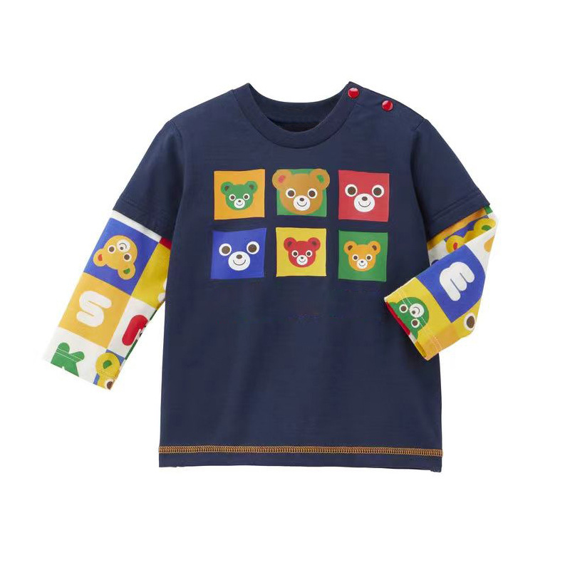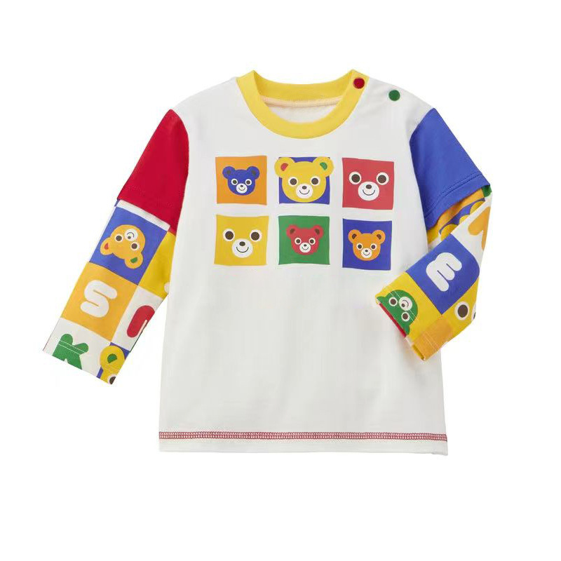 秋季新款儿童卡通可爱彩色熊拼接假两件长袖T恤