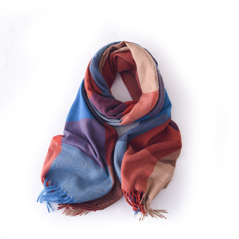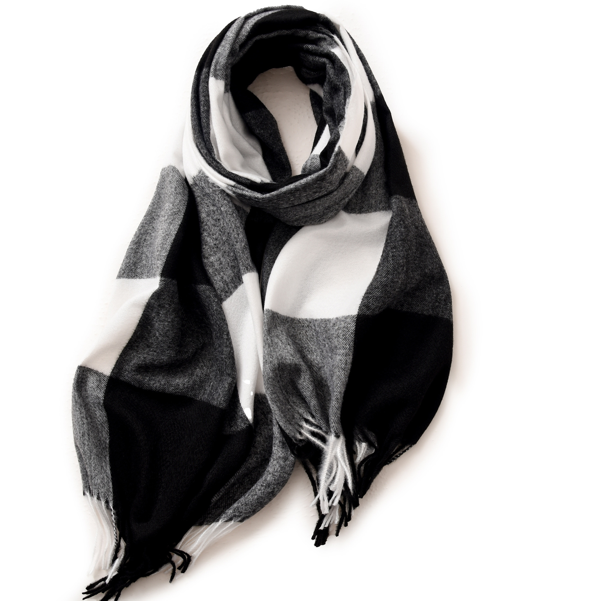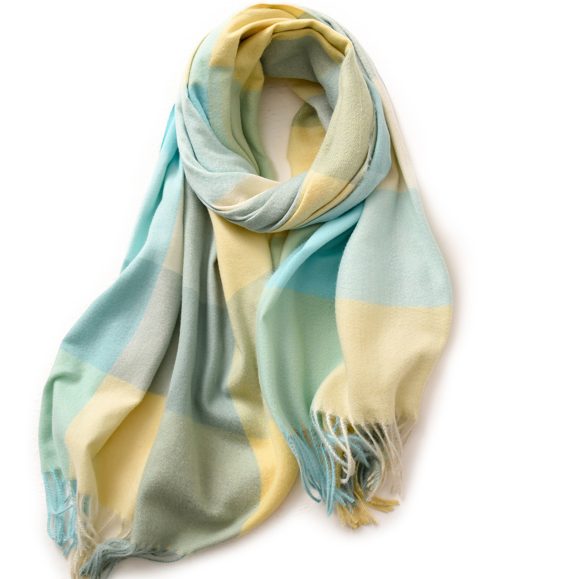 2024년 스트라이프 체크 무늬 대형 숄 배색 프린지 모조 캐시미어 가을 겨울 따뜻한 여성용 스카프 도매 방한