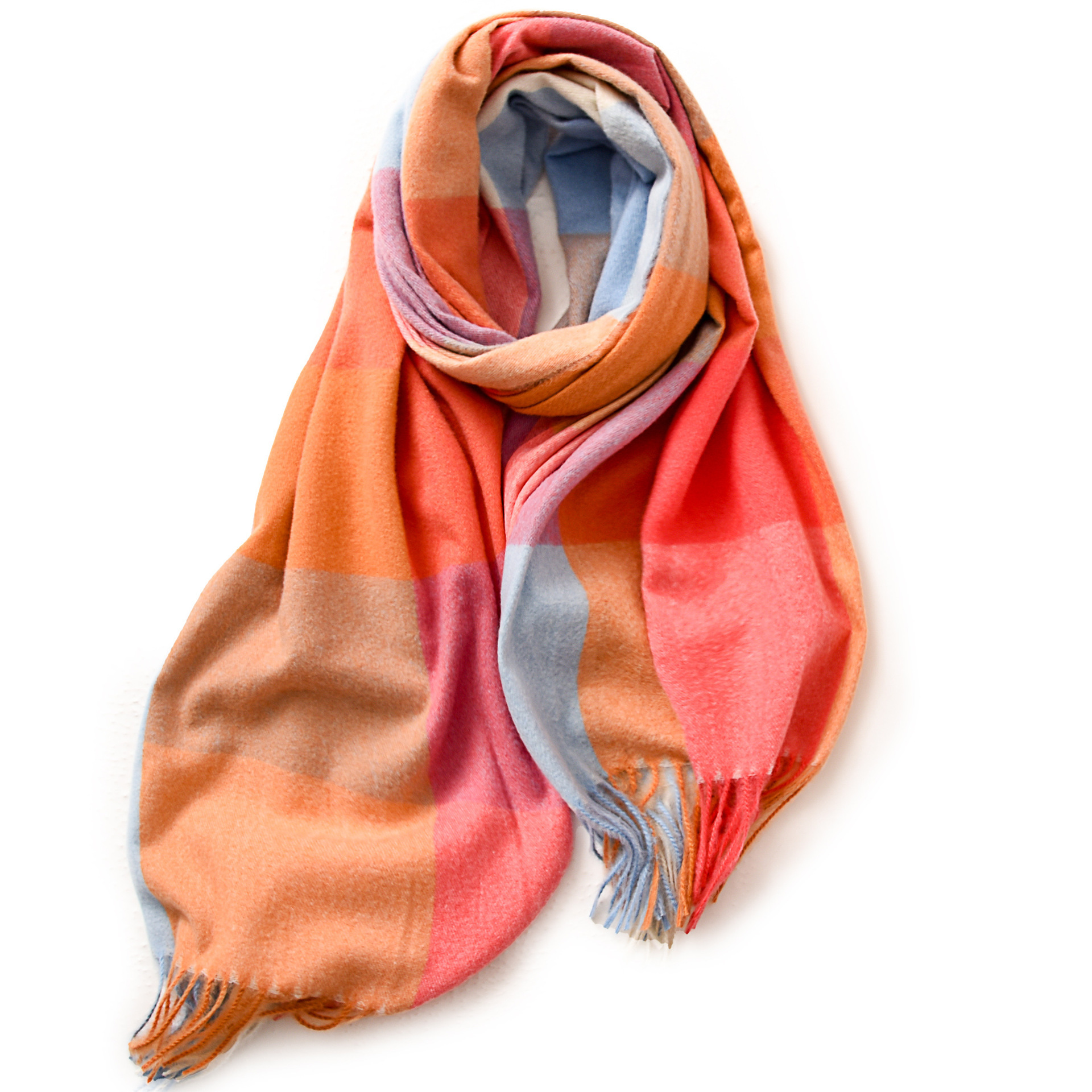 2024년 스트라이프 체크 무늬 대형 숄 배색 프린지 모조 캐시미어 가을 겨울 따뜻한 여성용 스카프 도매 방한스토어 가기