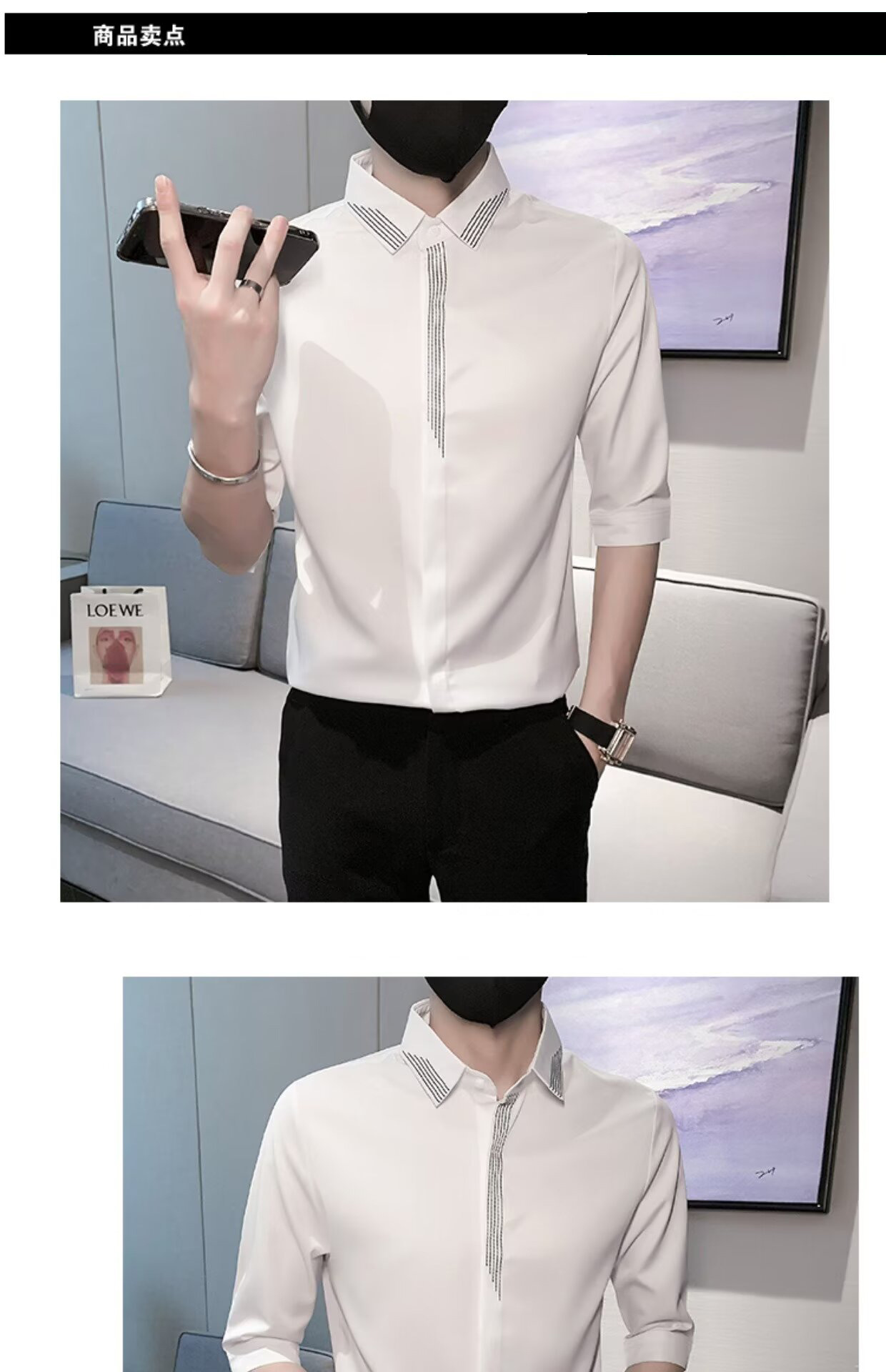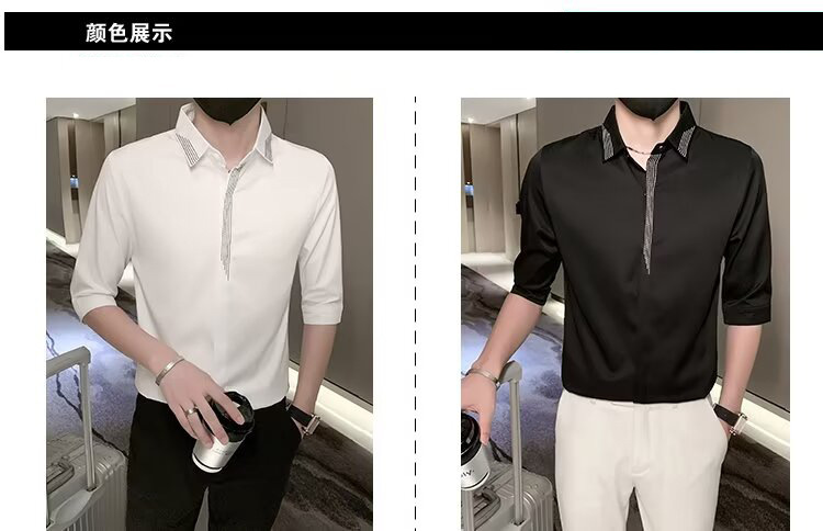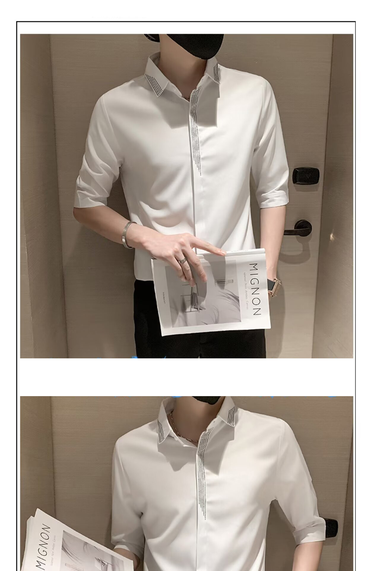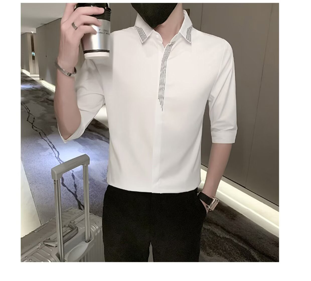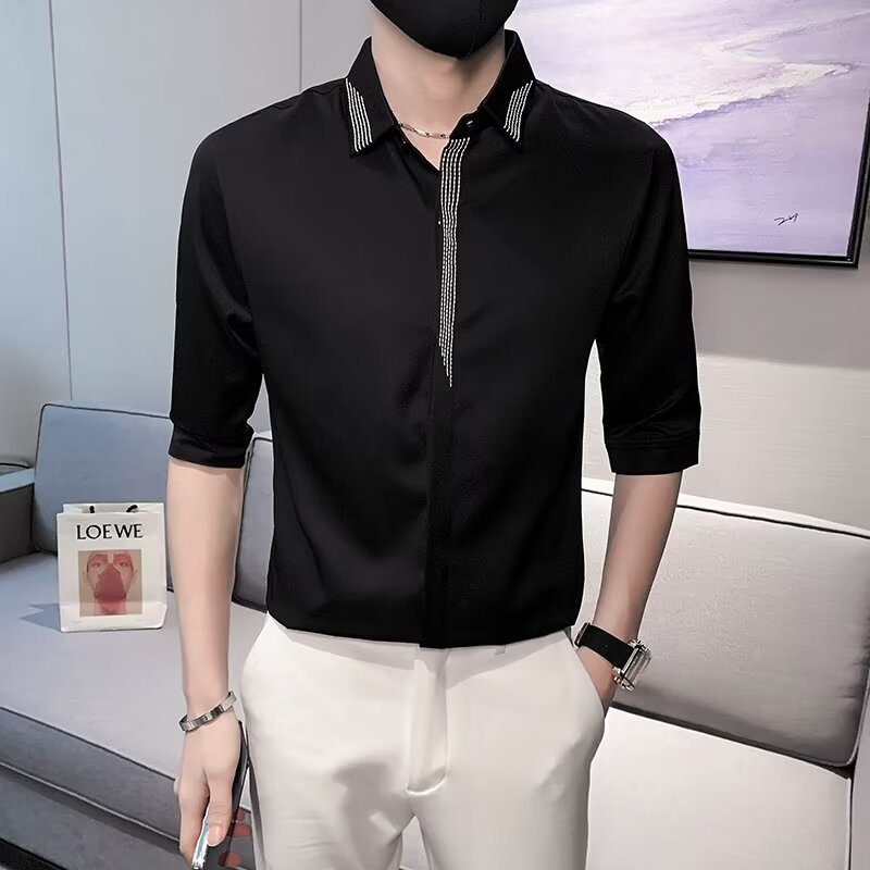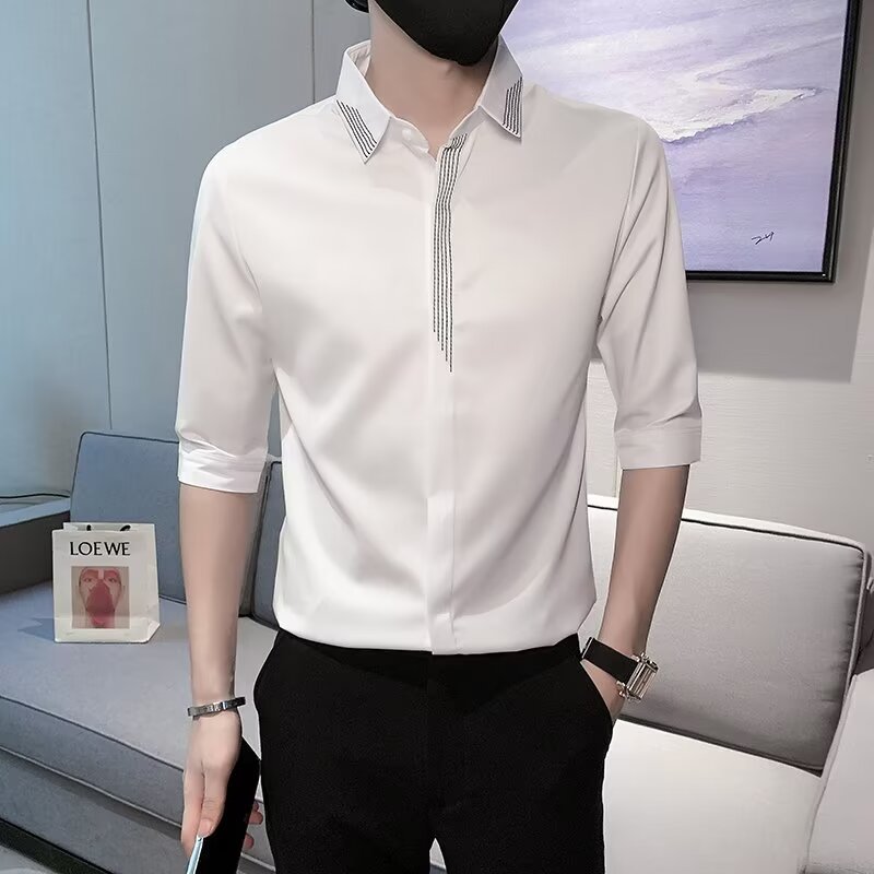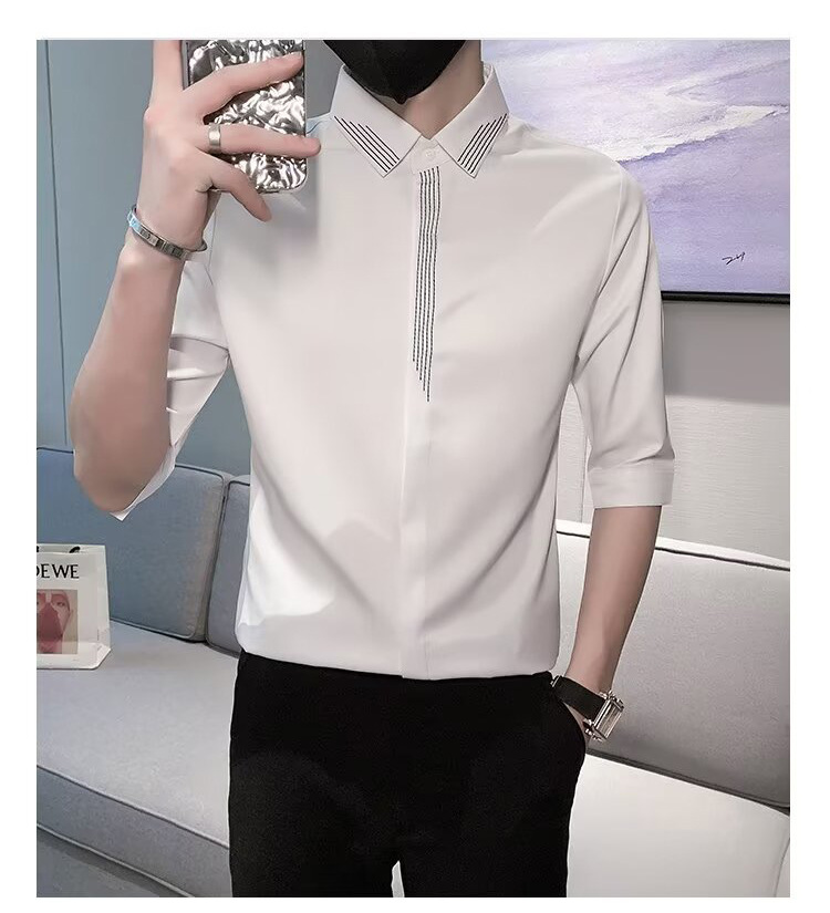하이 엔드 자수 셔츠 남성 반팔 여름 비즈니스 캐주얼 트렌디 슬림 핏 영국 스타일 셔츠스토어 가기