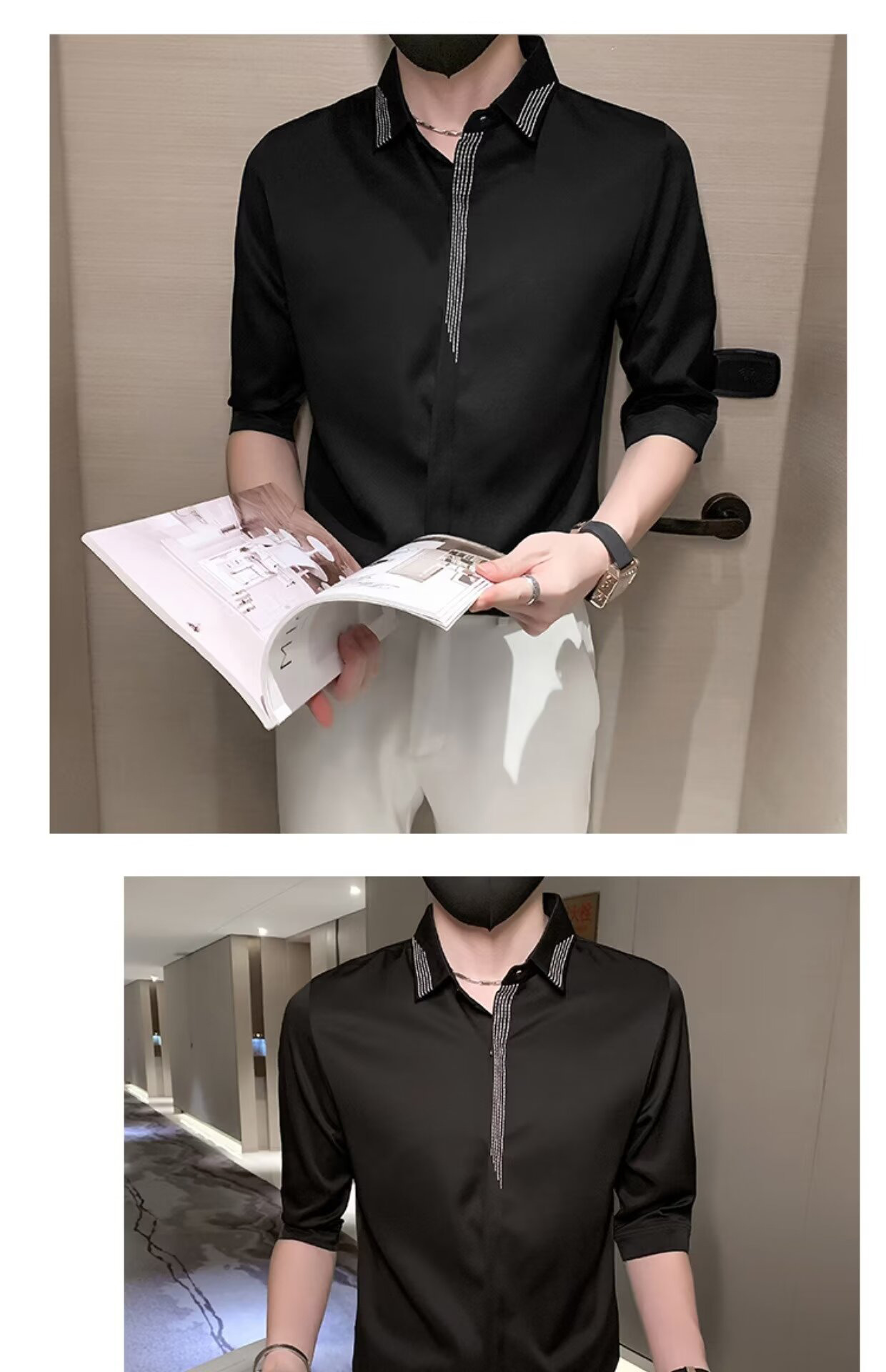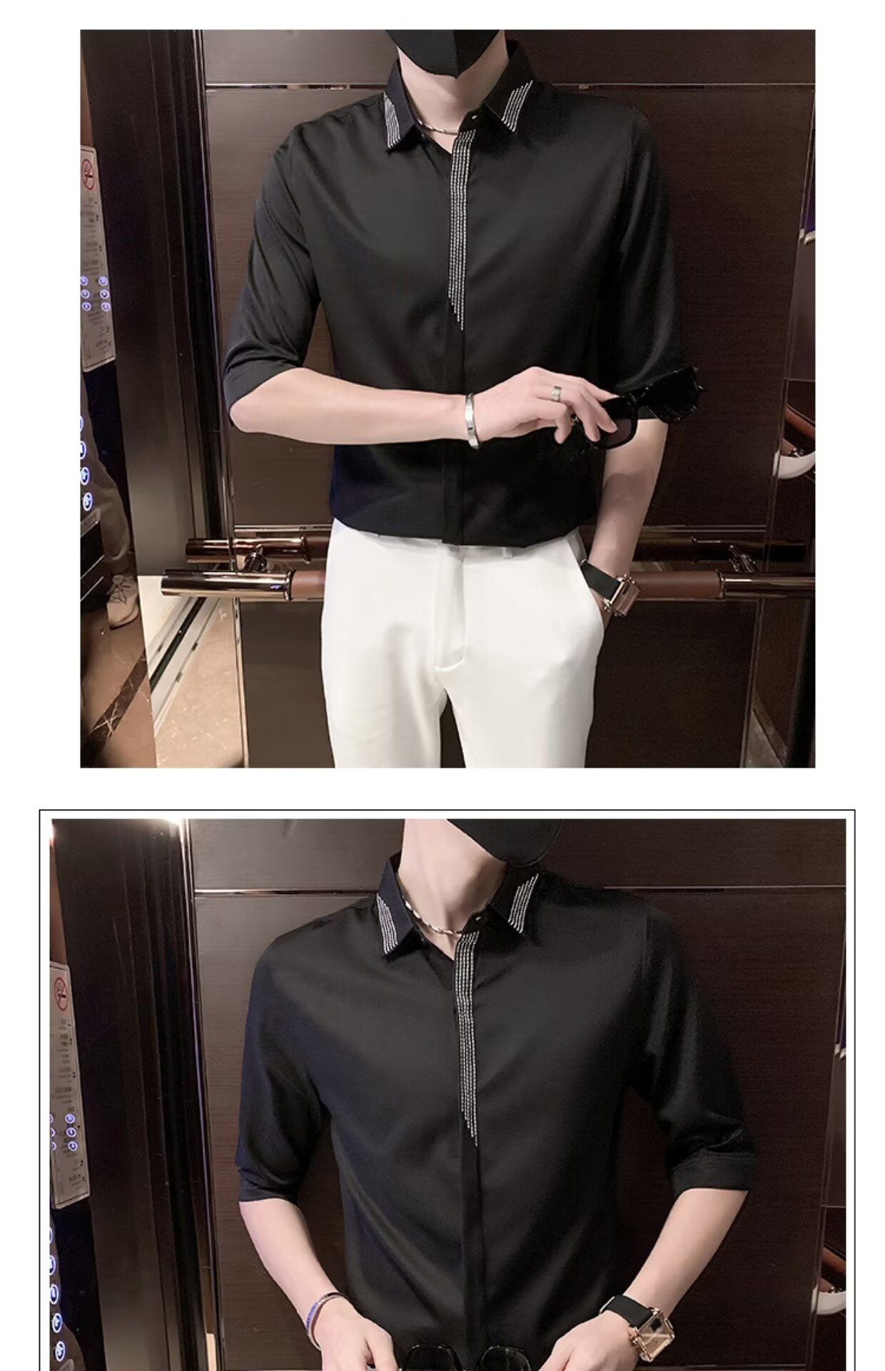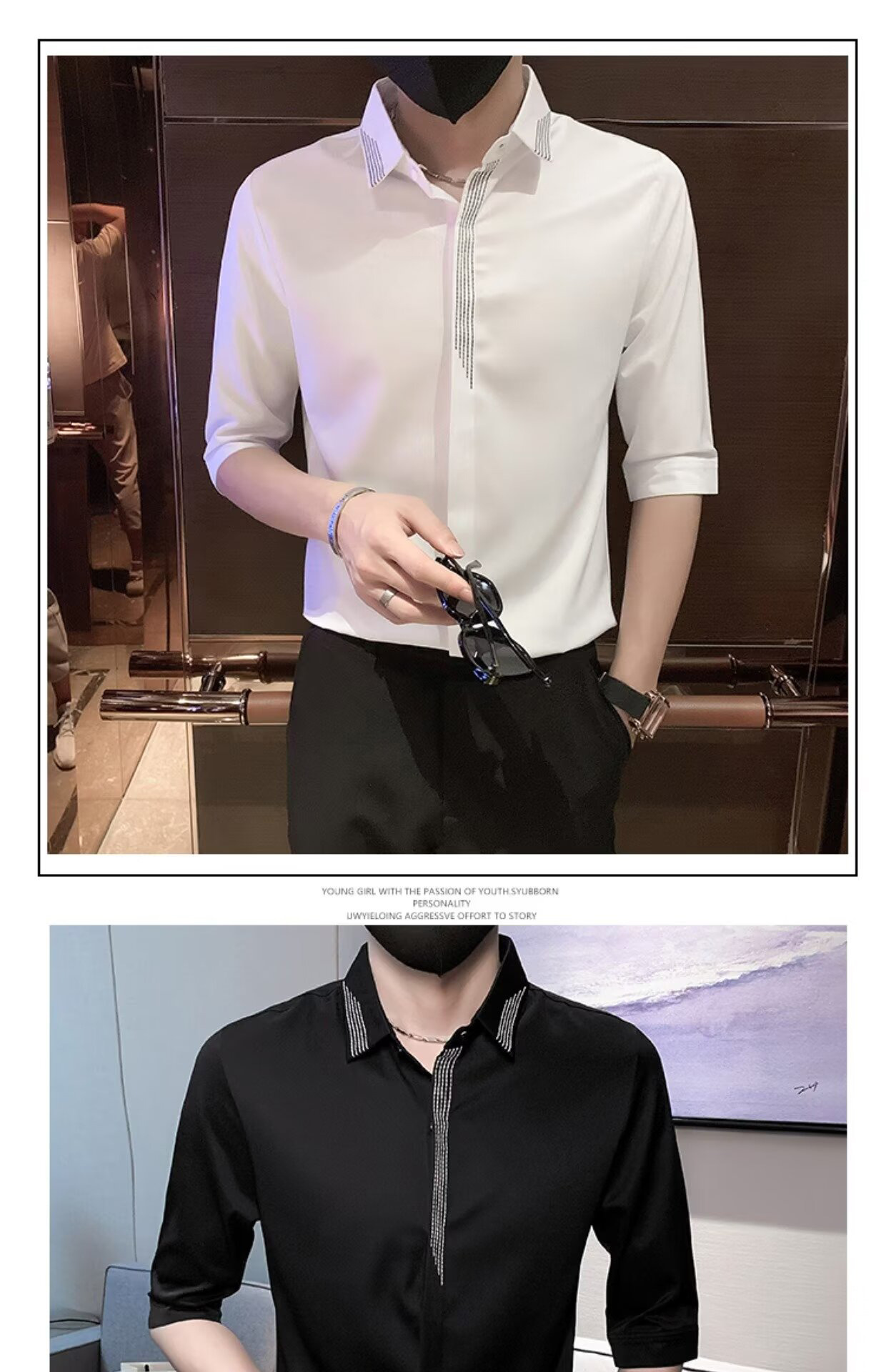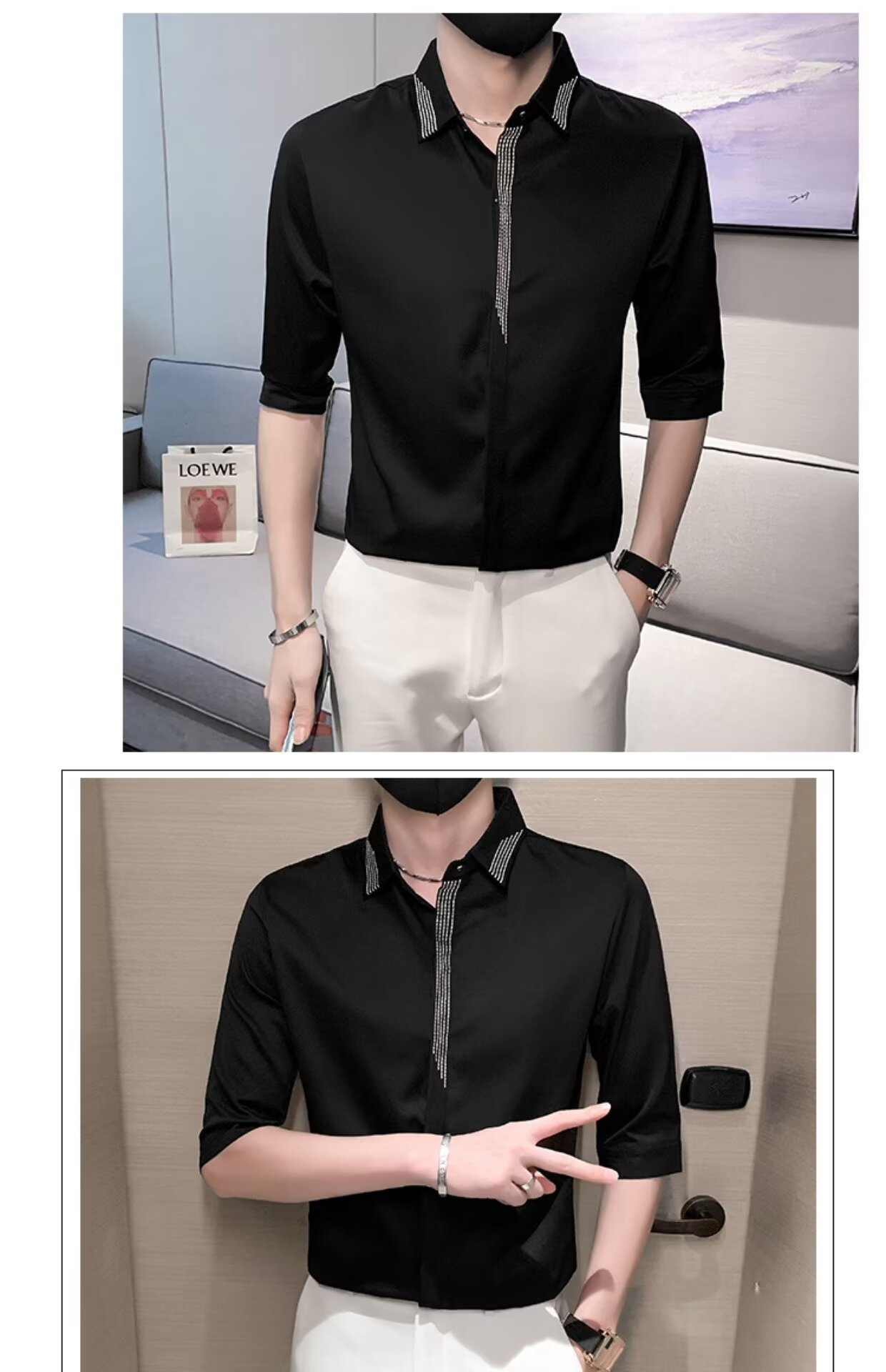하이 엔드 자수 셔츠 남성 반팔 여름 비즈니스 캐주얼 트렌디 슬림 핏 영국 스타일 셔츠스토어 가기