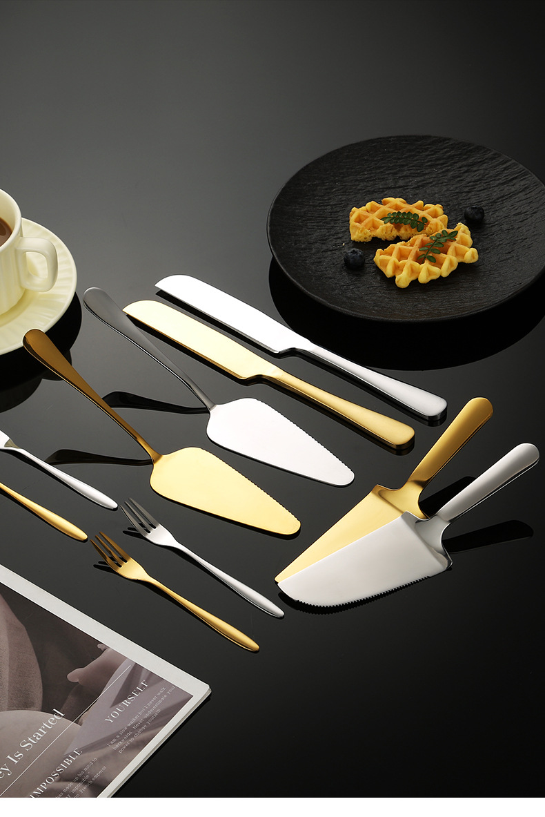 스테인레스 스틸 케이크 삽 제조 업체 달 케이크 나이프와 포크 빵 칼 치아 삼각형 삽 과일 포크 세트 베이킹 도구
