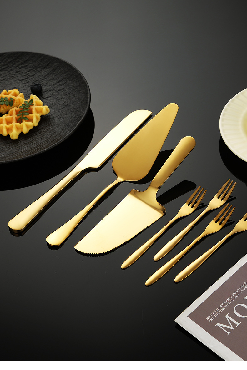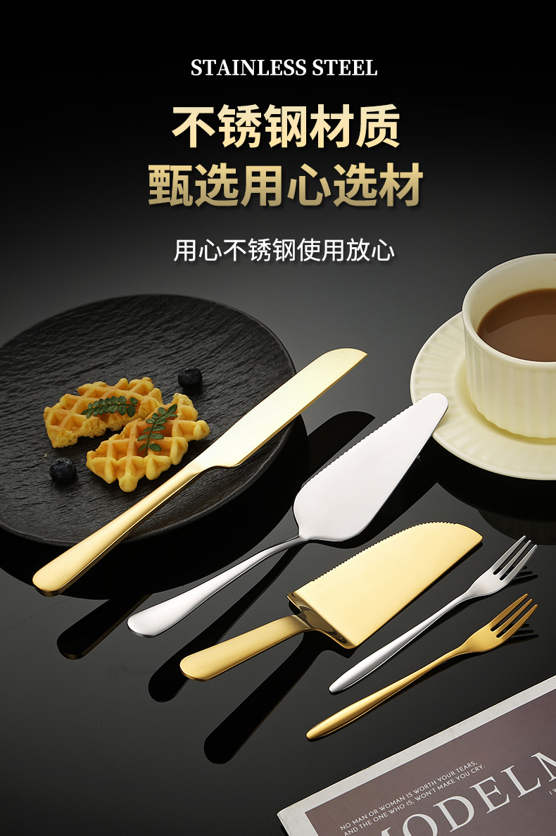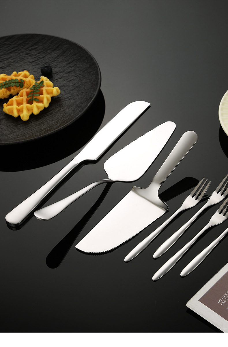스테인레스 스틸 케이크 삽 제조 업체 달 케이크 나이프와 포크 빵 칼 치아 삼각형 삽 과일 포크 세트 베이킹 도구스토어 가기