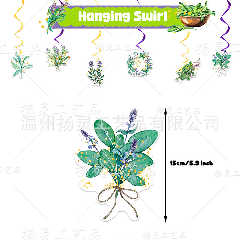1 set Party Spirals Decor (6 Hanging Cards+6 Single Spirals: 3 Gold and 3 Purple)