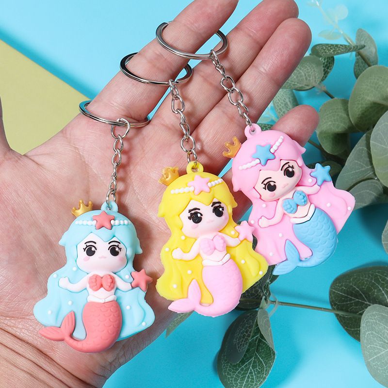 인어 키 체인 창조적 인 가방 키 펜던트 PVC 부드러운 접착제 인형 자동차 키 체인 작은 선물스토어 가기