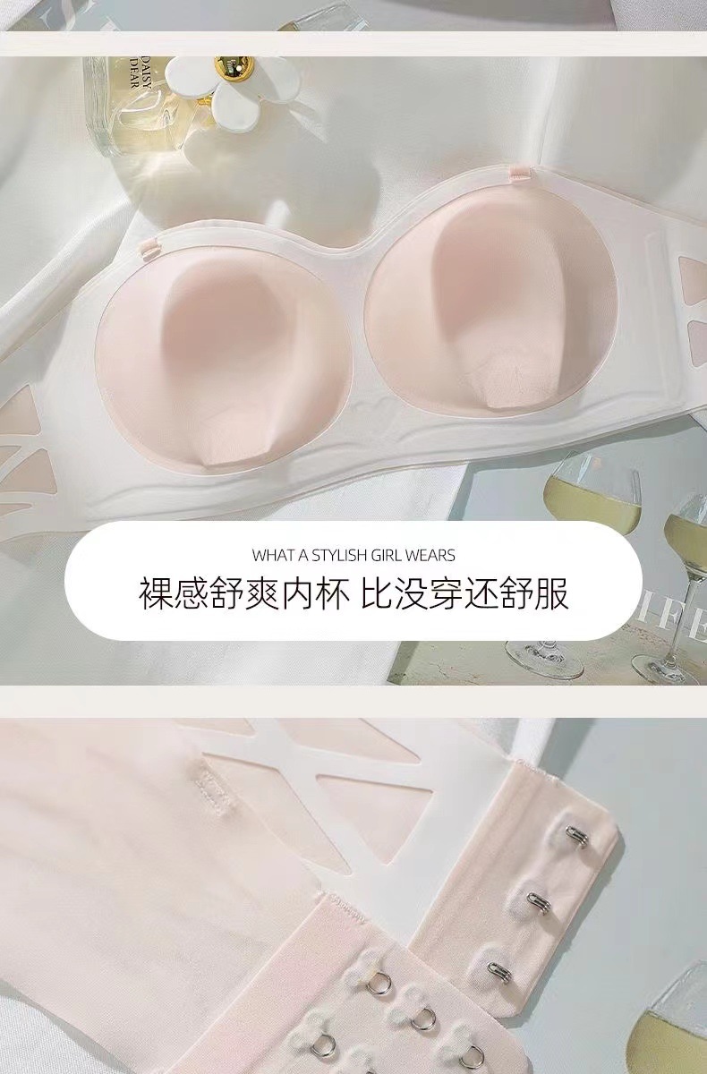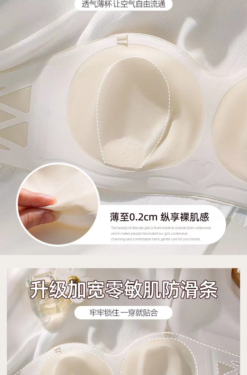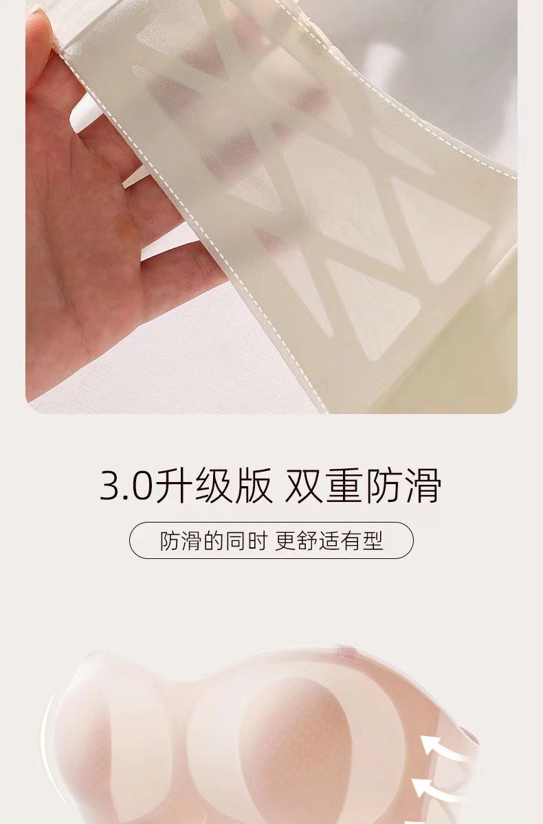 여름 얇은 끈이없는 속옷 여성의 미끄럼 방지 푸시 업 유방 포장 브래지어 용 추적 끈이없는 브래지어