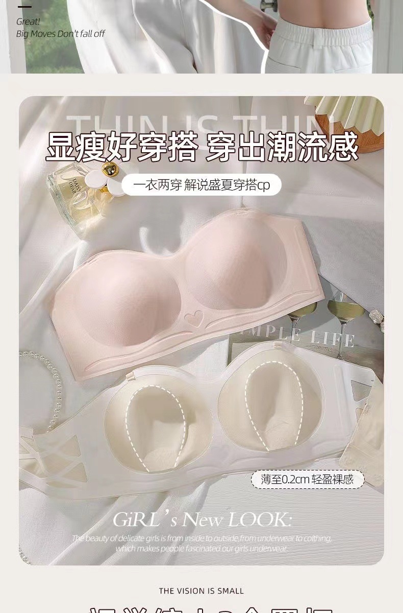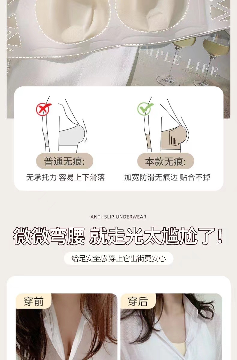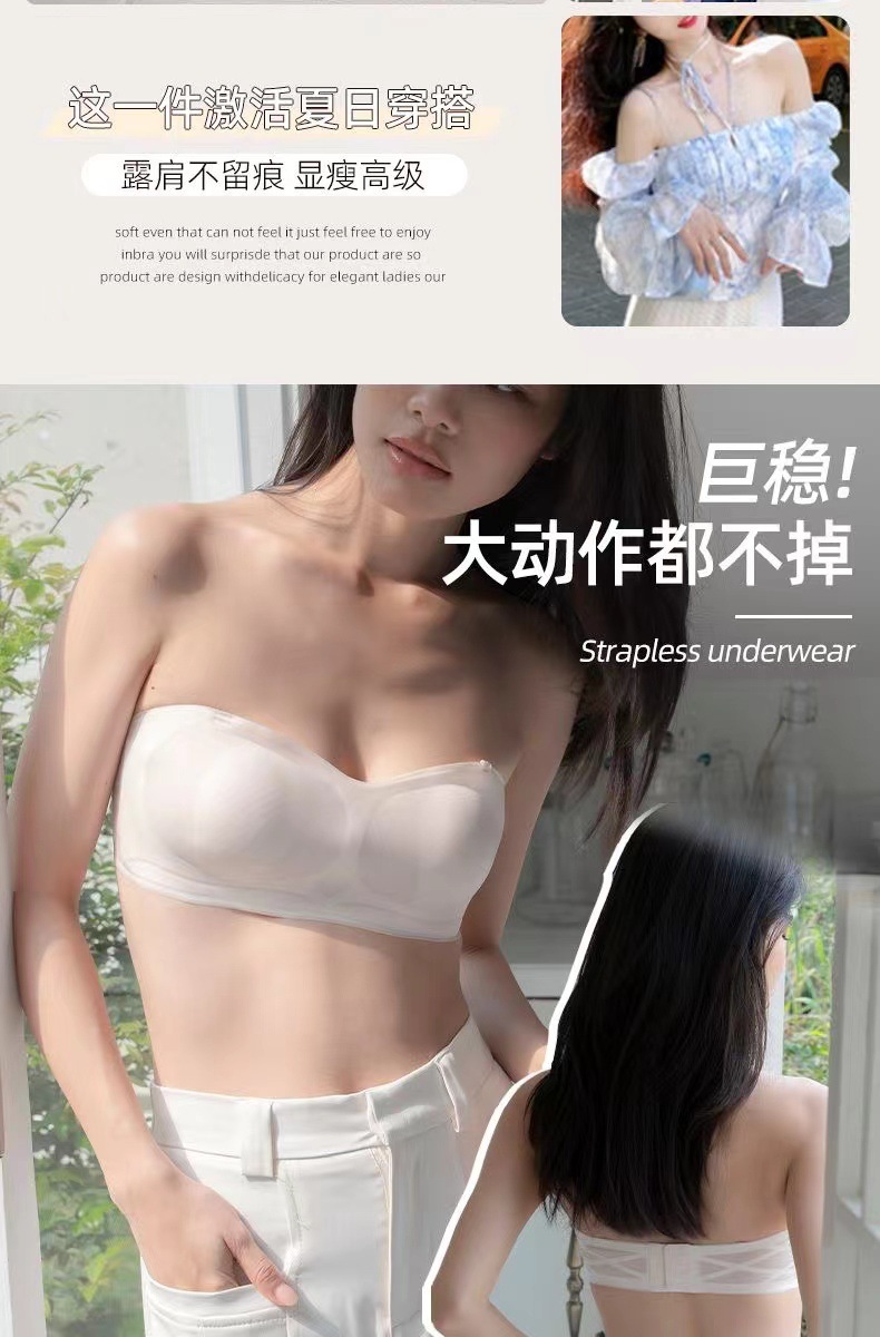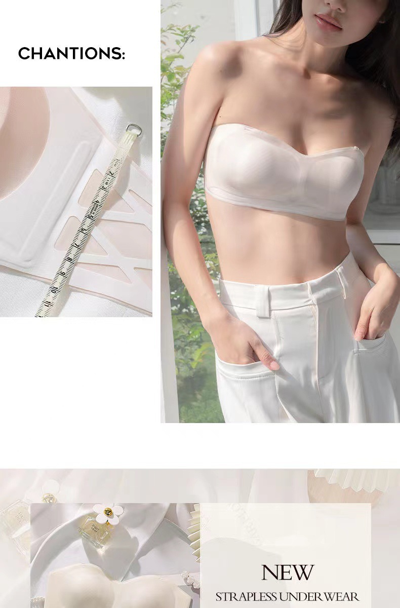 여름 얇은 끈이없는 속옷 여성의 미끄럼 방지 푸시 업 유방 포장 브래지어 용 추적 끈이없는 브래지어스토어 가기