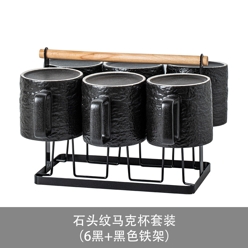 • 스톤 패턴 머그 6개 + 컵홀더 - 블랙