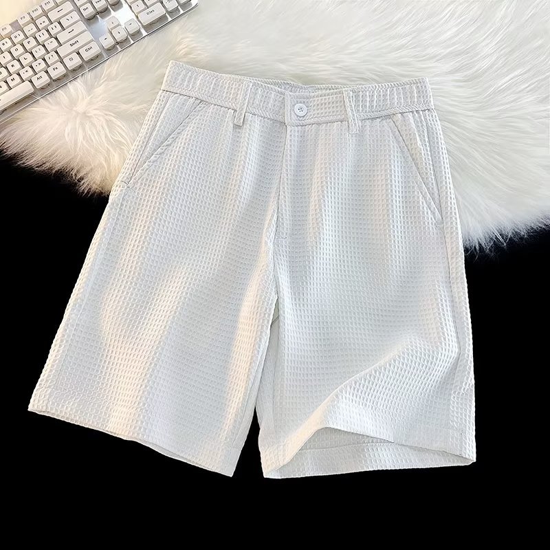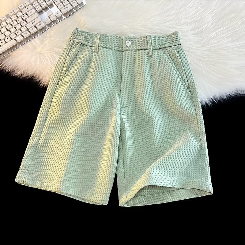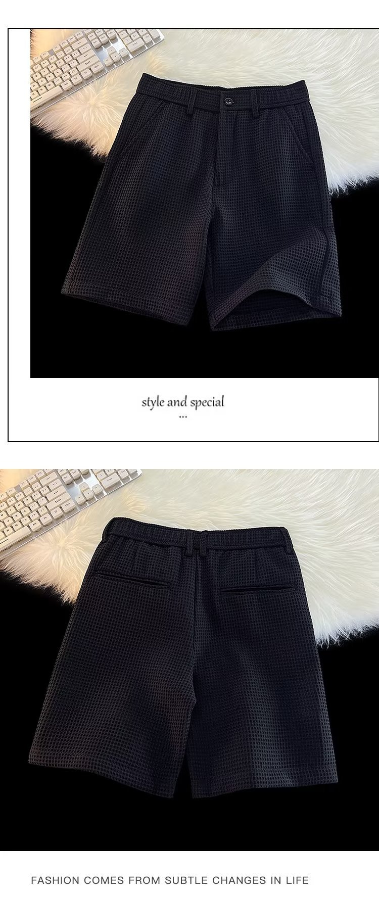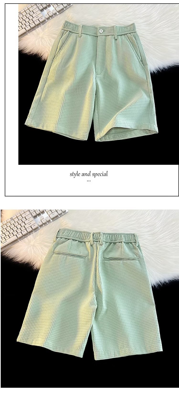 스트레이트 솔리드 컬러 비 아이언 세트 반바지 남자 여름 2024 레트로 Ins 유행 느슨한 캐주얼 5 점 바지