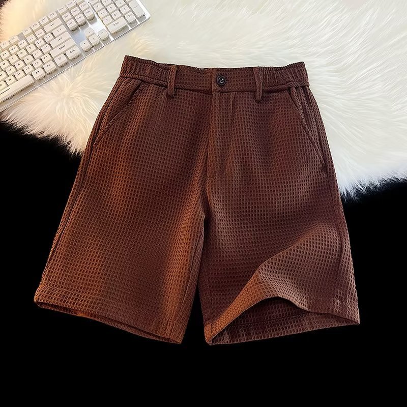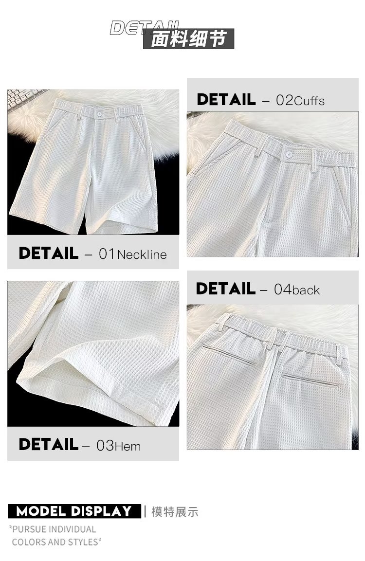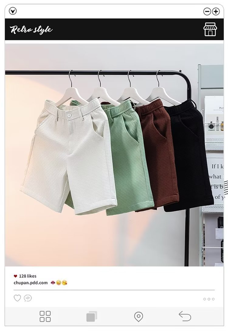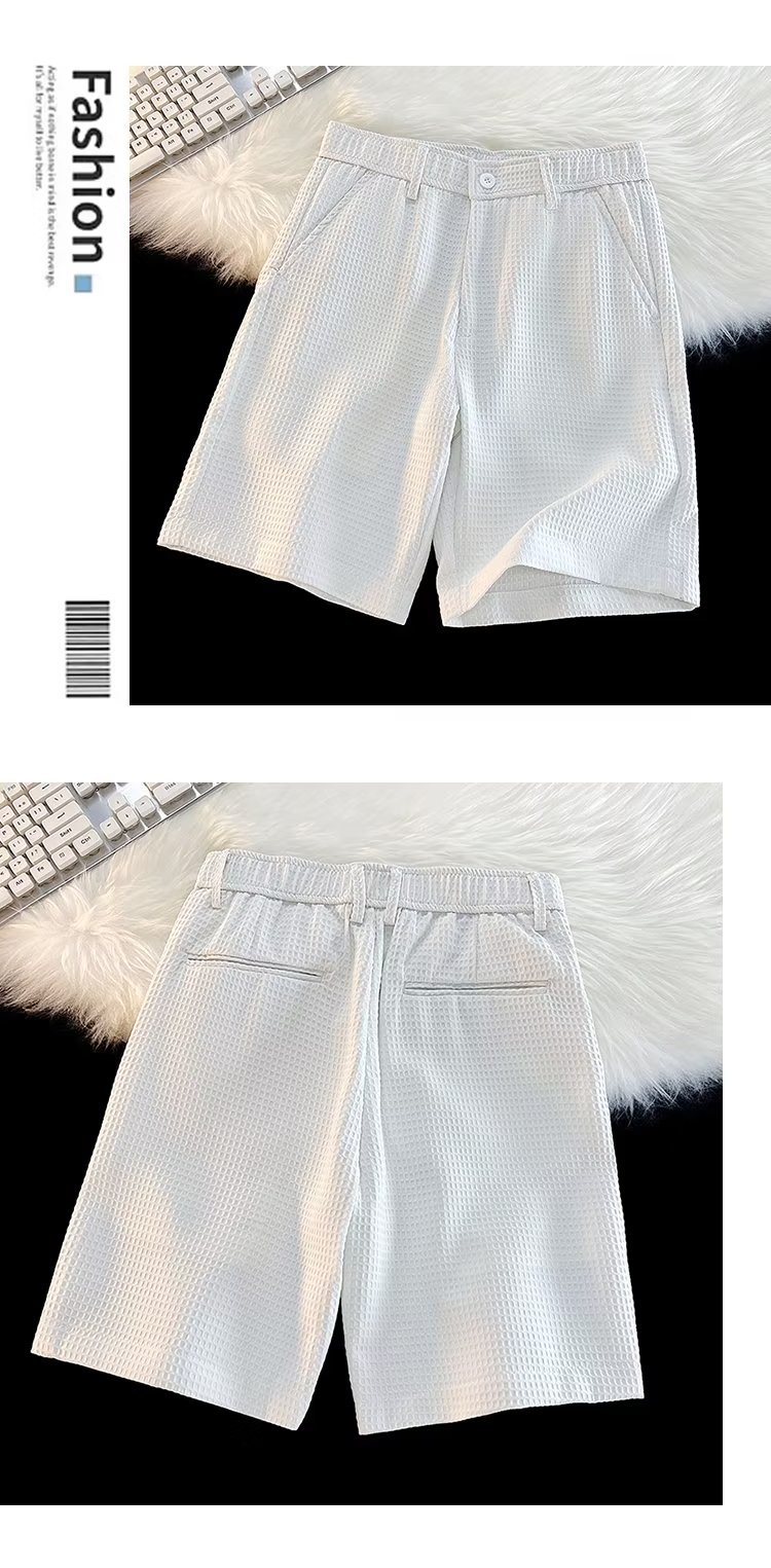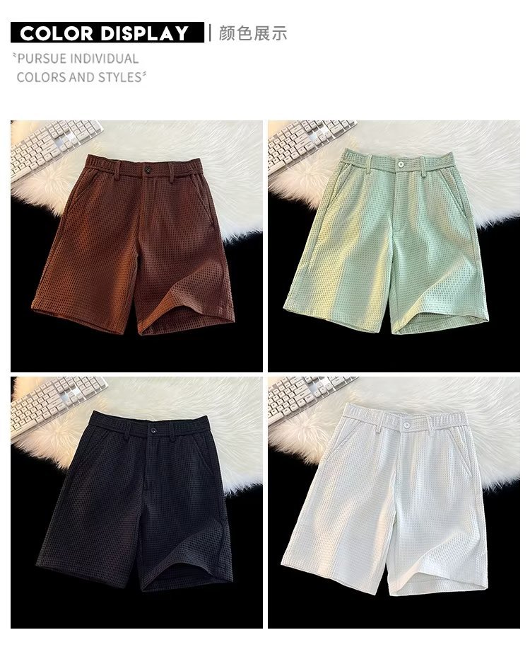 스트레이트 솔리드 컬러 비 아이언 세트 반바지 남자 여름 2024 레트로 Ins 유행 느슨한 캐주얼 5 점 바지스토어 가기