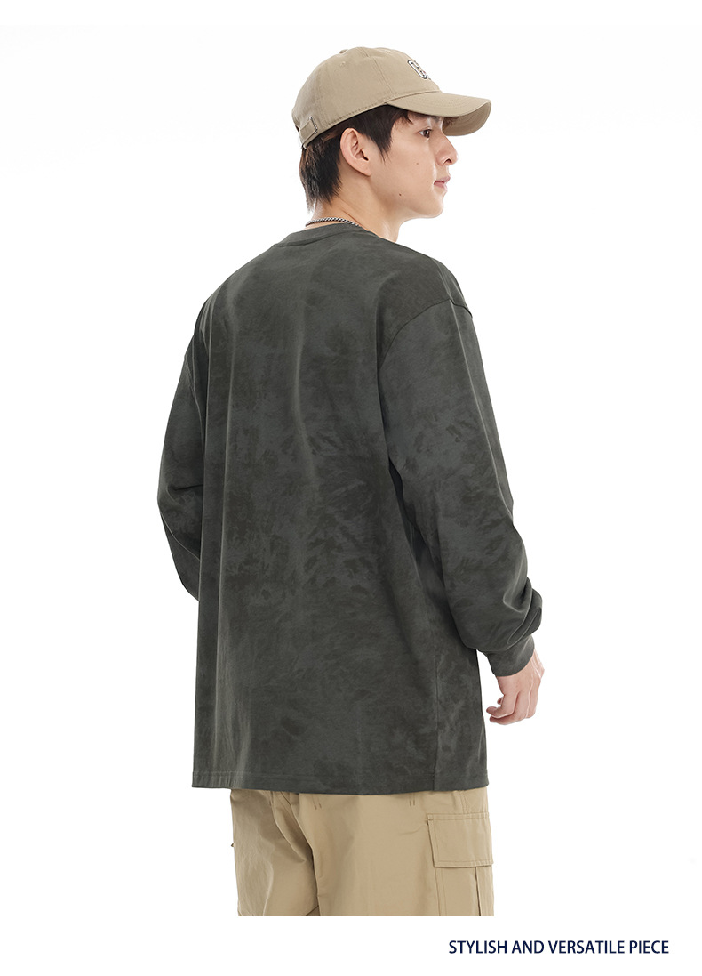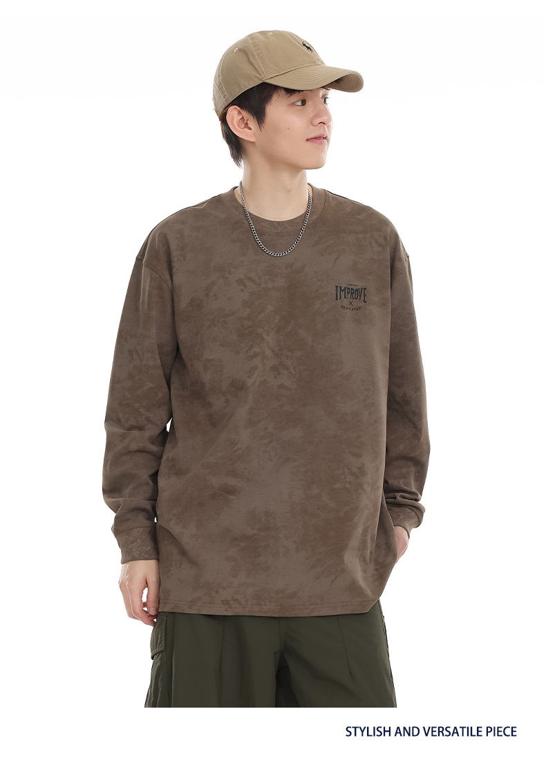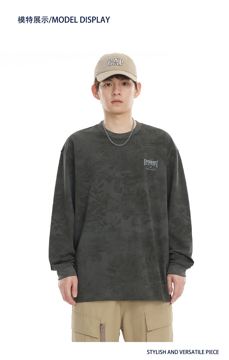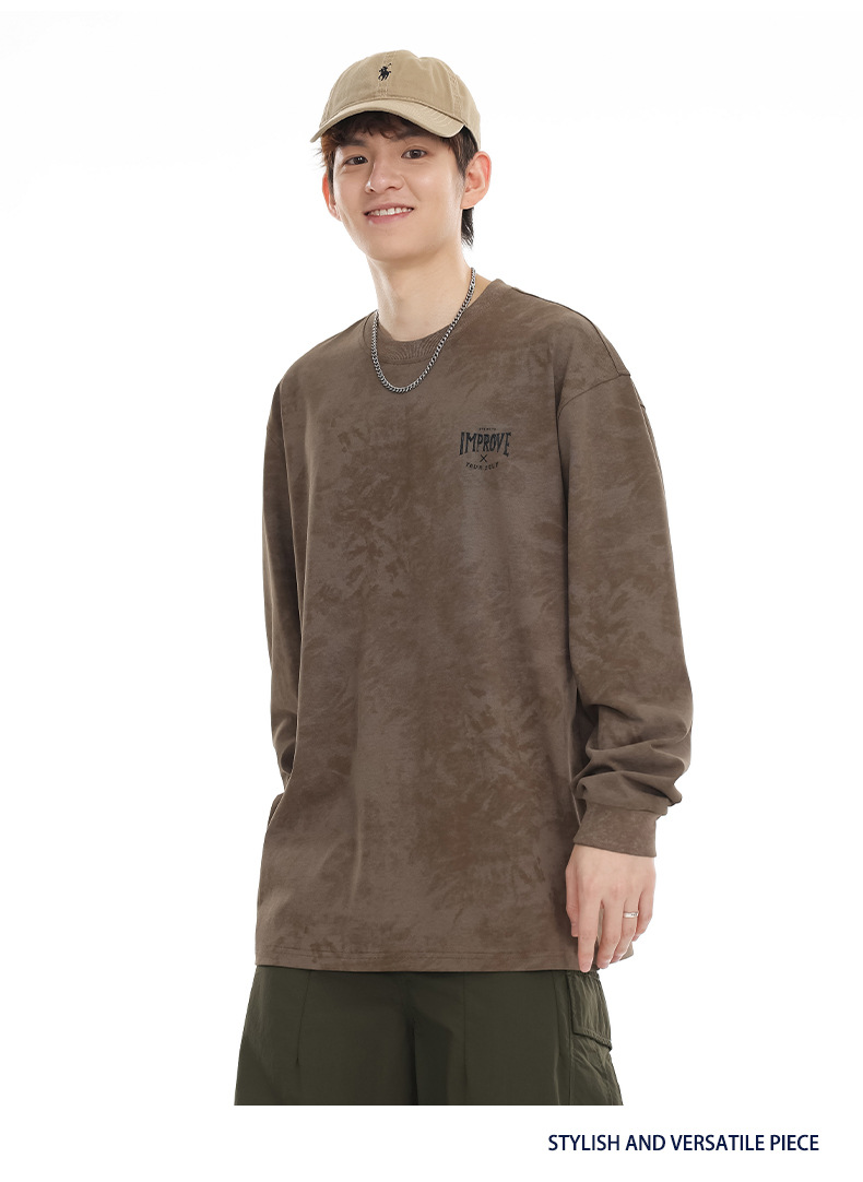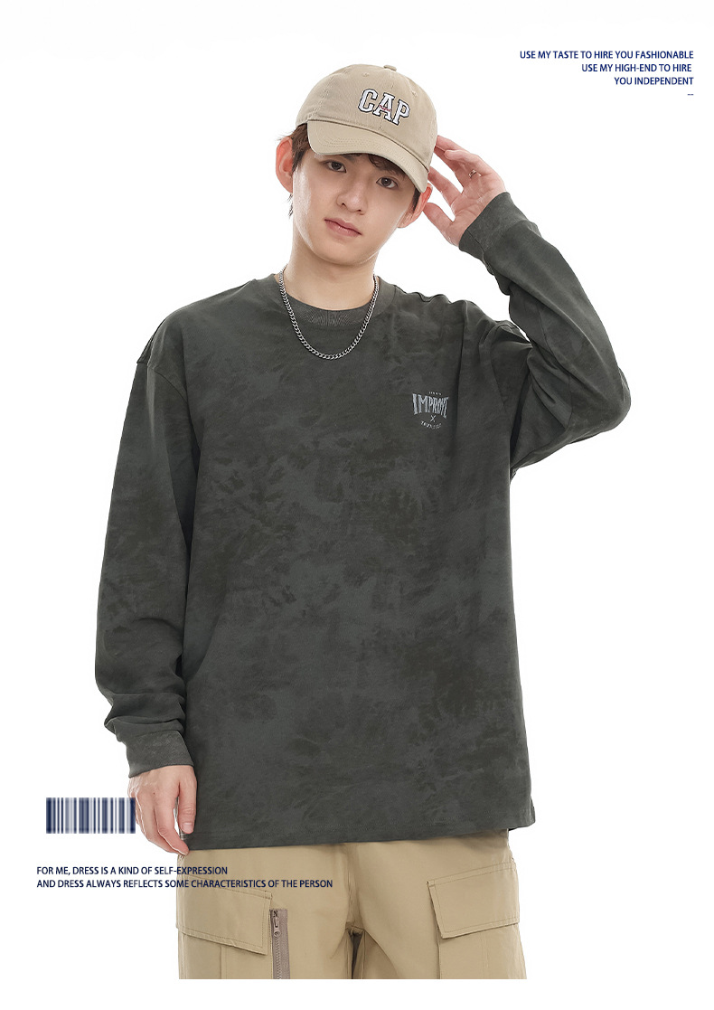 LKTM 남성 # 가을/겨울 새로운 무거운 긴 소매 티셔츠 남성 미국 복고풍 패션 브랜드 루즈 타이-염료 인쇄베이스 셔츠스토어 가기