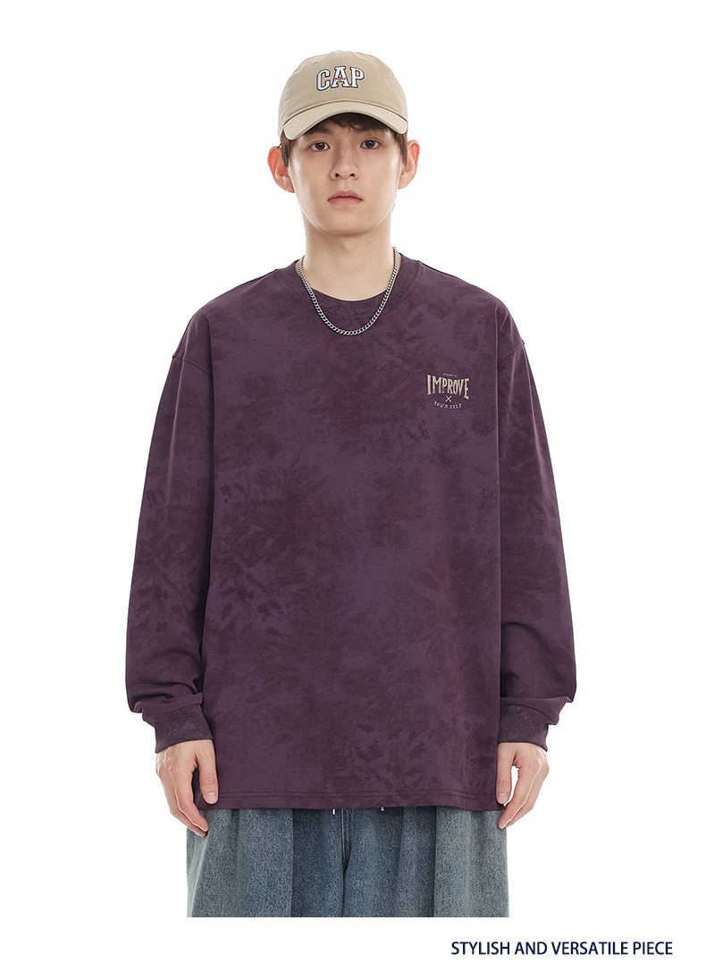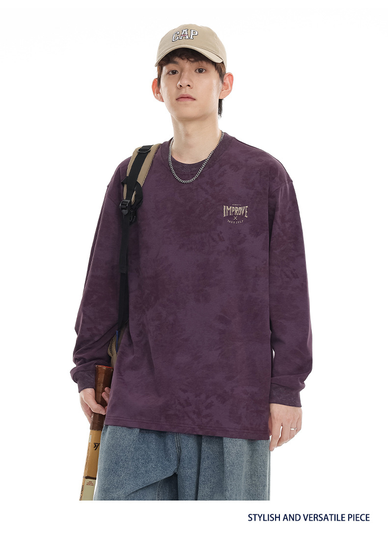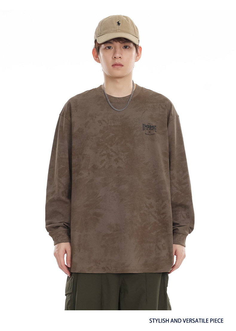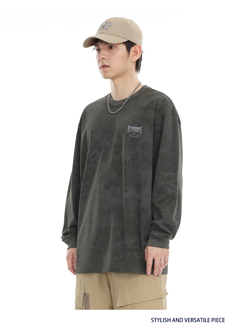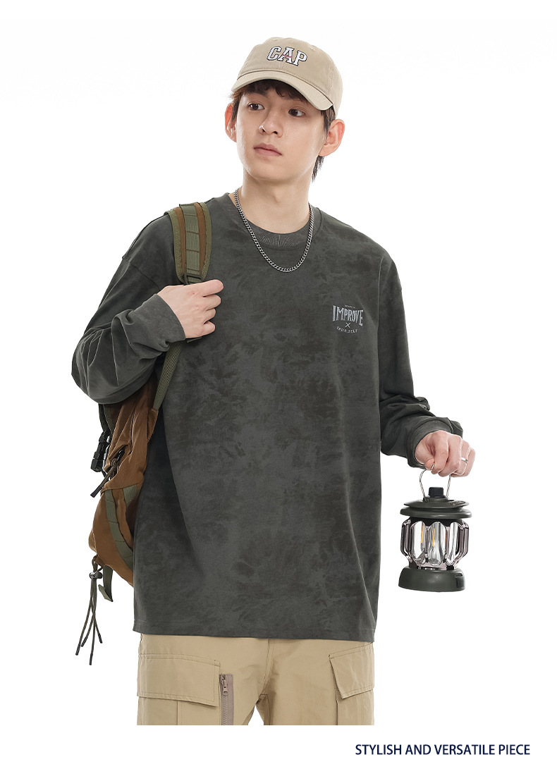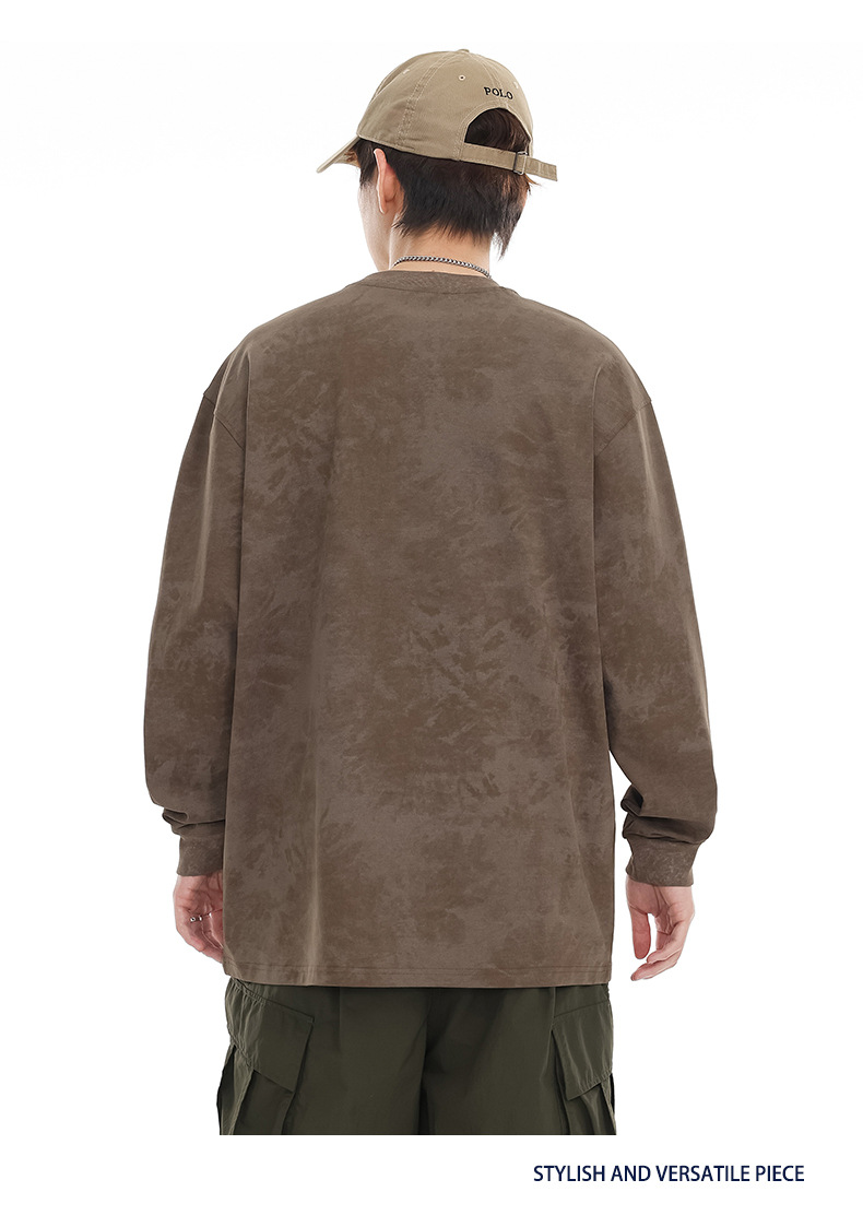 LKTM 남성 # 가을/겨울 새로운 무거운 긴 소매 티셔츠 남성 미국 복고풍 패션 브랜드 루즈 타이-염료 인쇄베이스 셔츠스토어 가기