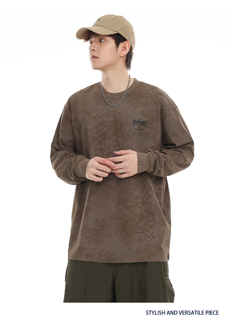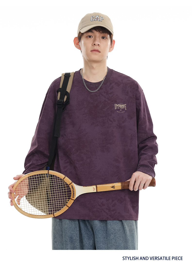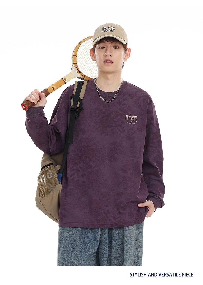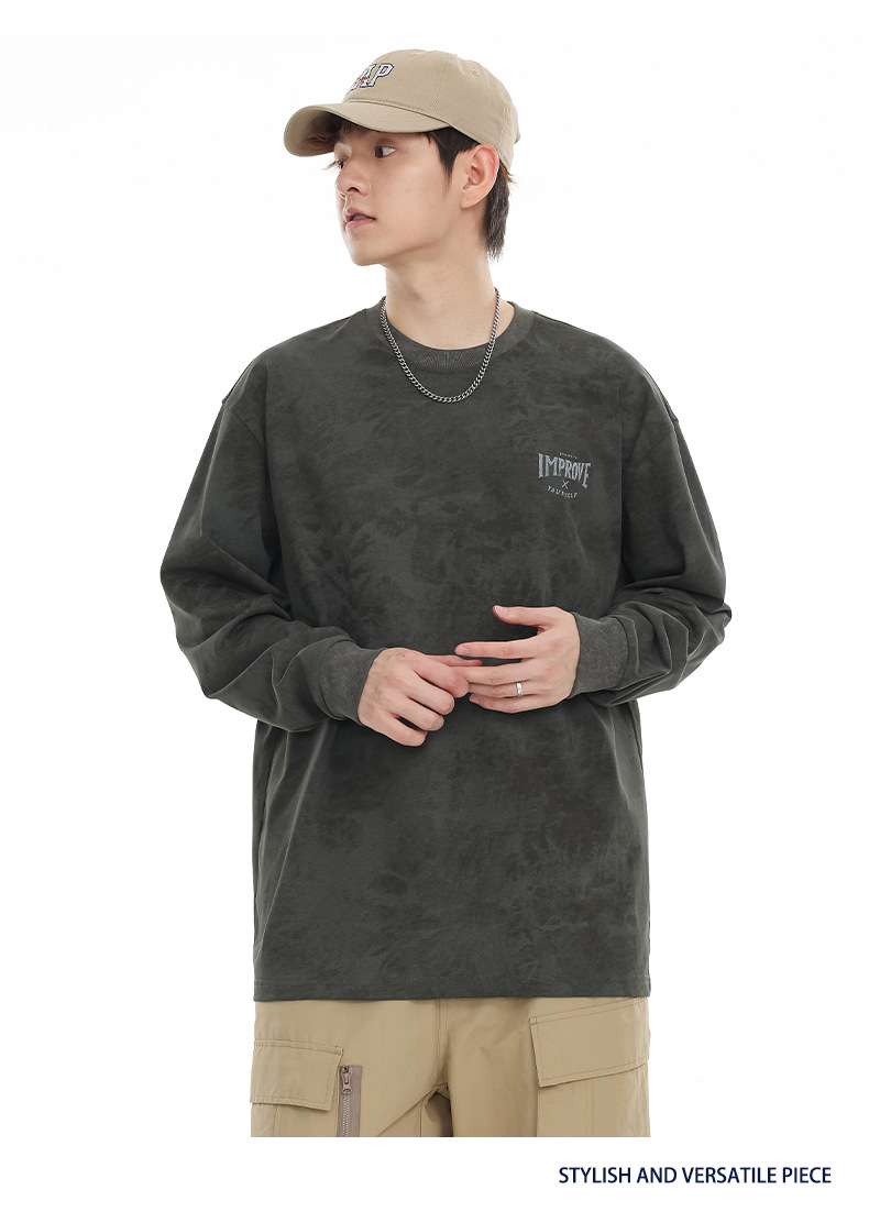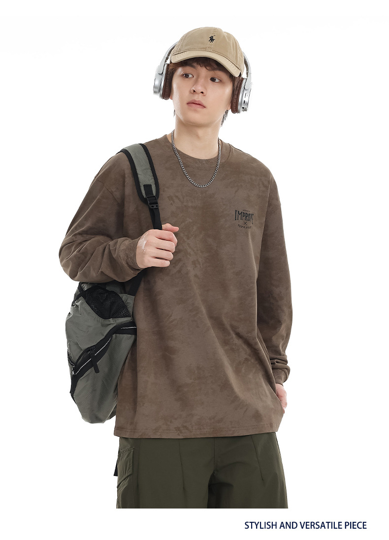 LKTM 남성 # 가을/겨울 새로운 무거운 긴 소매 티셔츠 남성 미국 복고풍 패션 브랜드 루즈 타이-염료 인쇄베이스 셔츠스토어 가기