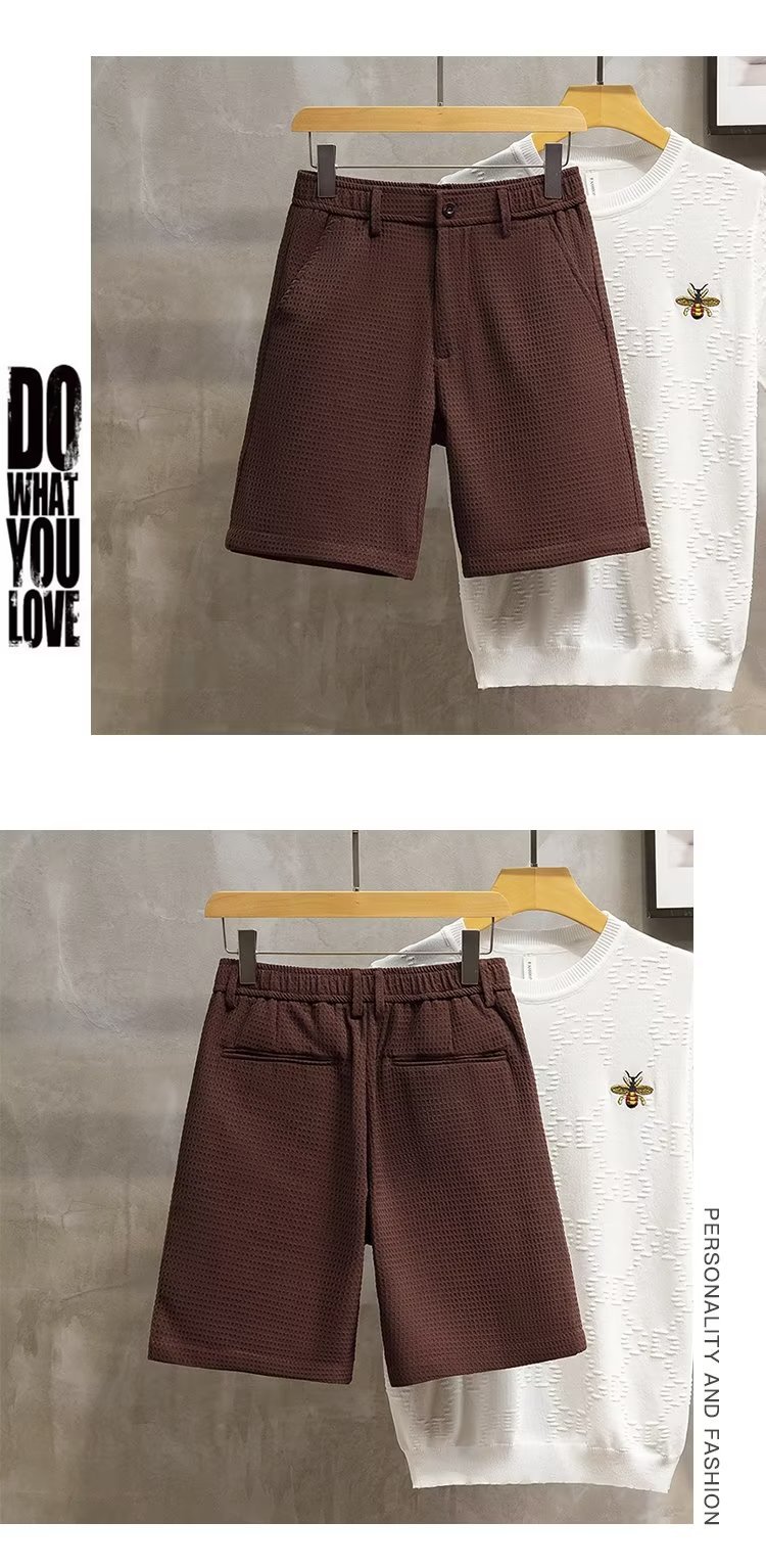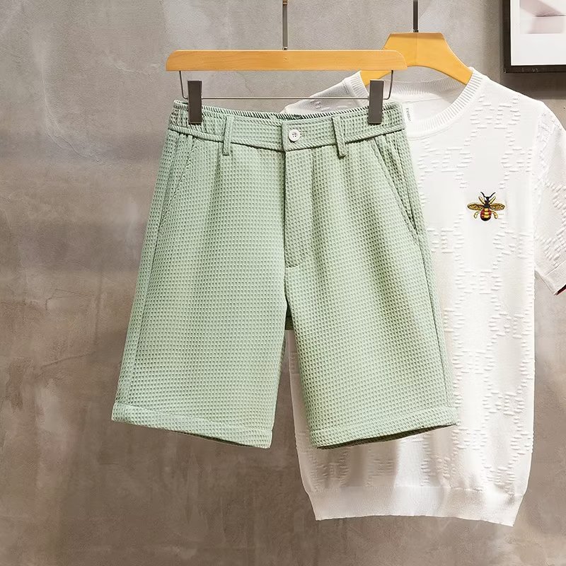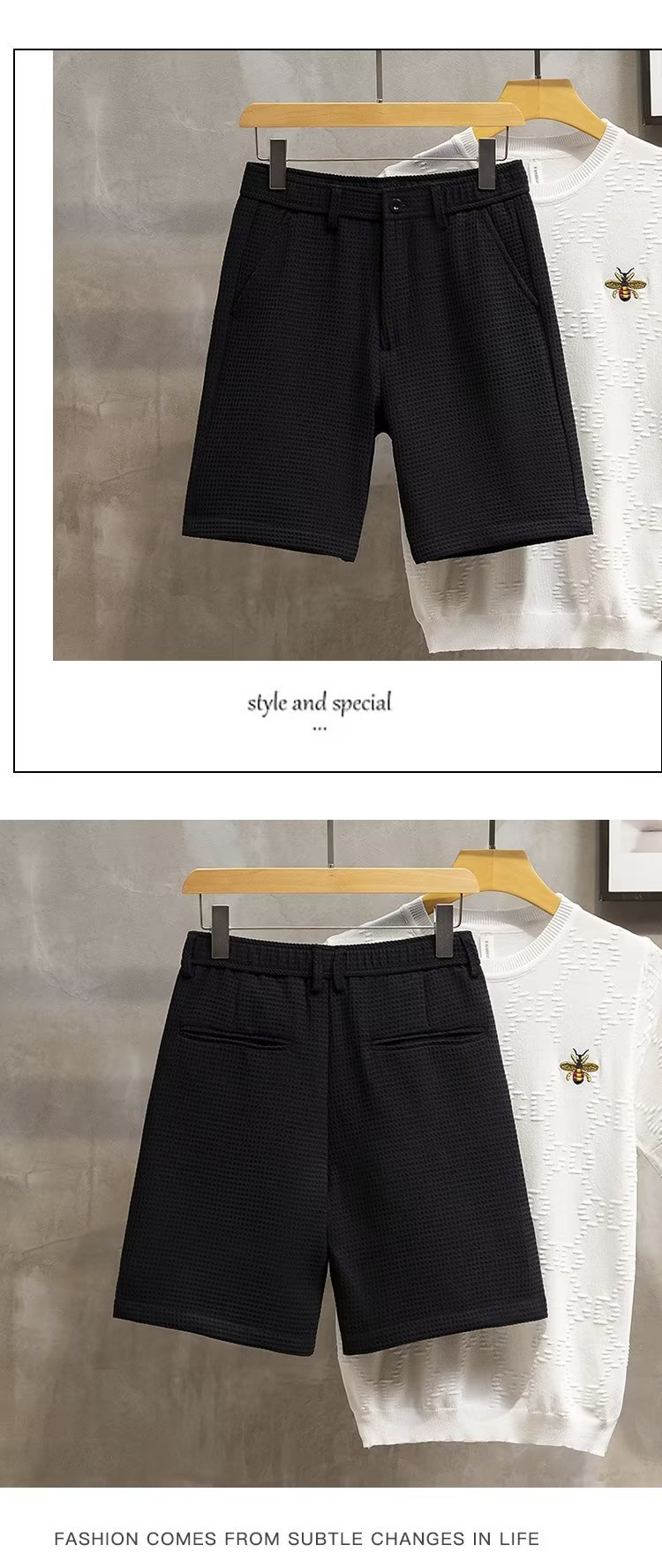 고급 와플 세트 반바지 남성 스트레이트 슬림 핏 5 점 바지 남성 패션 브랜드 핸섬 화이트 세트 바지스토어 가기
