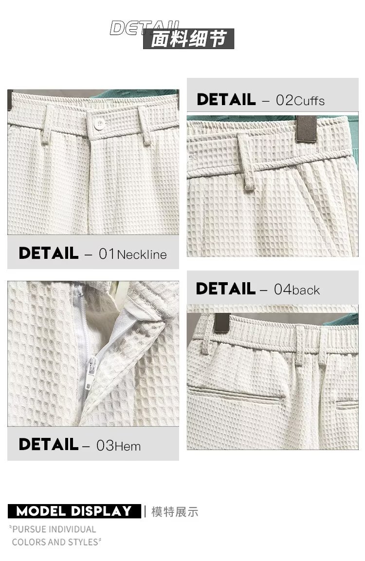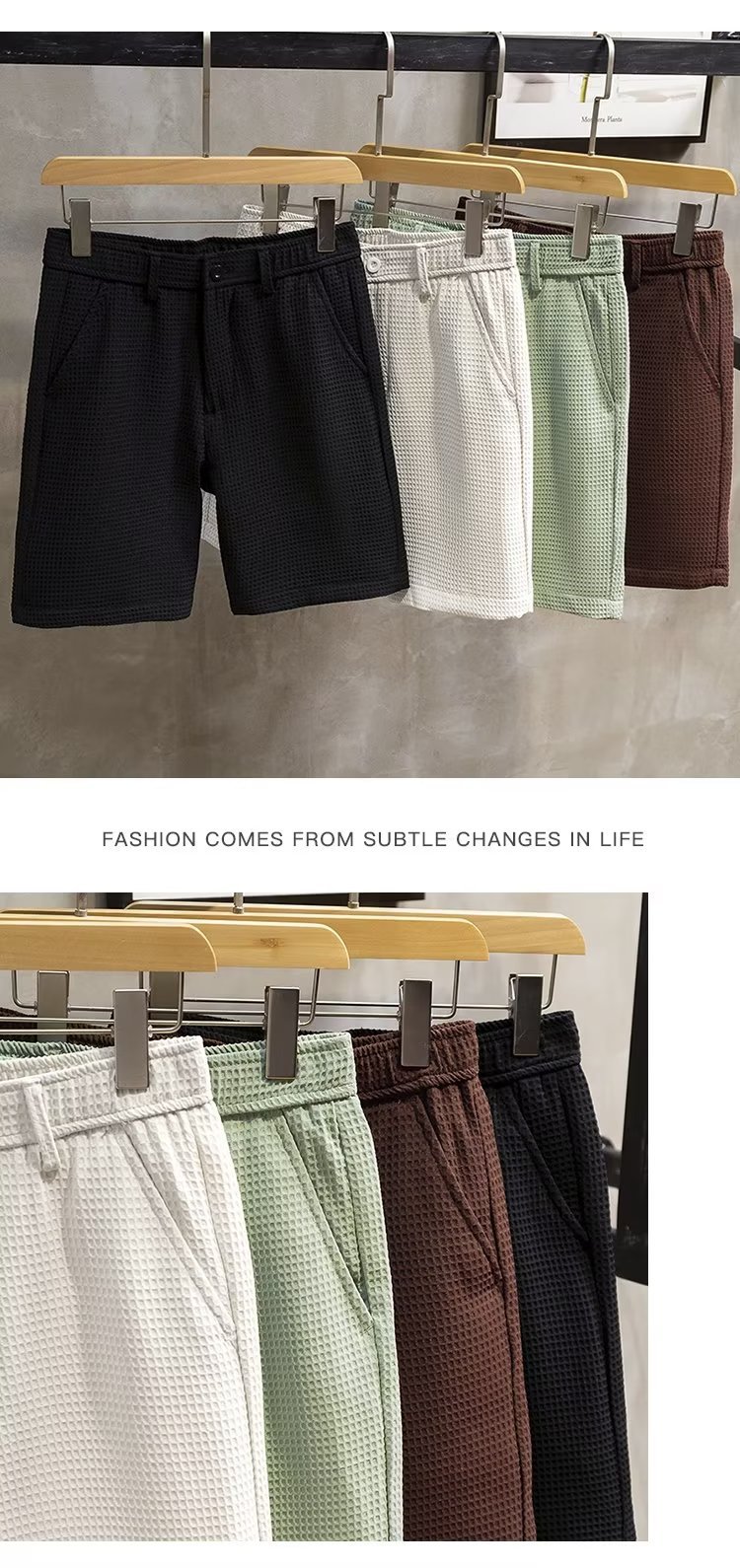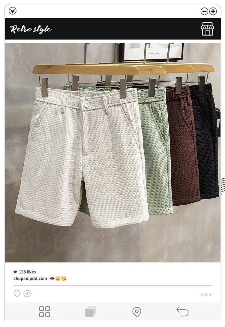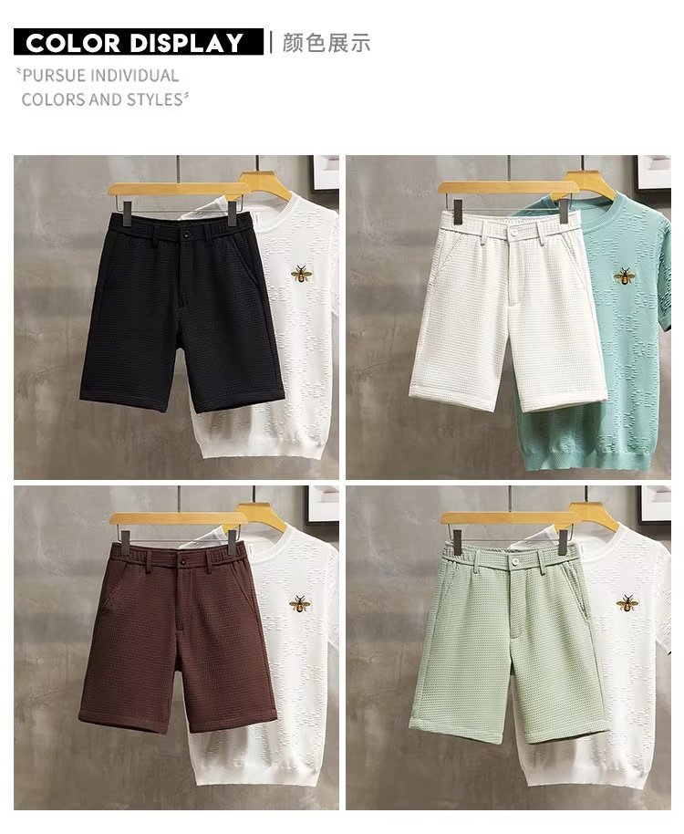 고급 와플 세트 반바지 남성 스트레이트 슬림 핏 5 점 바지 남성 패션 브랜드 핸섬 화이트 세트 바지스토어 가기