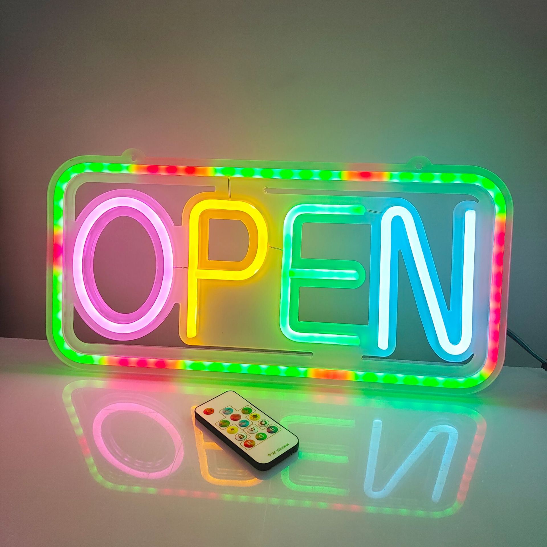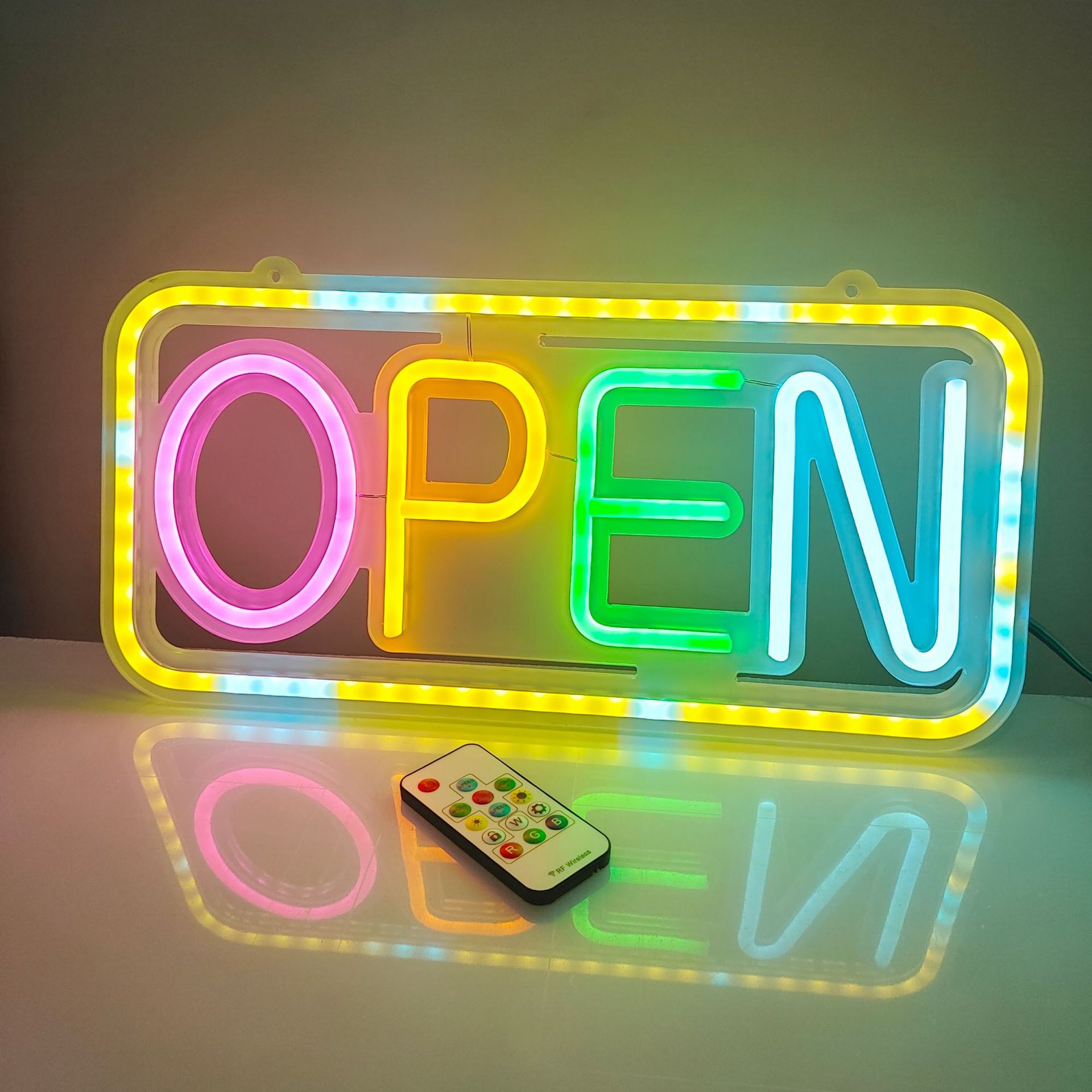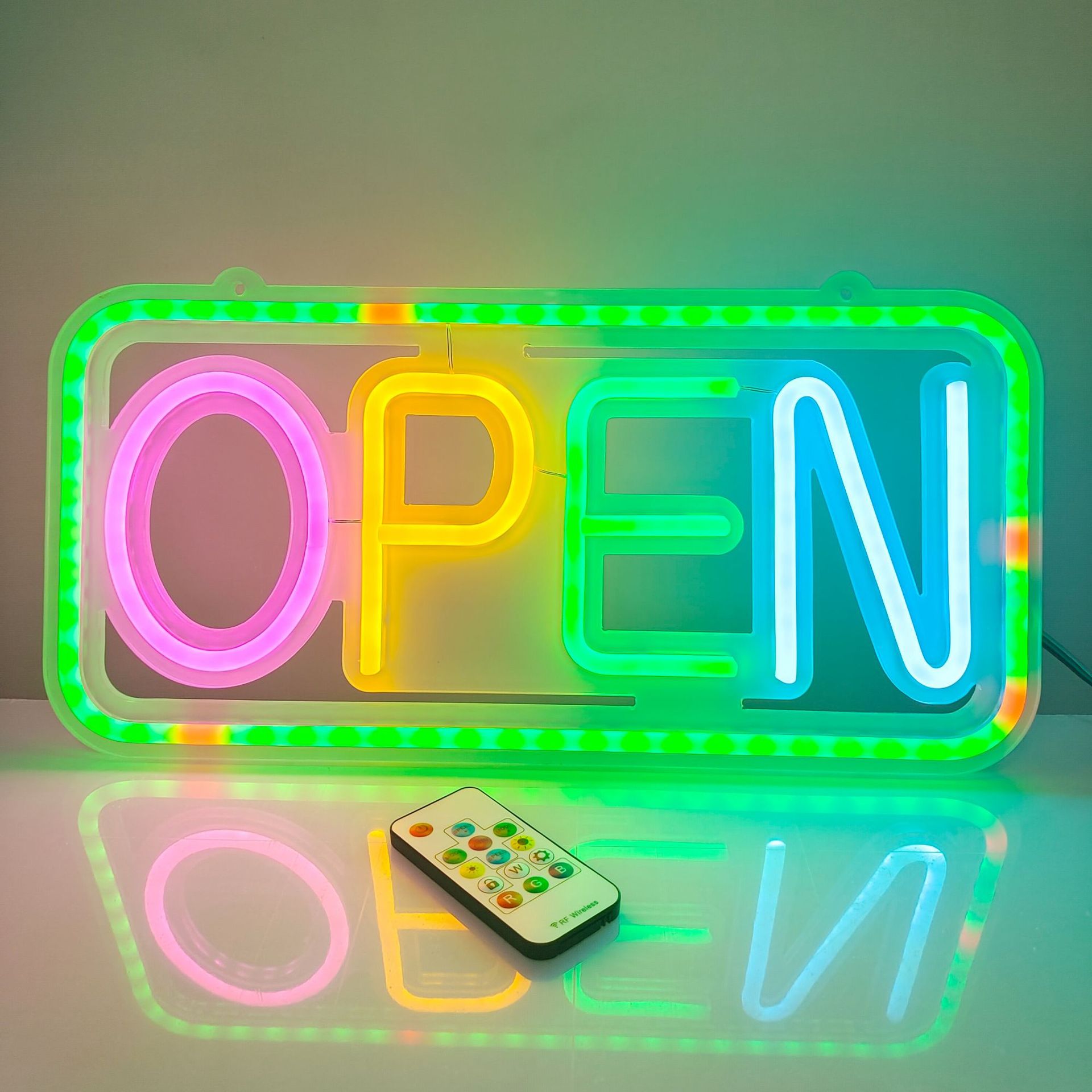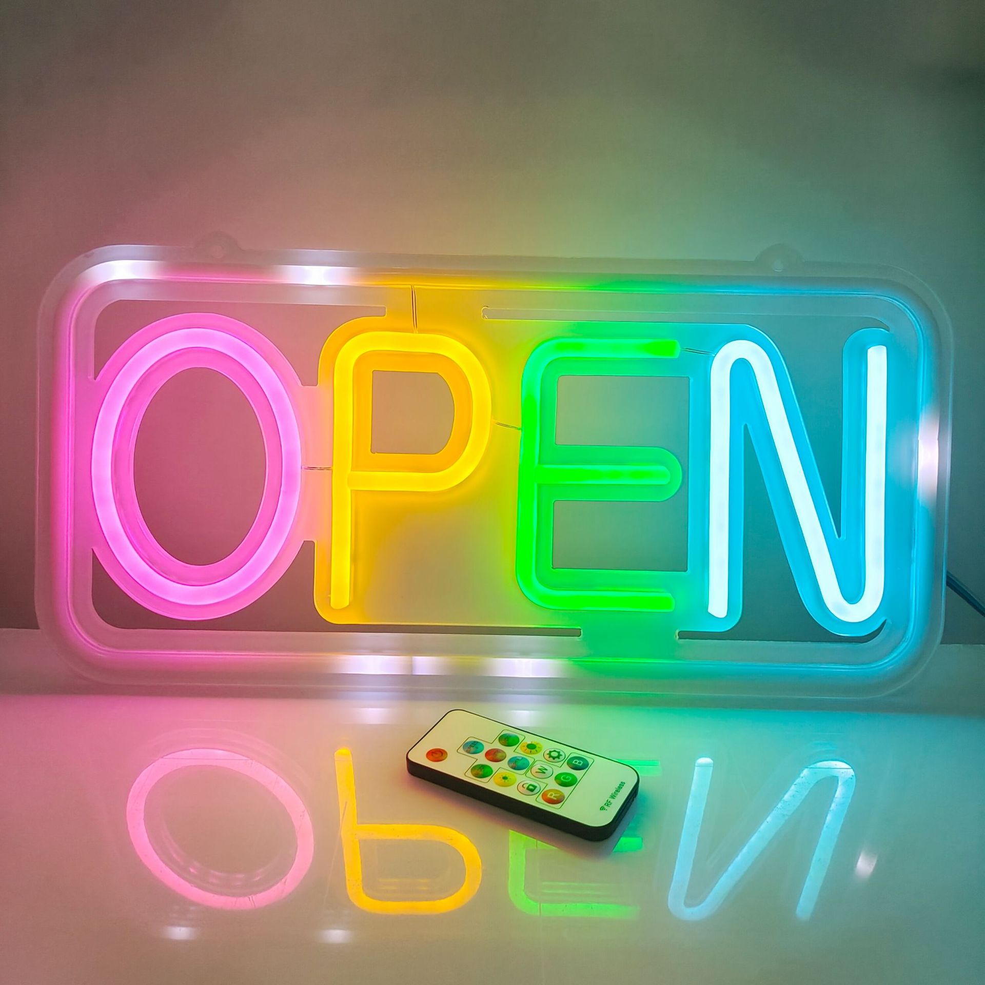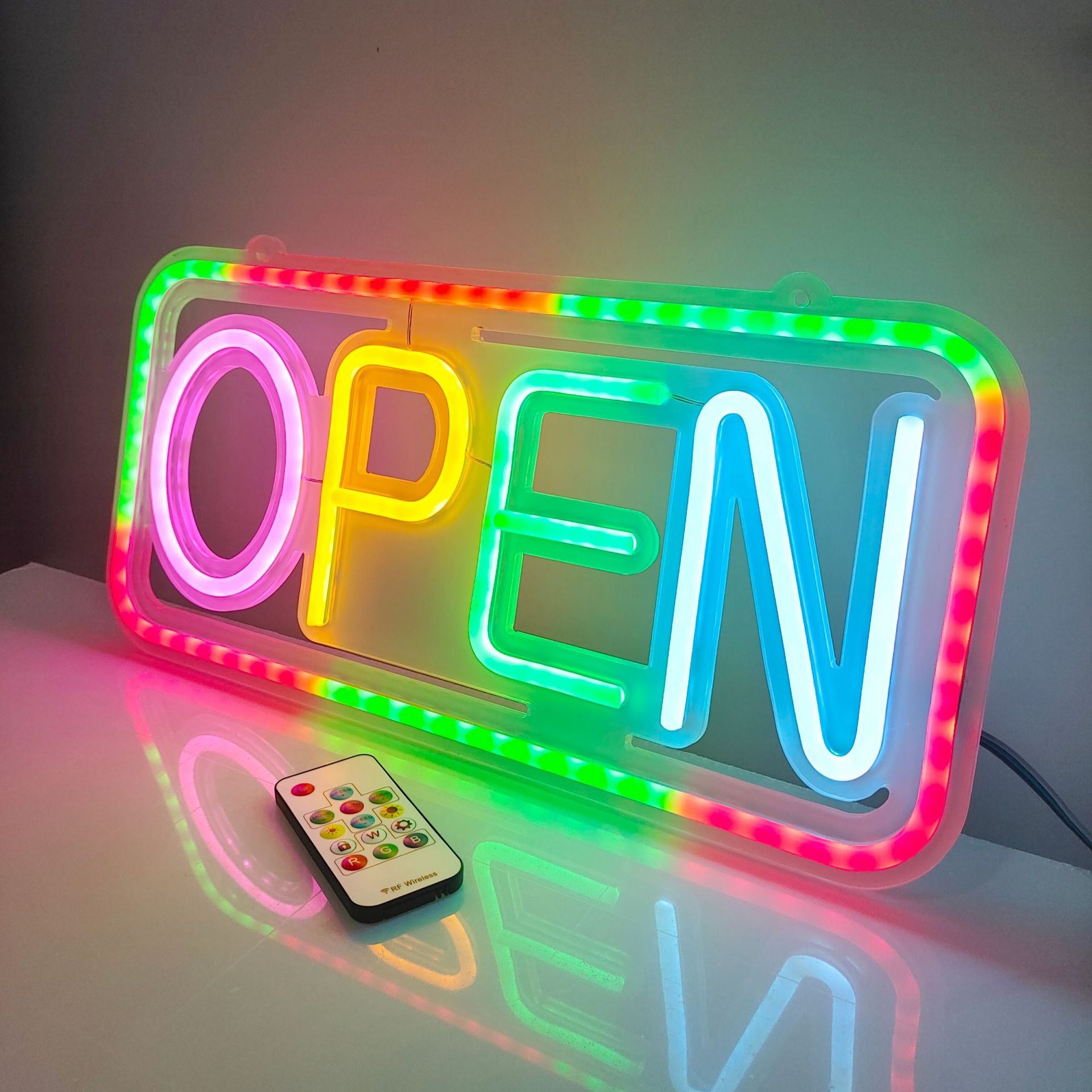 Led 네온 원격 제어 오픈 빛나는 편지 비즈니스 로고 가벼운 마술 깜박이는 장식 조명 광고 조명