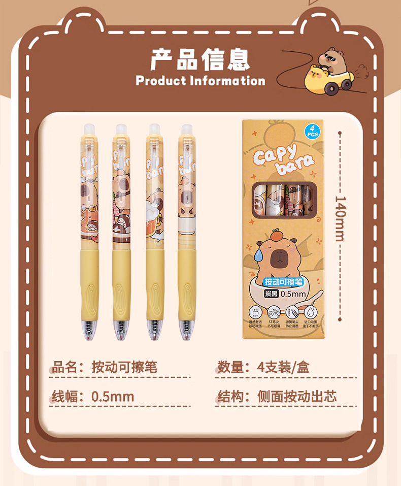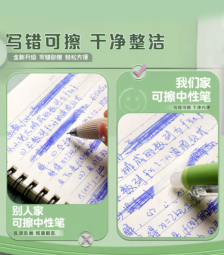 인기 있는 누름식 지워지는 펜, 자세교정 중성펜, 카피발라 열 지워지는 학생용 문구, 검정색 펜, 누름식 펜