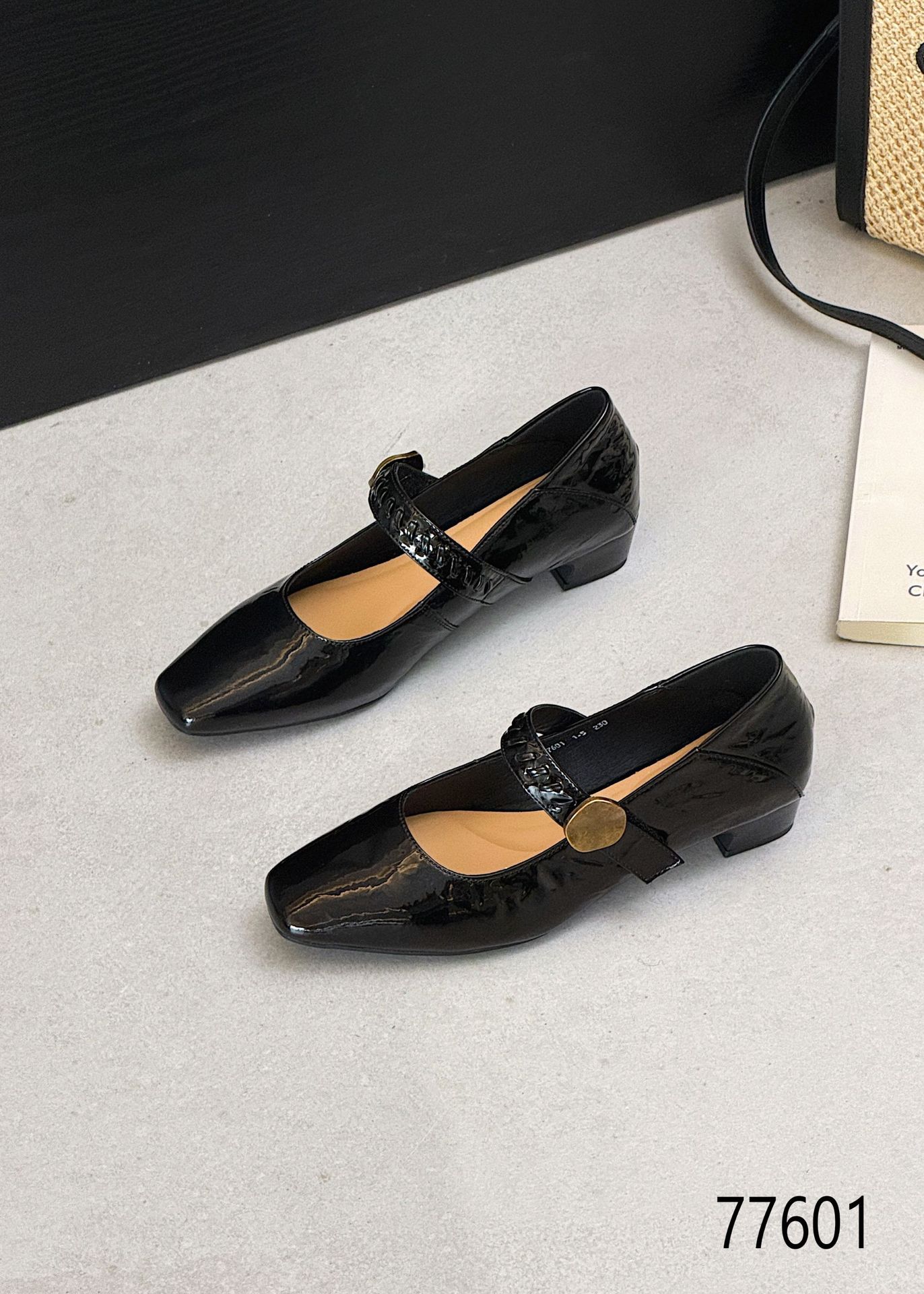 정품 가죽 두꺼운 여성용 패션 싱글 레이어 신발 2024 새로운 로우 힐 특허 가죽 패션 원피스 얕은 스퀘어 발가락 여성용 싱글 레이어 신발스토어 가기