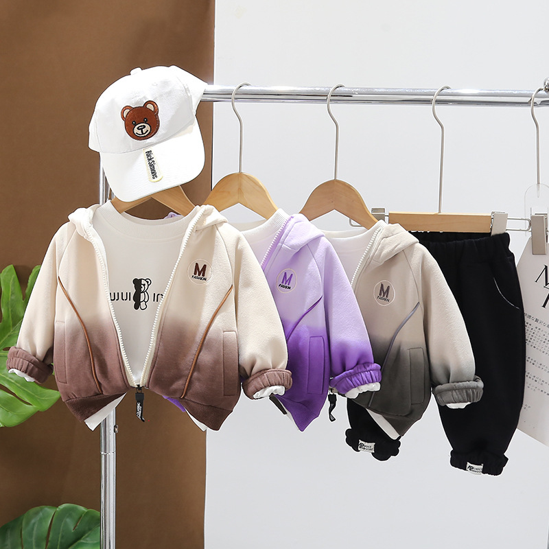 소년 가을 세트 새로운 한국 어린이 지퍼 후드 코트 아기 외국 스타일 3 피스 아동복 도매